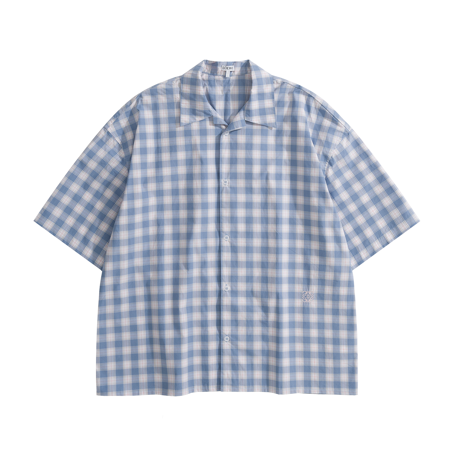 NIGO Loewe Men's Summer Solid Colour Check Printed Single Breasted Short Sleeve Shirt #nigo76766