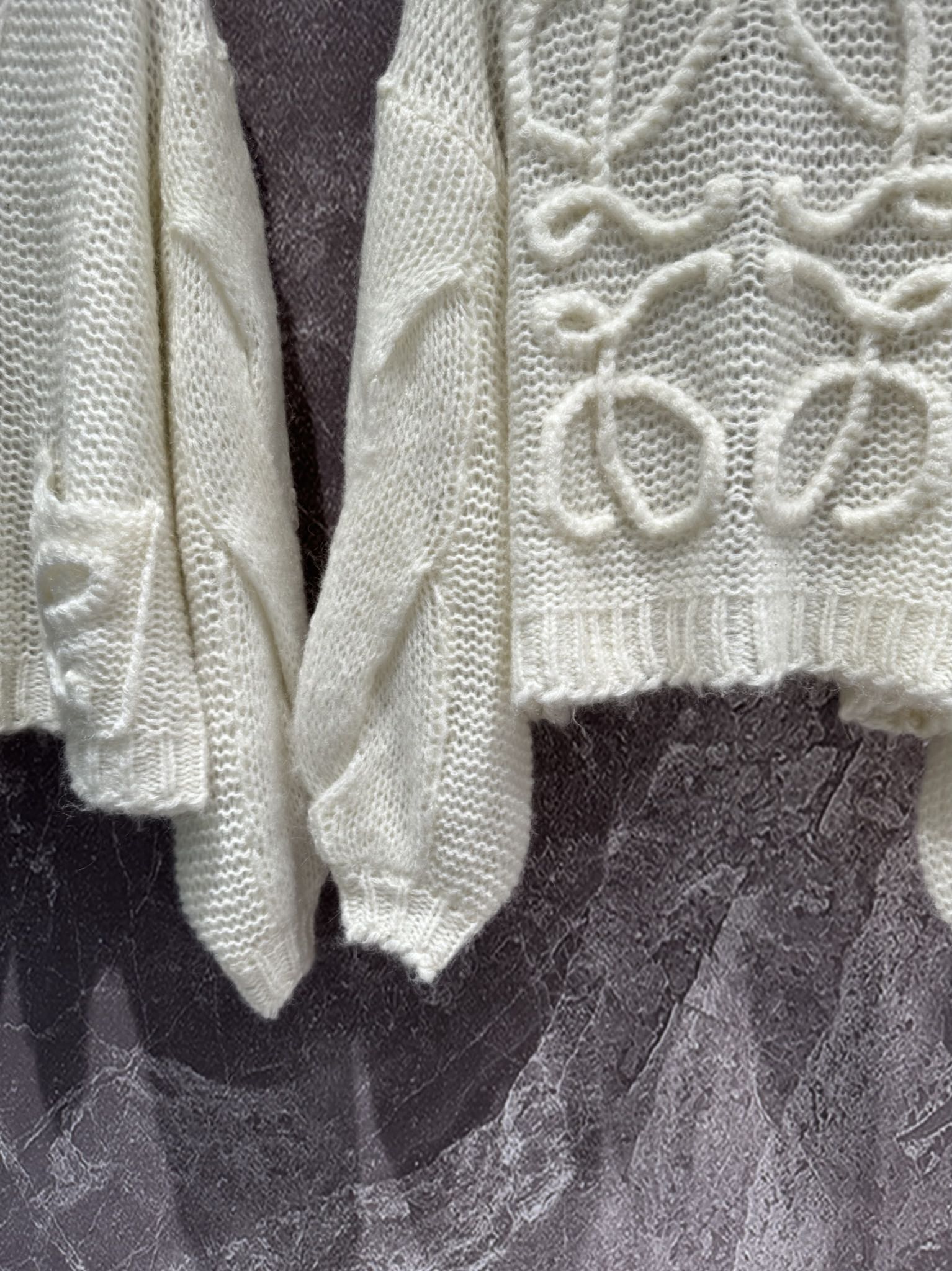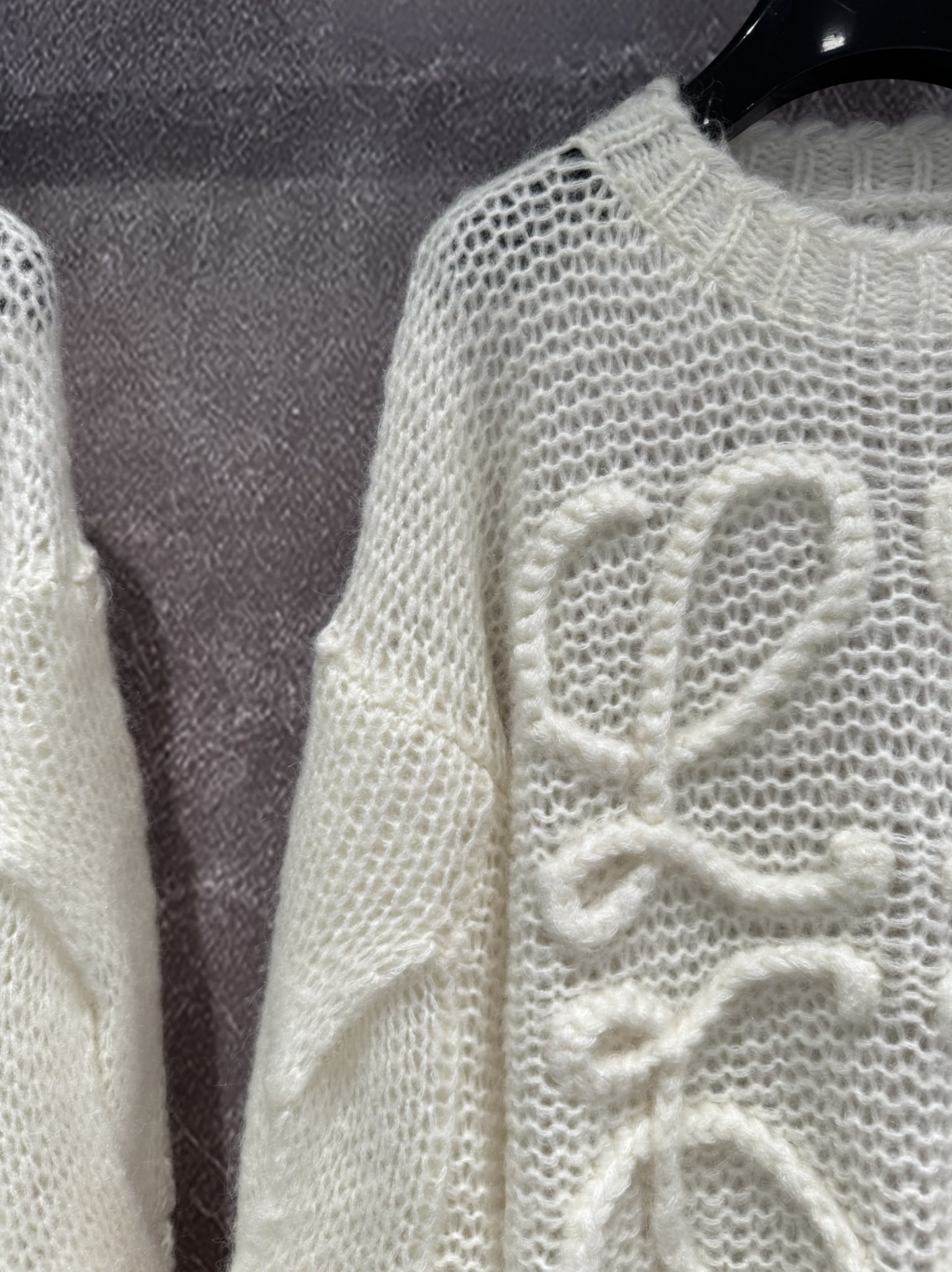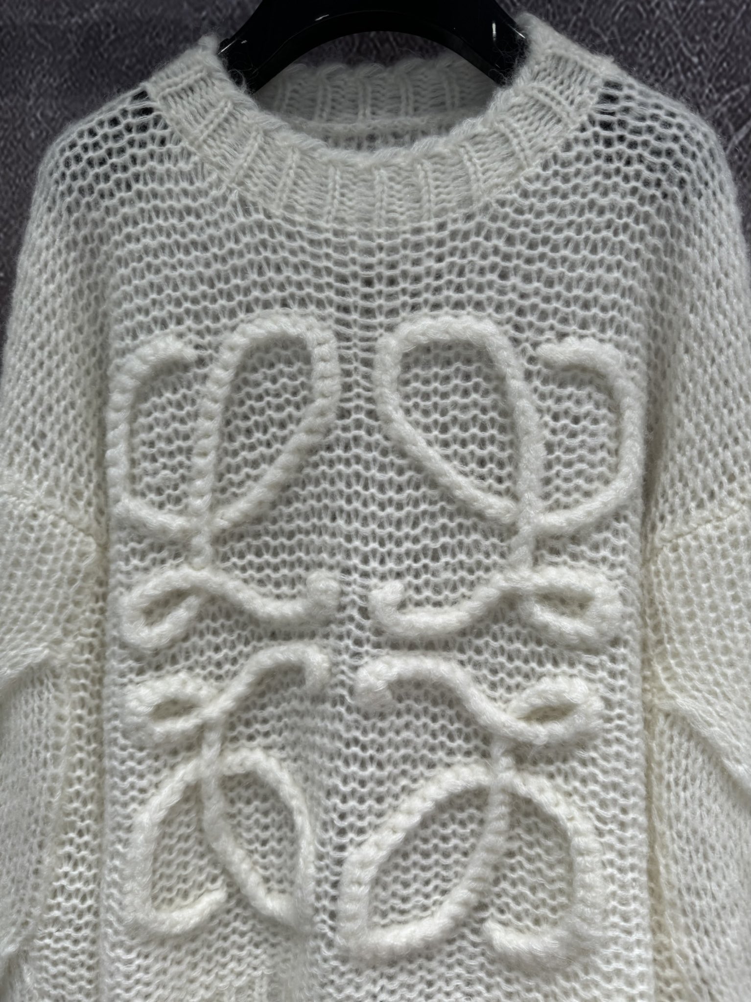 NIGO Loewe Women's Spring and Autumn White Round Neck Sheer Knit Printed Loose Long Sleeve Sweater #nigo72546