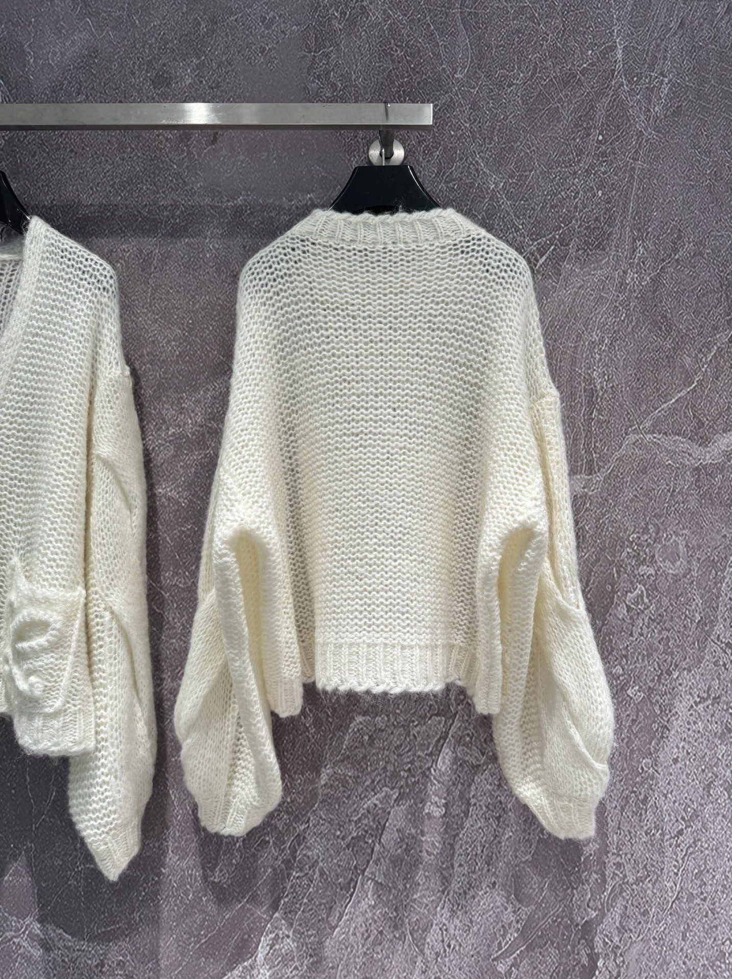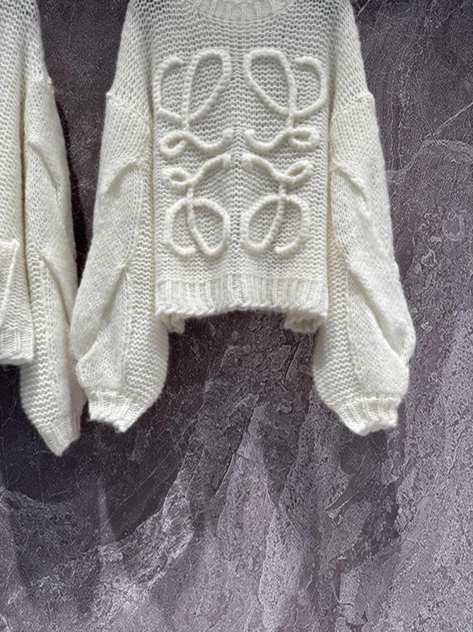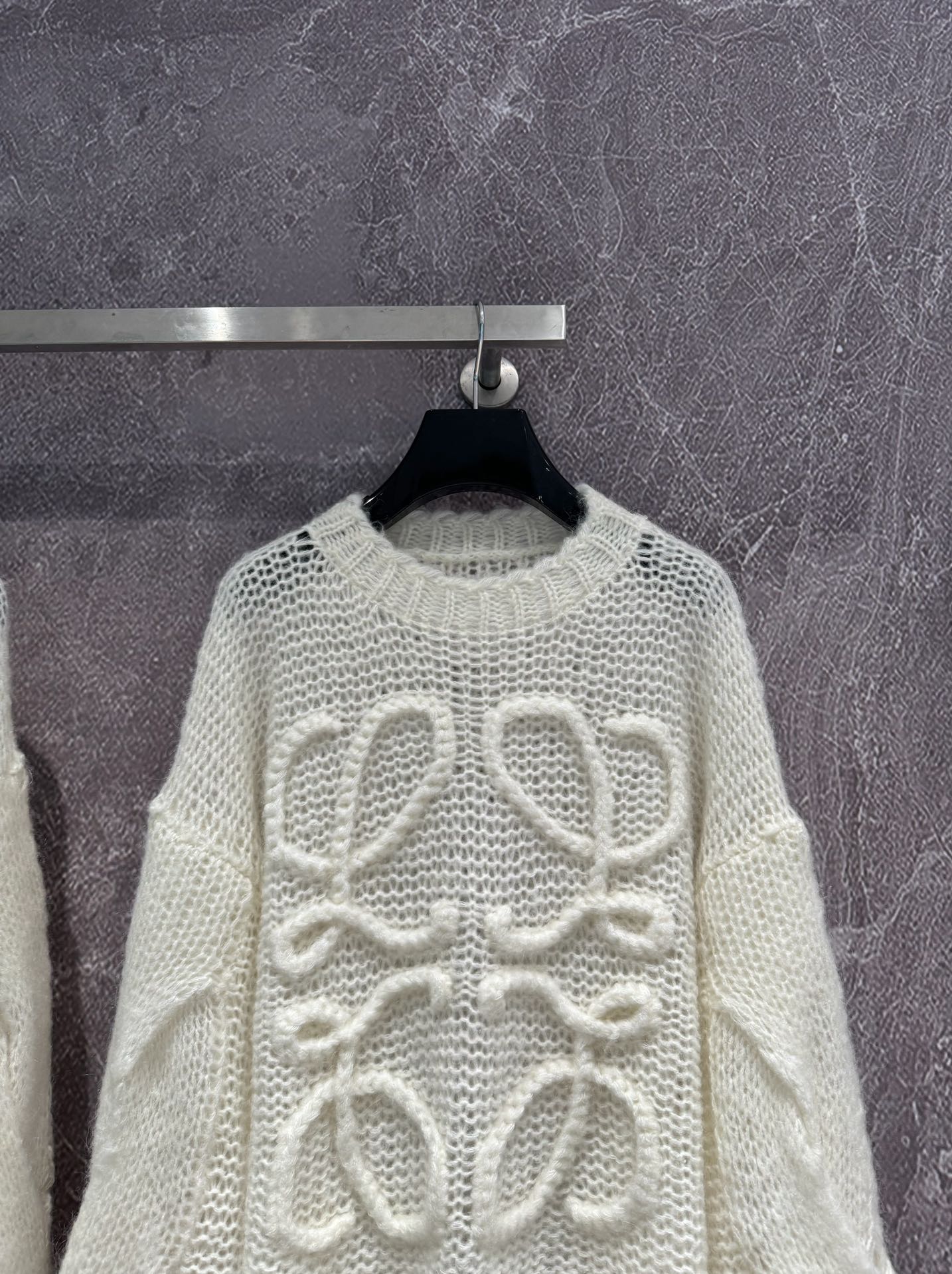 NIGO Loewe Women's Spring and Autumn White Round Neck Sheer Knit Printed Loose Long Sleeve Sweater #nigo72546