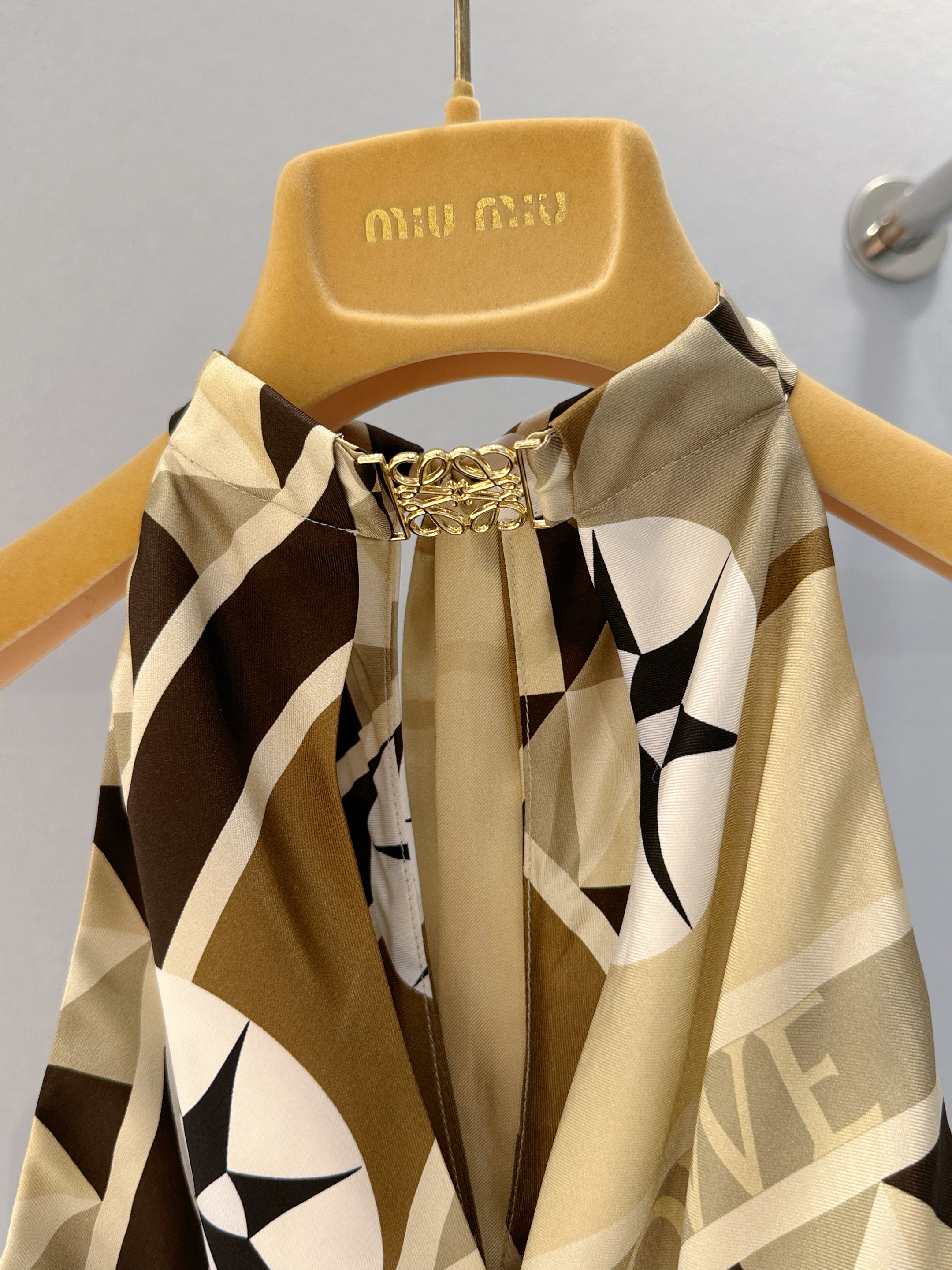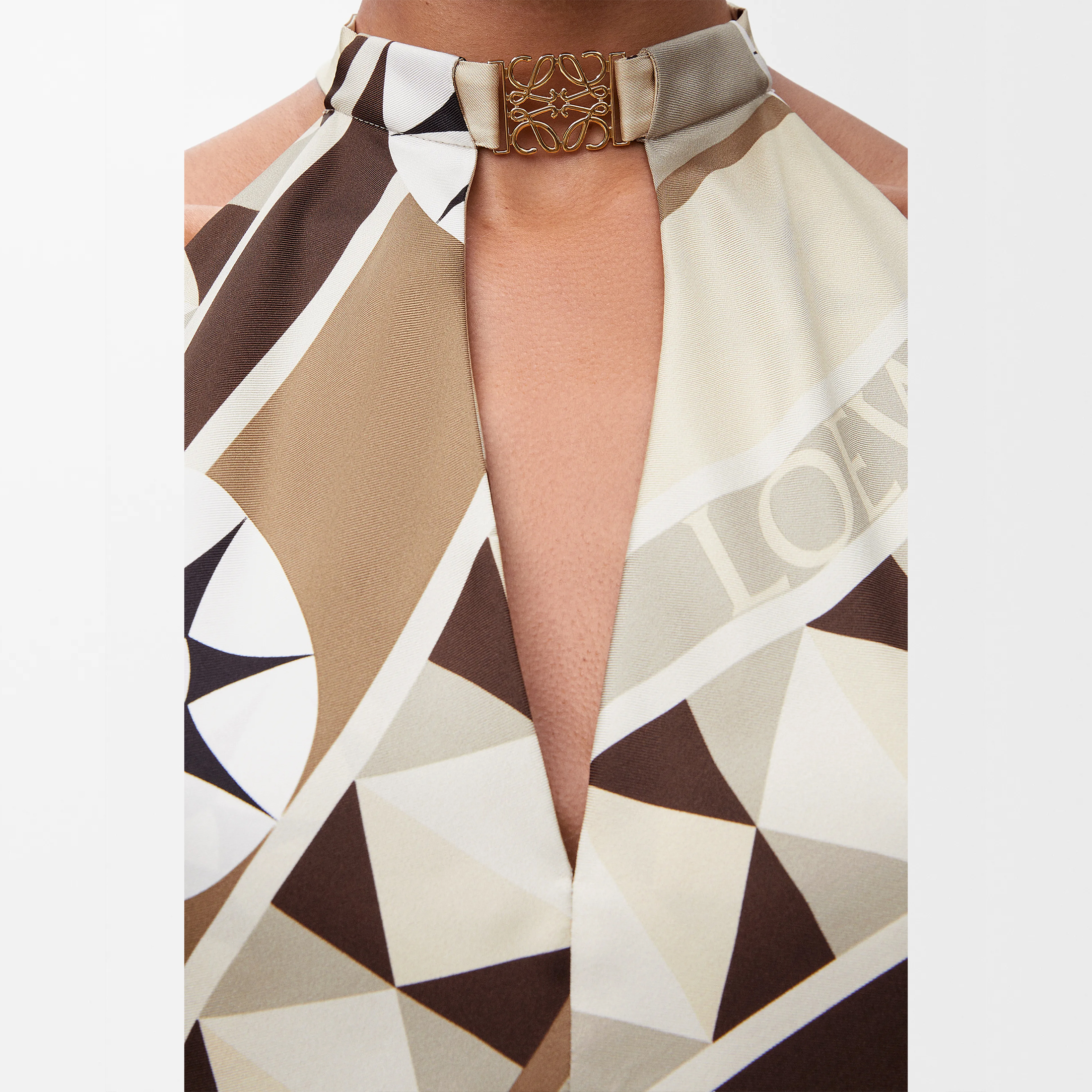 NIGO Loewe Women's Summer Silk Wrap Neck Tie Top Compass Pattern Print and Anagram Pattern Fashion Trend Sleeveless Top T-Shirt #nigo81221