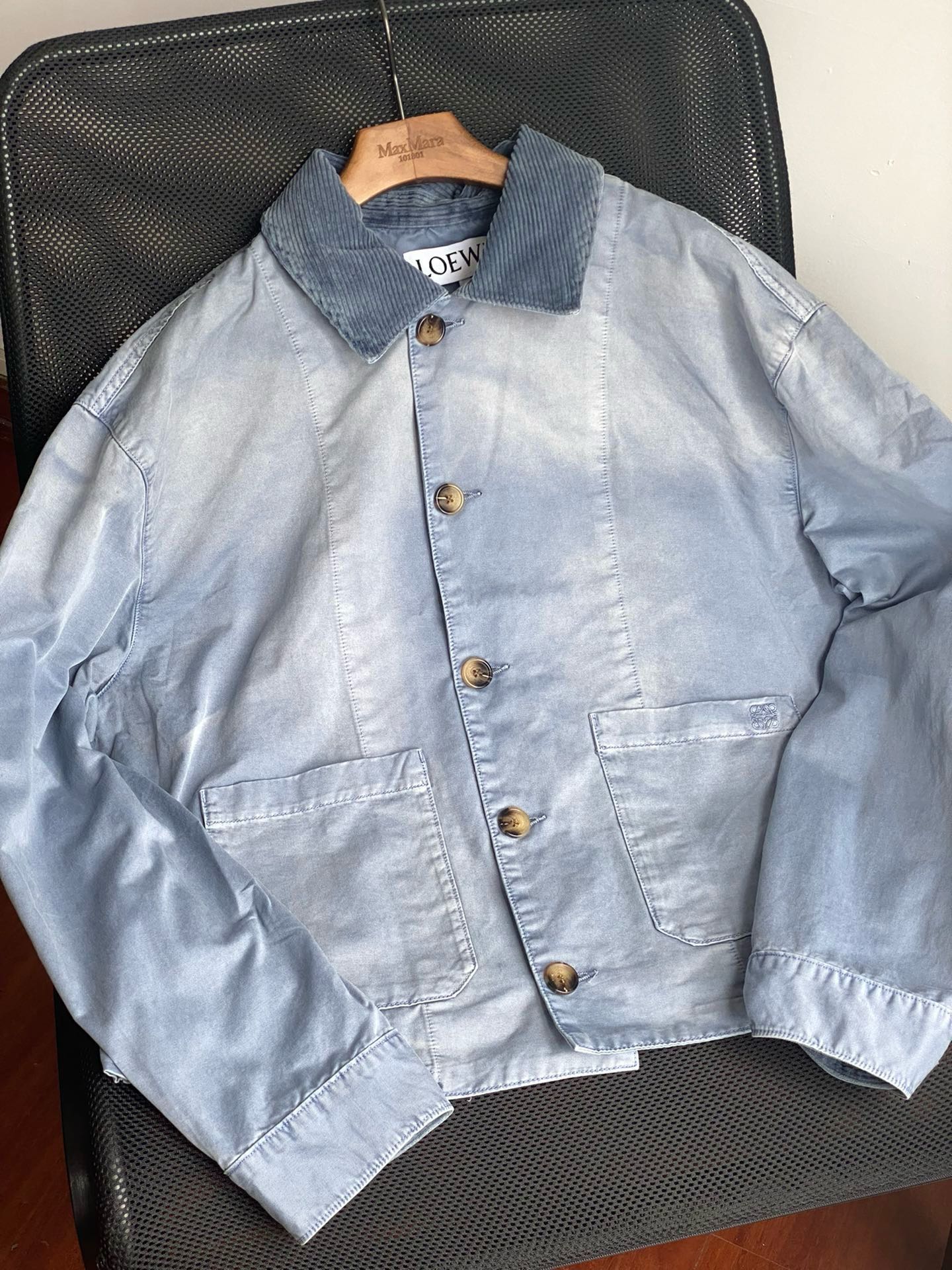 NIGO Loewe Men's Spring And Fall Blue Washed Logo Label Loose Single Breasted Long Sleeved Jacket #nigo73385