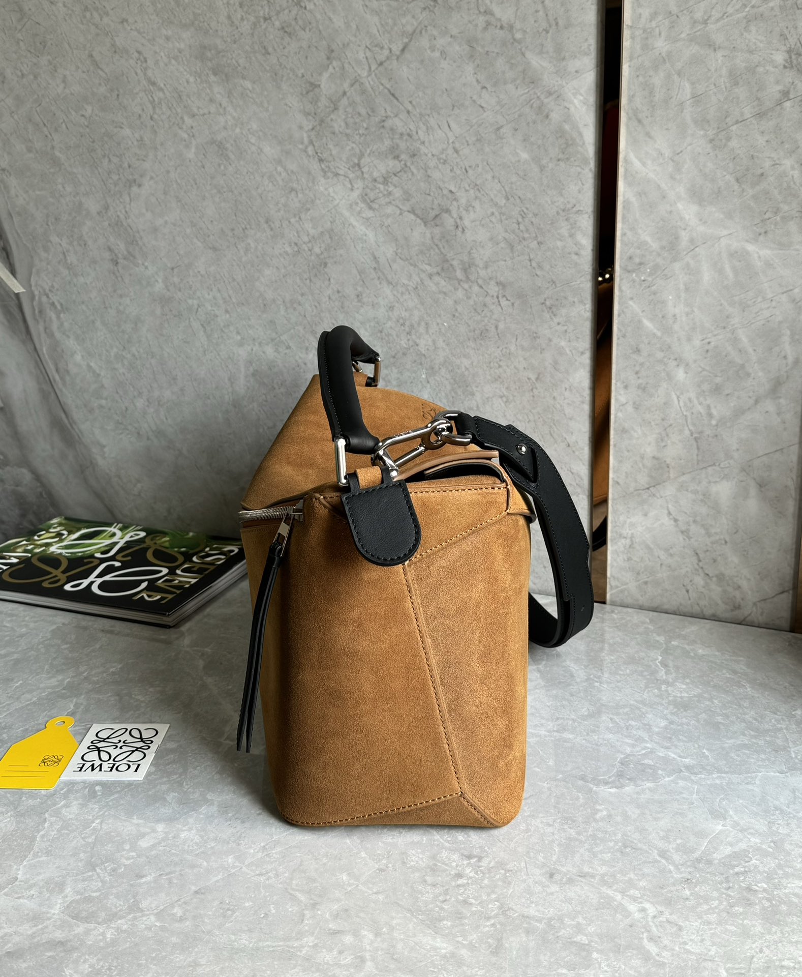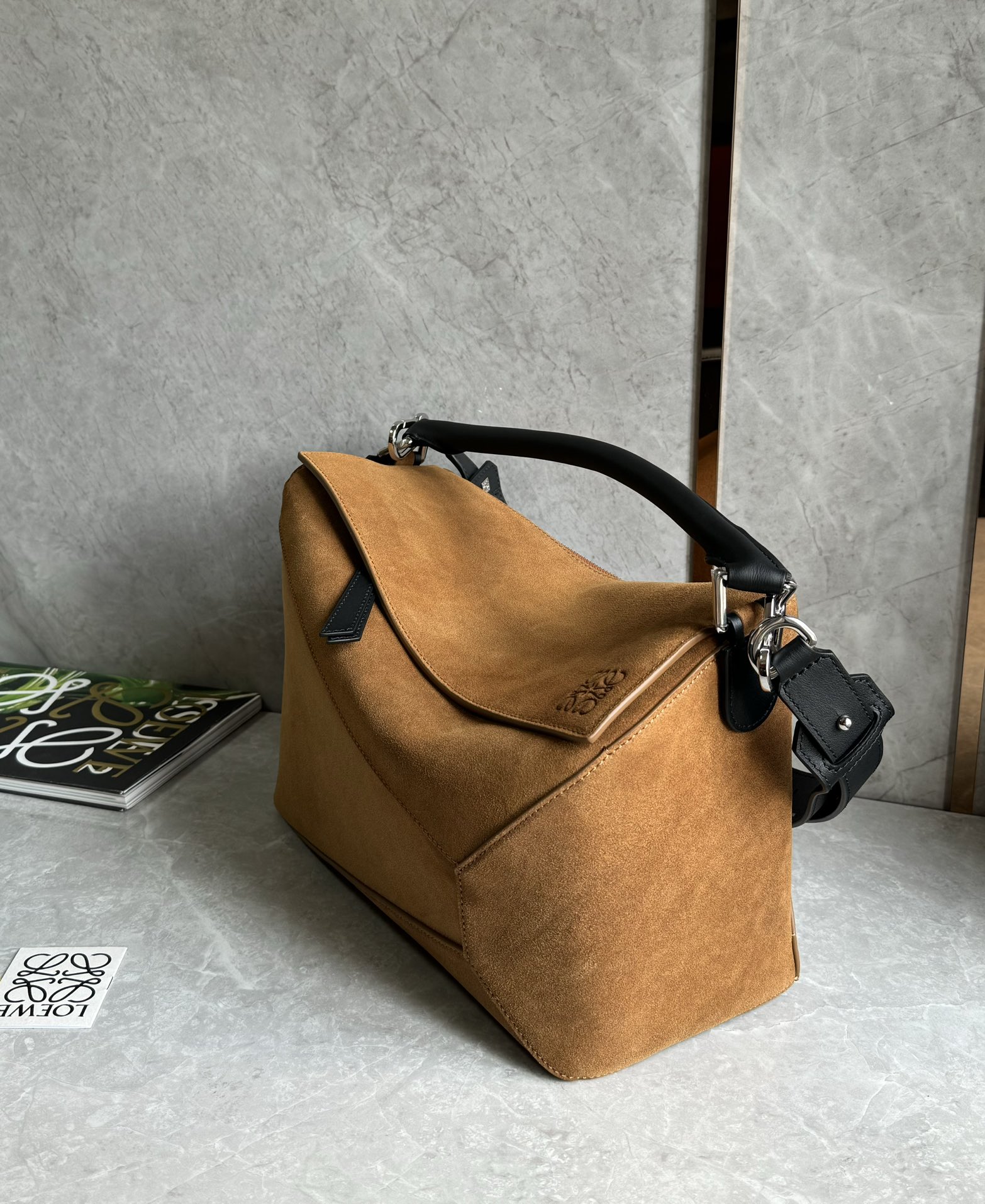 NIGO Loewe Men's Puzzle Brown Geometric Bag Pressed Suede Tote Crossbody Shoulder Bag Bags #nigo73541