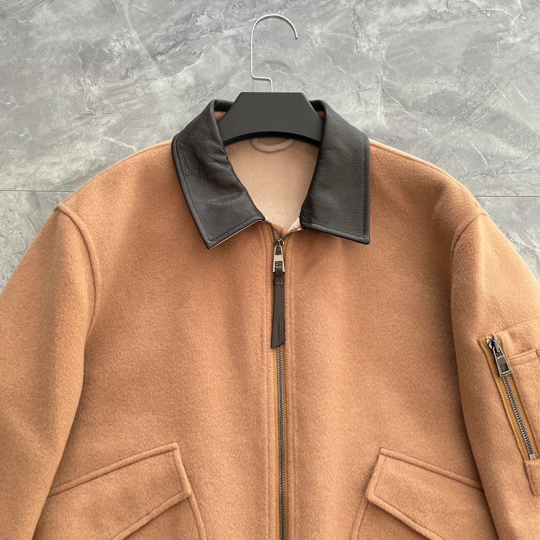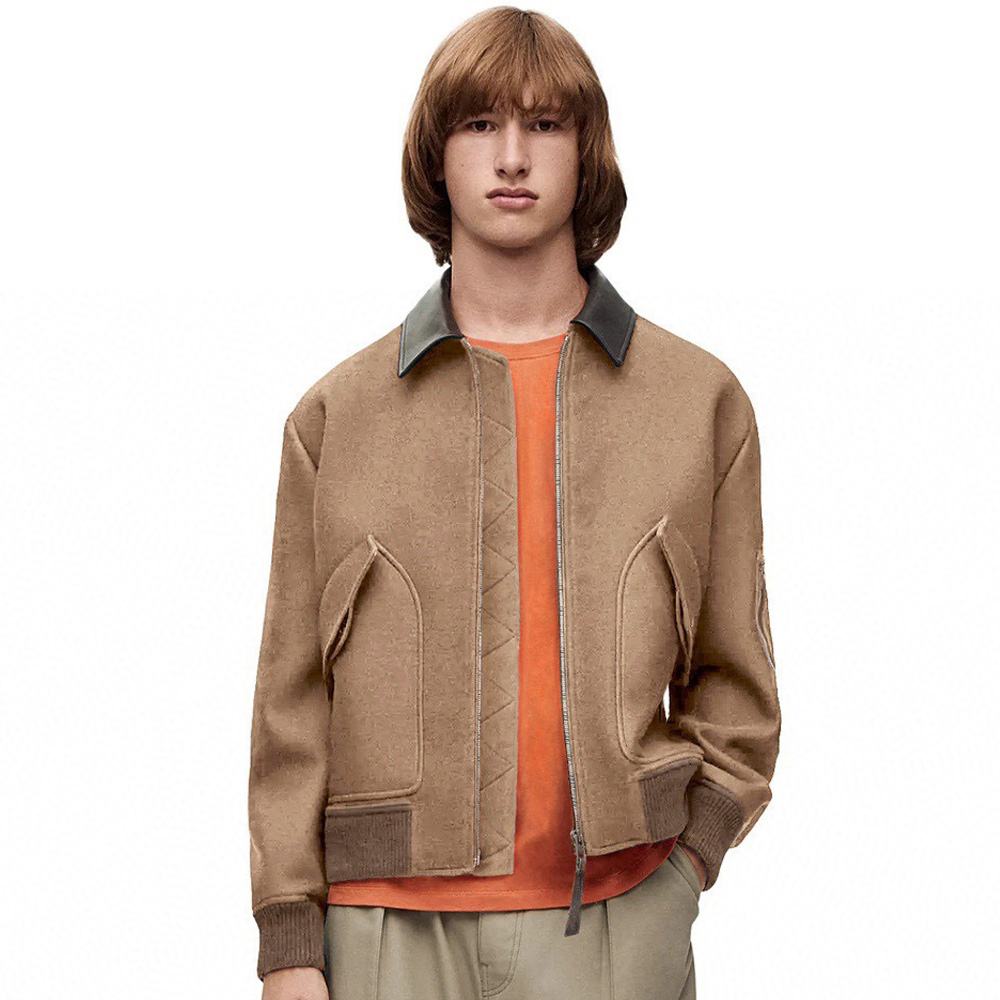 NIGO Loewe Men's Autumn/Winter Solid Color Wool Lapel Zipper Long Sleeve Fitted Aviator Jacket Ngvp #nigo7151