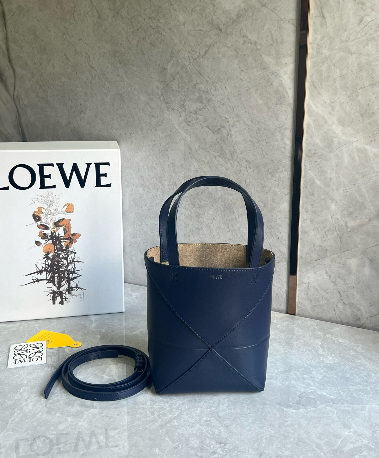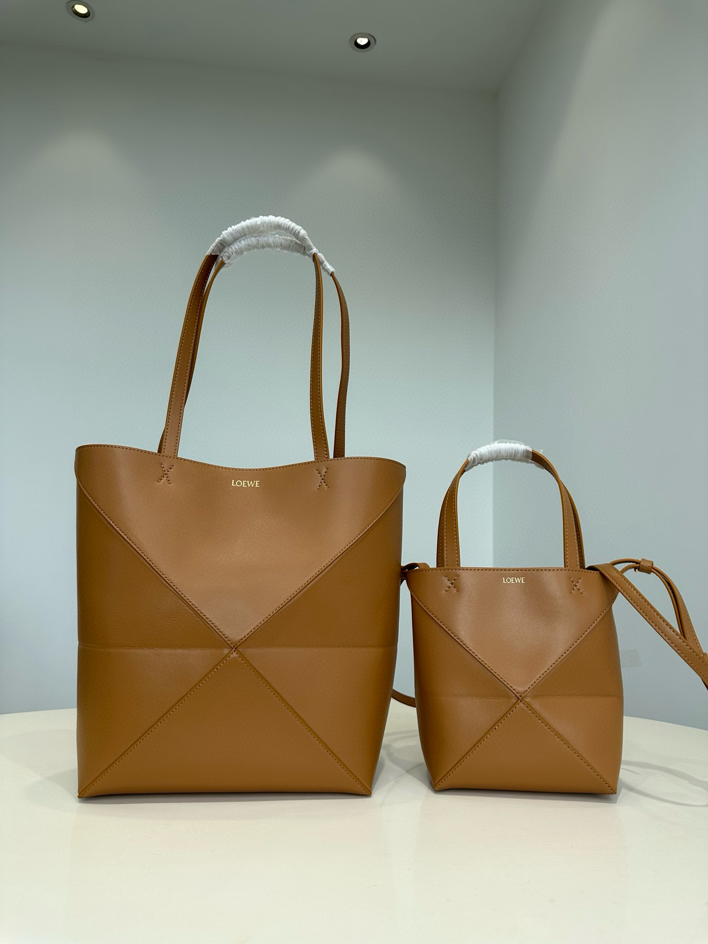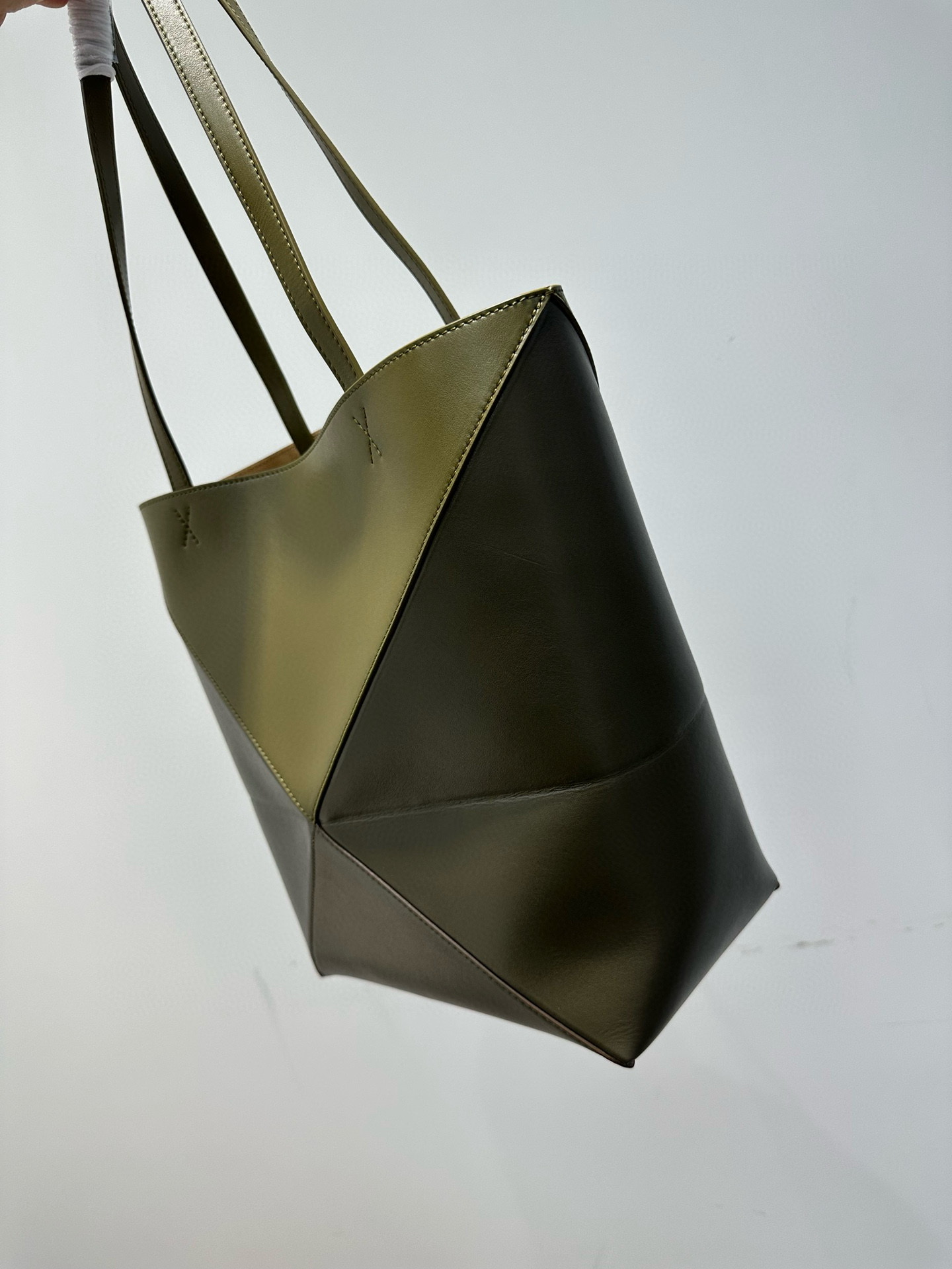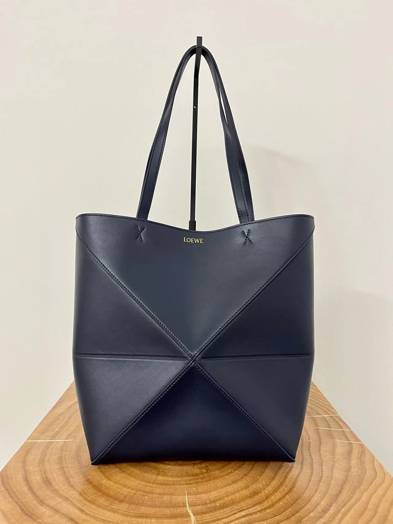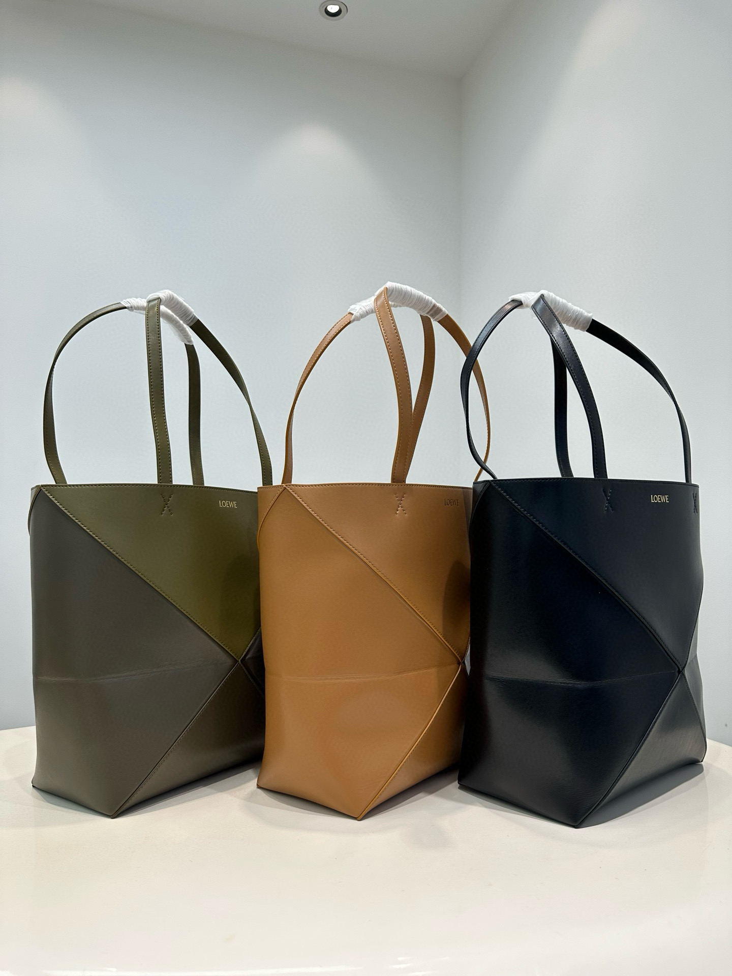 NIGO Loewe Puzzle Fold Women's Solid Embossed Logo Folding Glossy Tote In Shiny Calfskin Shopping Handbag Bag Bags #nigo98198