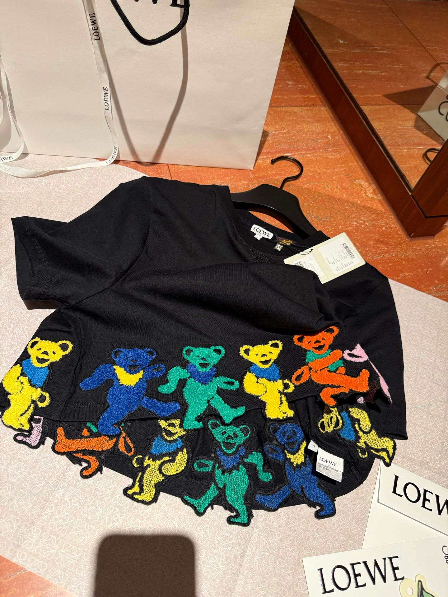 NIGO Loewe x Grateful Dead Women's Summer Cotton Short Bear Embroidery Solid Color Round Neck T-Shirt Ngvp #nigo1672