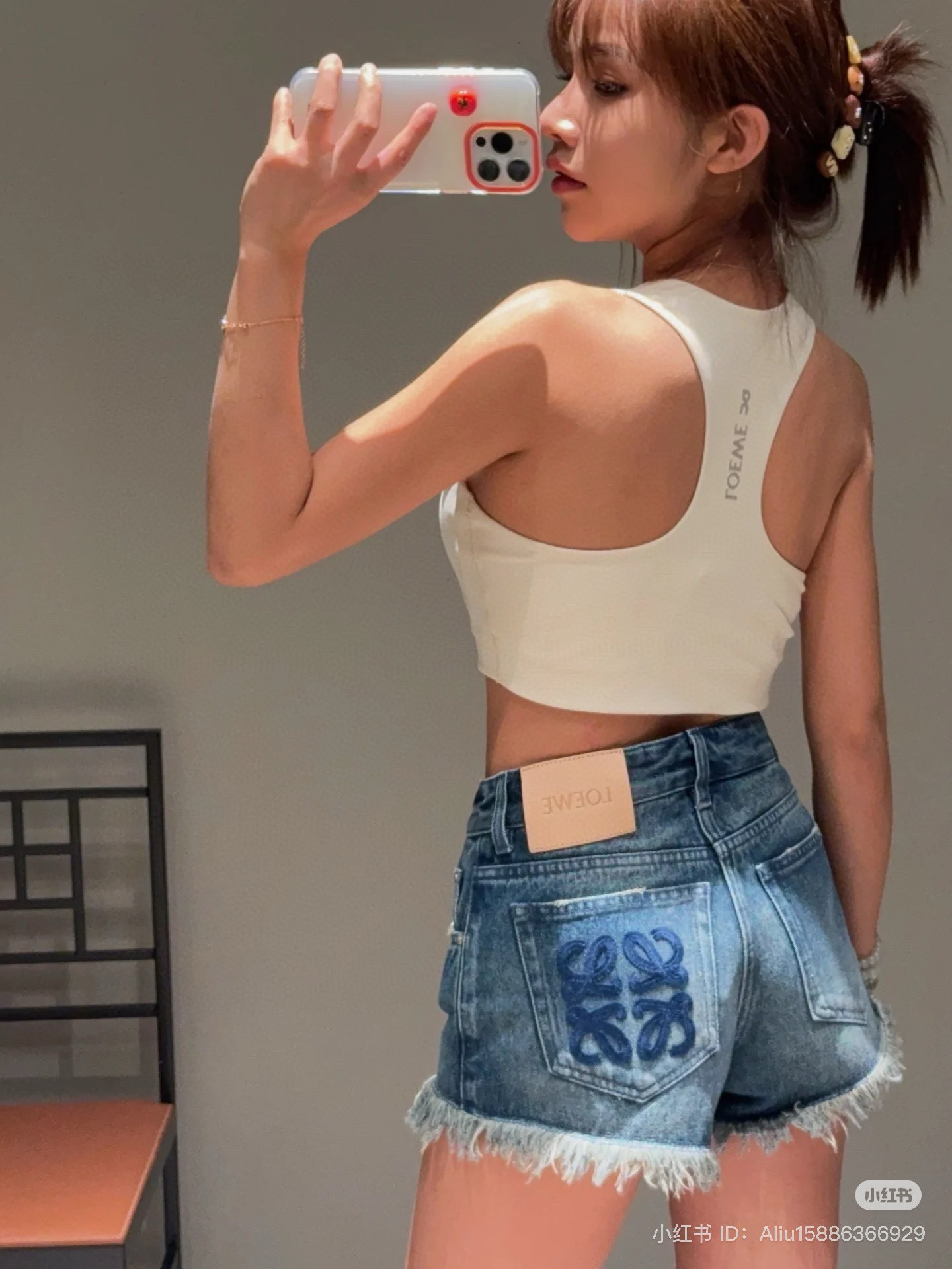 NIGO Loewe Women's Summer Solid Color Fringed Hem Denim Shorts #nigo77293