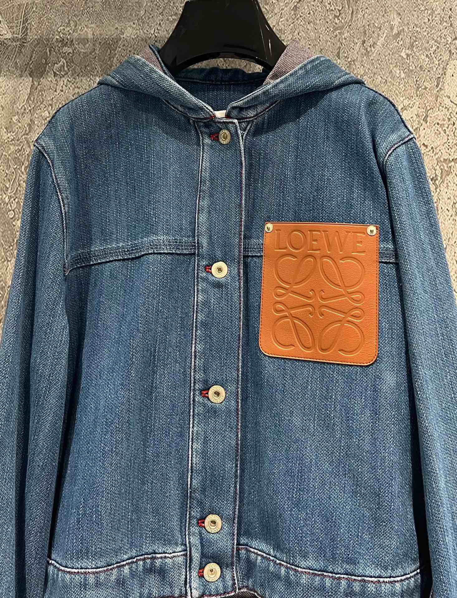L NIGO LOEWE Women's Spring and Autumn Solid Color Cowboy Hoodie Single breasted Long sleeved Jacket