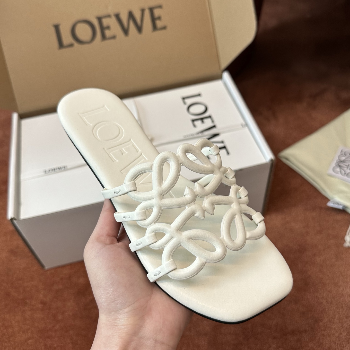 NIGO LOEWE Women's Summer Solid Colour Soft Cow Leather Petal Anagram Sandals Slippers Shoes #nigo76752