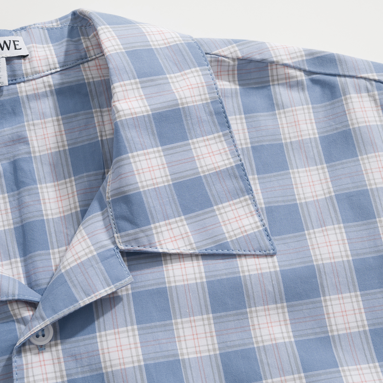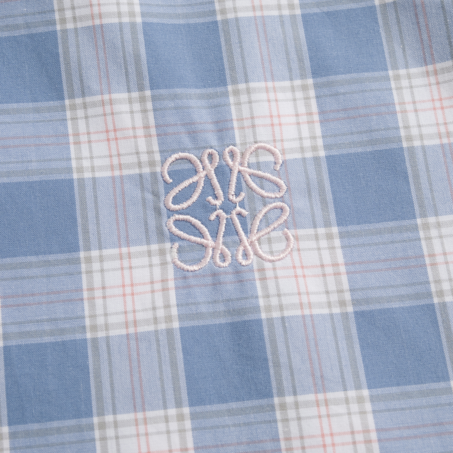 NIGO Loewe Men's Summer Solid Colour Check Printed Single Breasted Short Sleeve Shirt #nigo76766