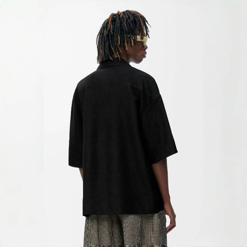 NIGO Loewe Men's Summer Solid Colour Embroidered Logo Printed Linen Single Breasted Short Sleeve Shirt #nigo76797