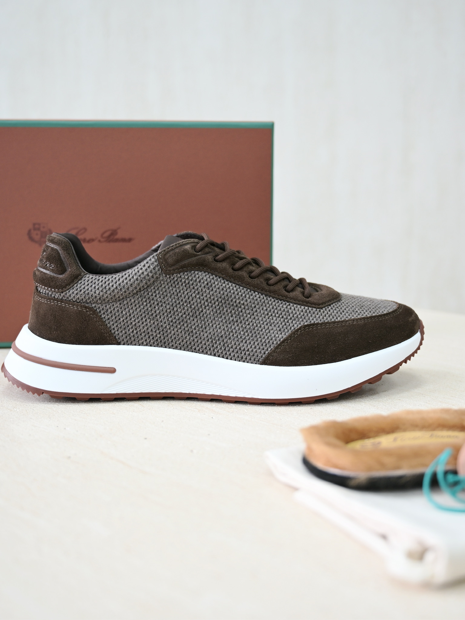 NIGO Loro Piana Week End Walk Wool Thick Sole Lace Low Top Lifestyle Shoes Men's Brown Green #nigo332220