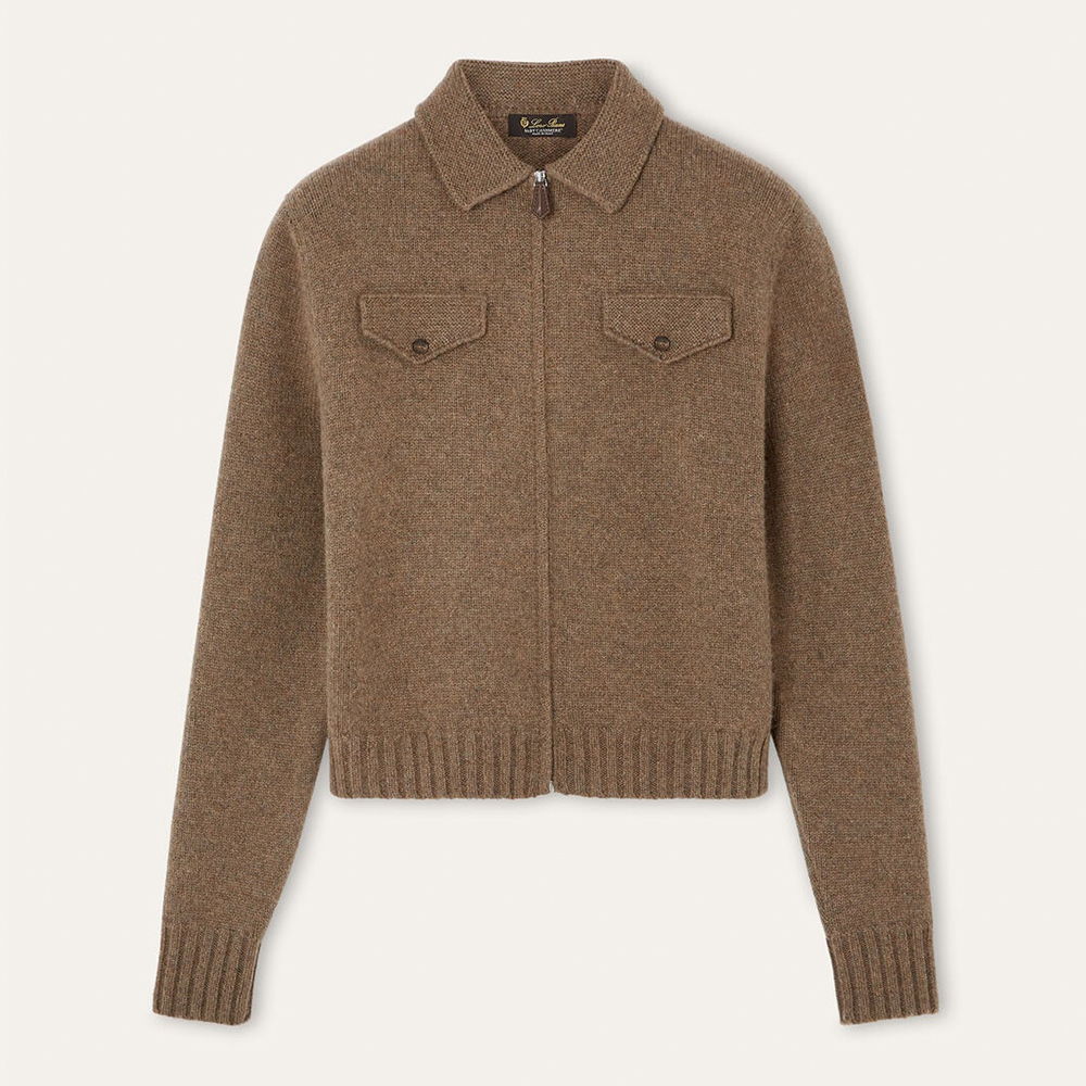 NIGO Loro Piana Women's FW25 Parksville Women's Jacket Ribbed Lapel Zippered Long-sleeve Cashmere Sweater #nigo332302