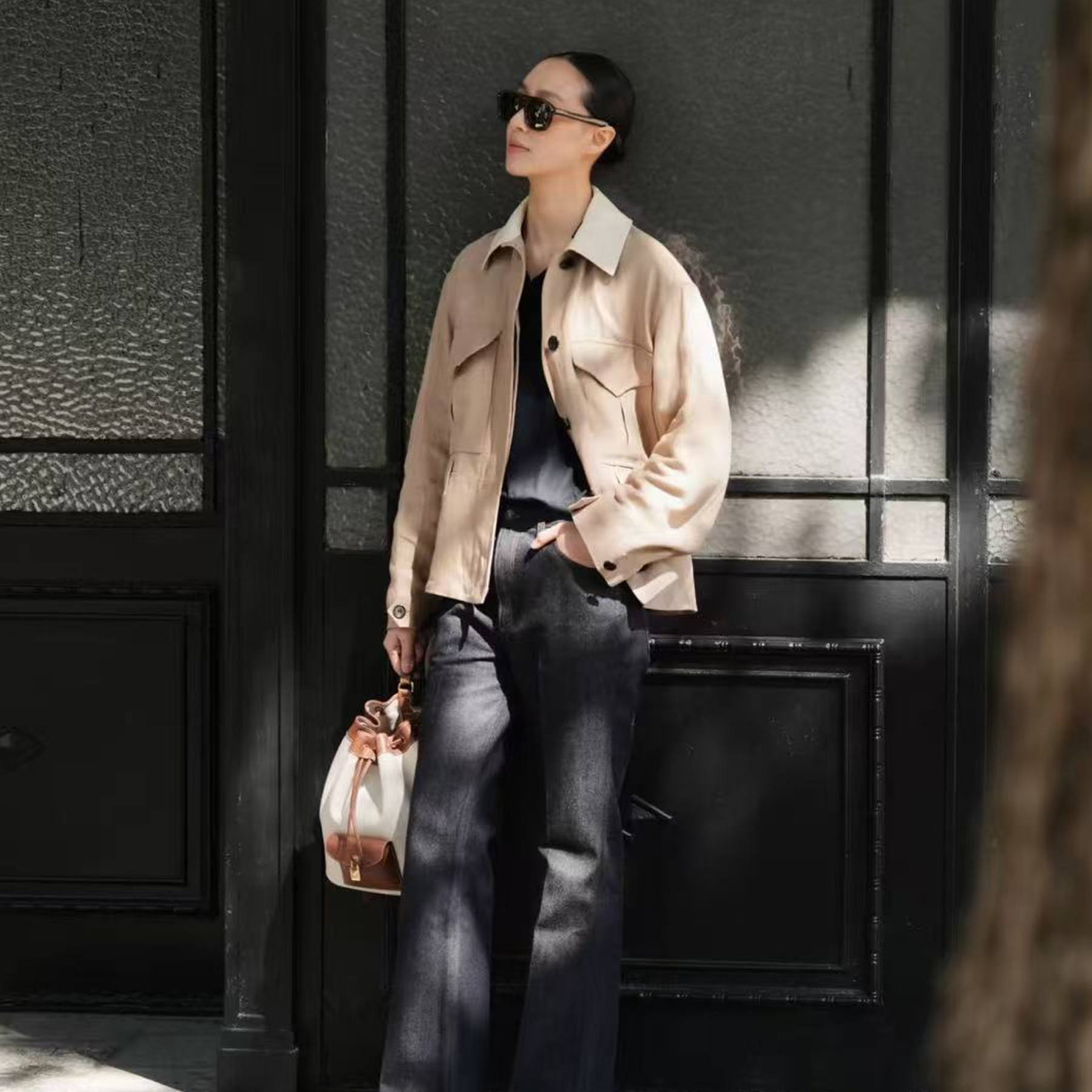 NIGO Loro Piana Dillon Women's Jacket Spring And Autumn Apricot Lapel Button Belt Jacket Fashion Elegant Casual Jacket Ngvp #nigo2419