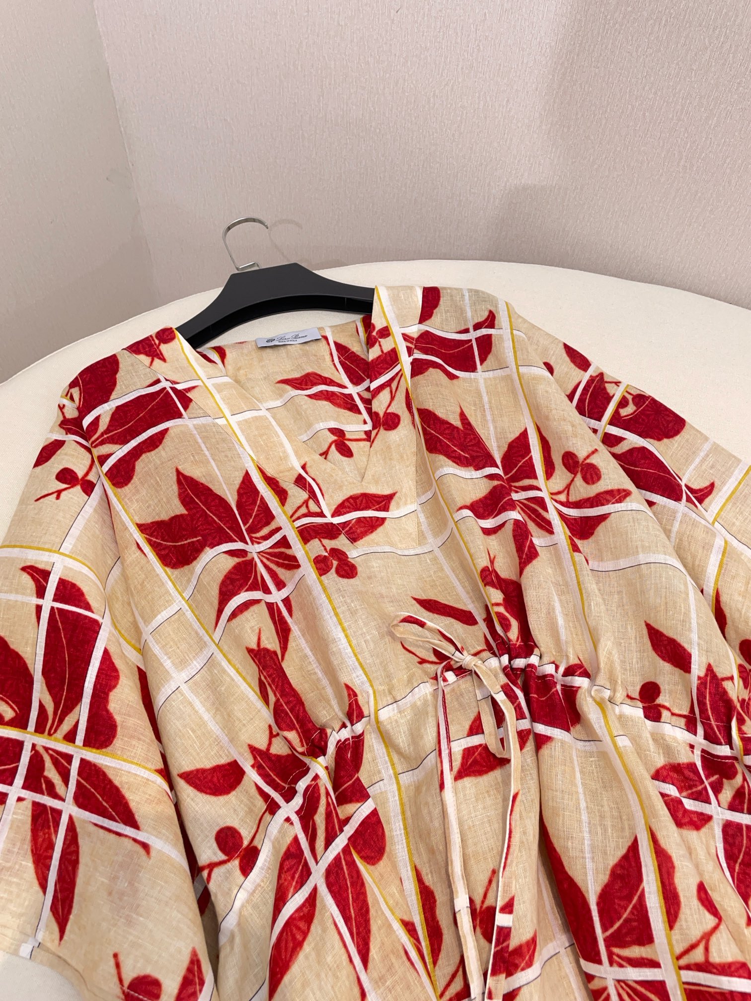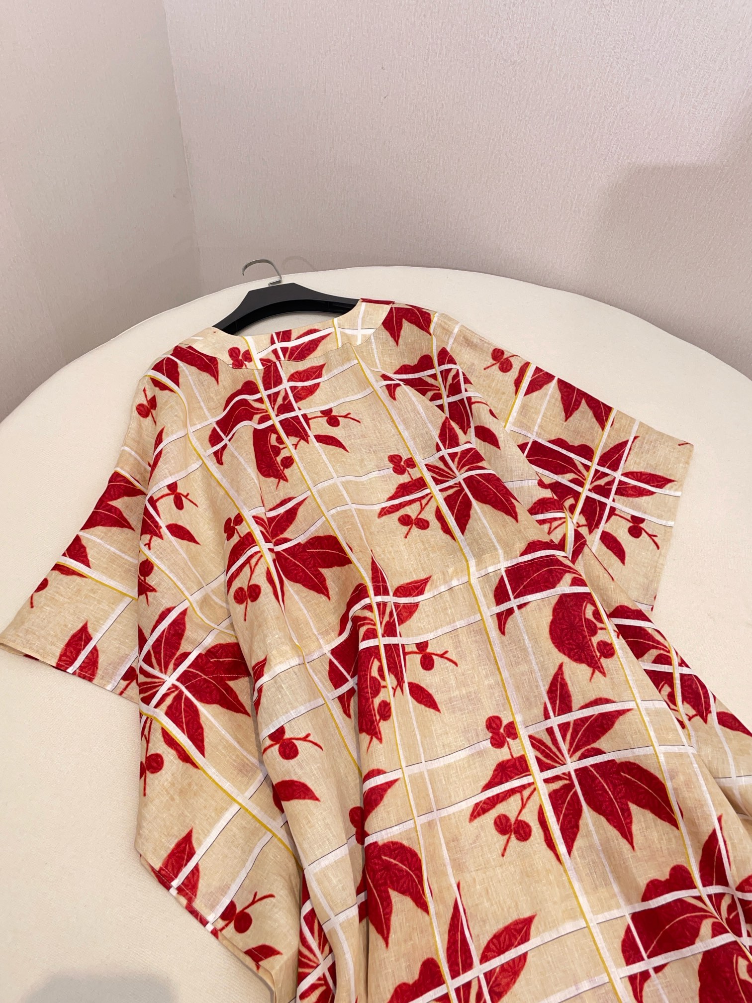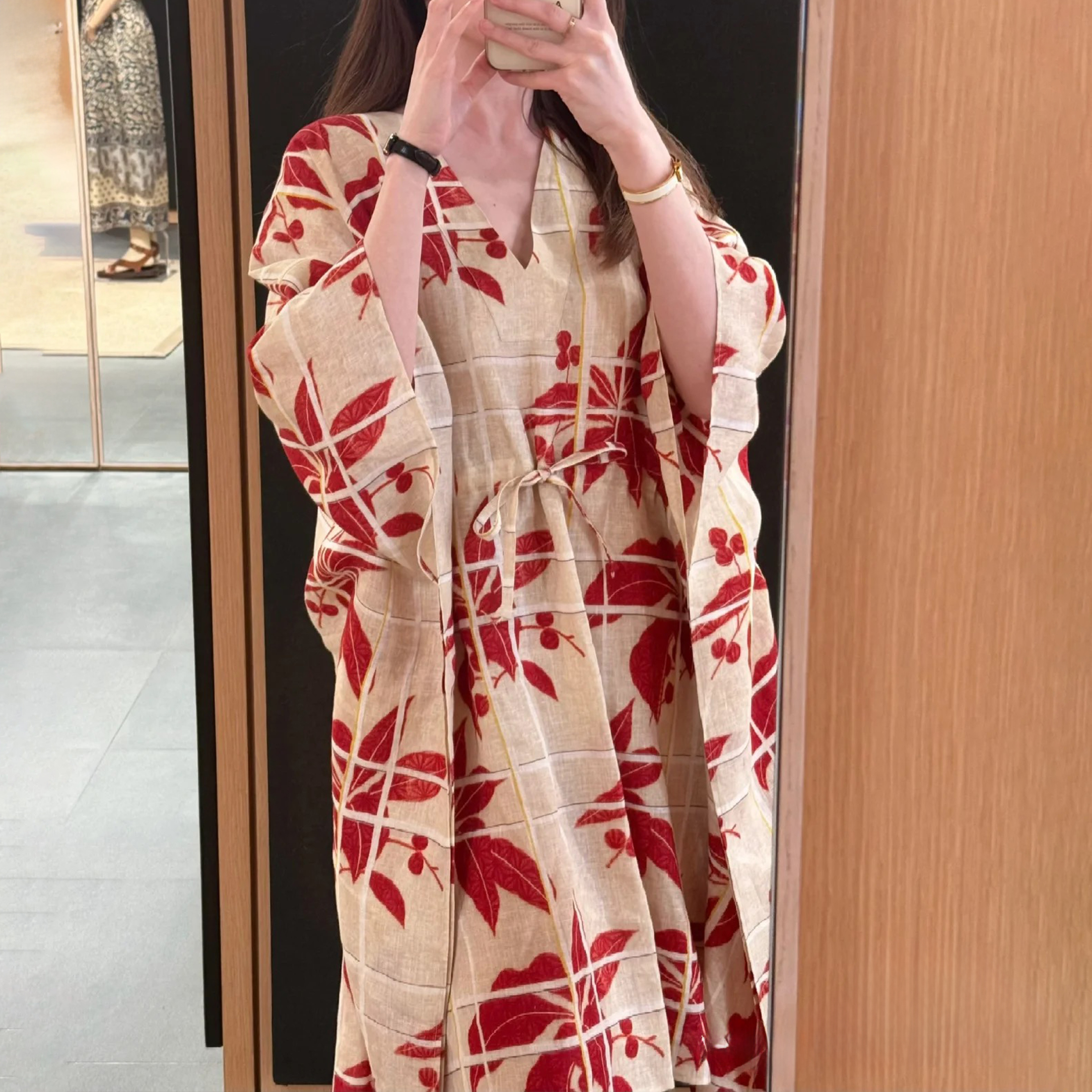 NIGO Loro Piana Ichi Women's Printed Linen Dress Elegant Cape Jacket Short Sleeve V-neck Fashion Loose Dresses Ngvp #nigo8771