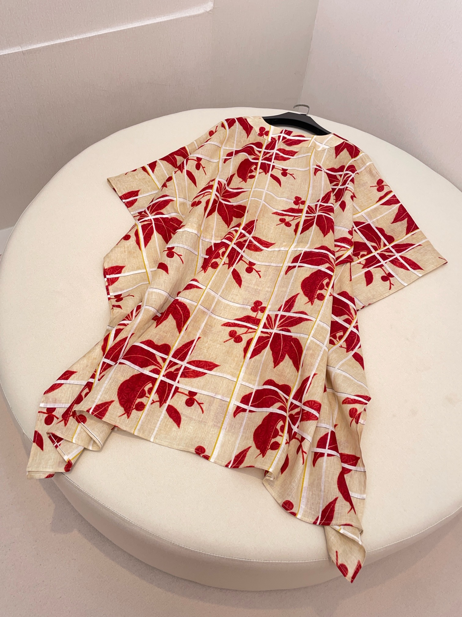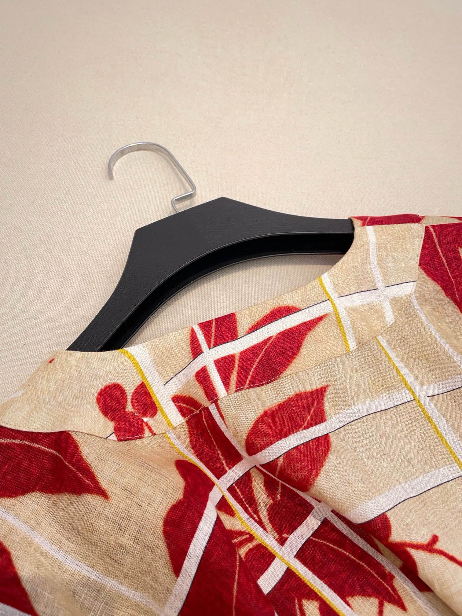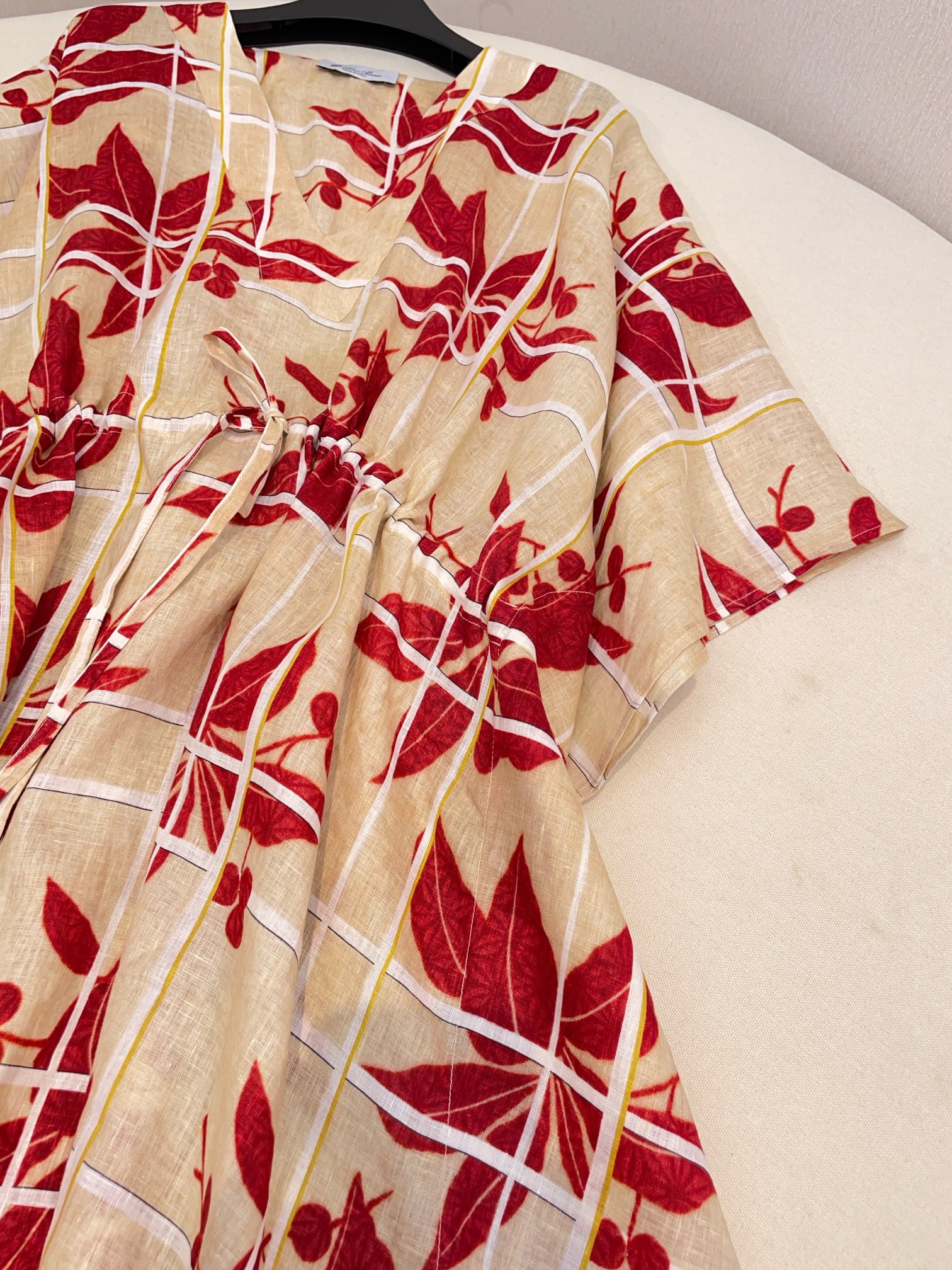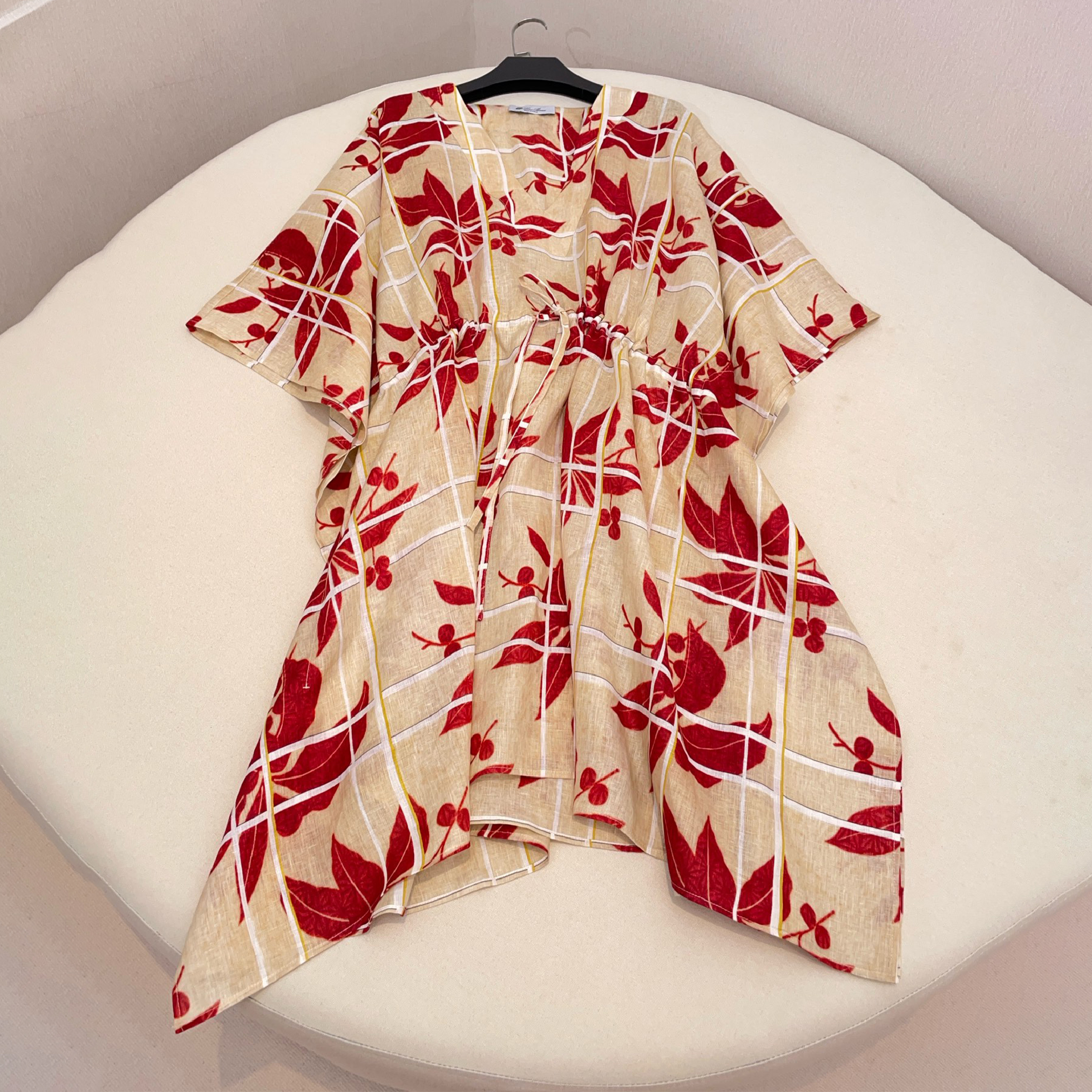 NIGO Loro Piana Ichi Women's Printed Linen Dress Elegant Cape Jacket Short Sleeve V-neck Fashion Loose Dresses Ngvp #nigo8771