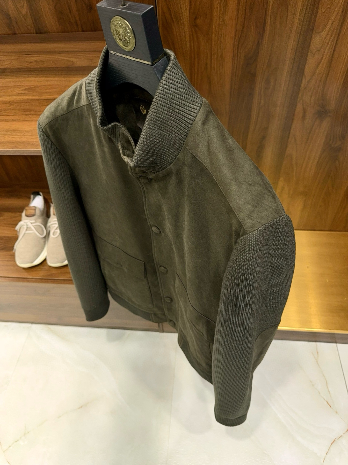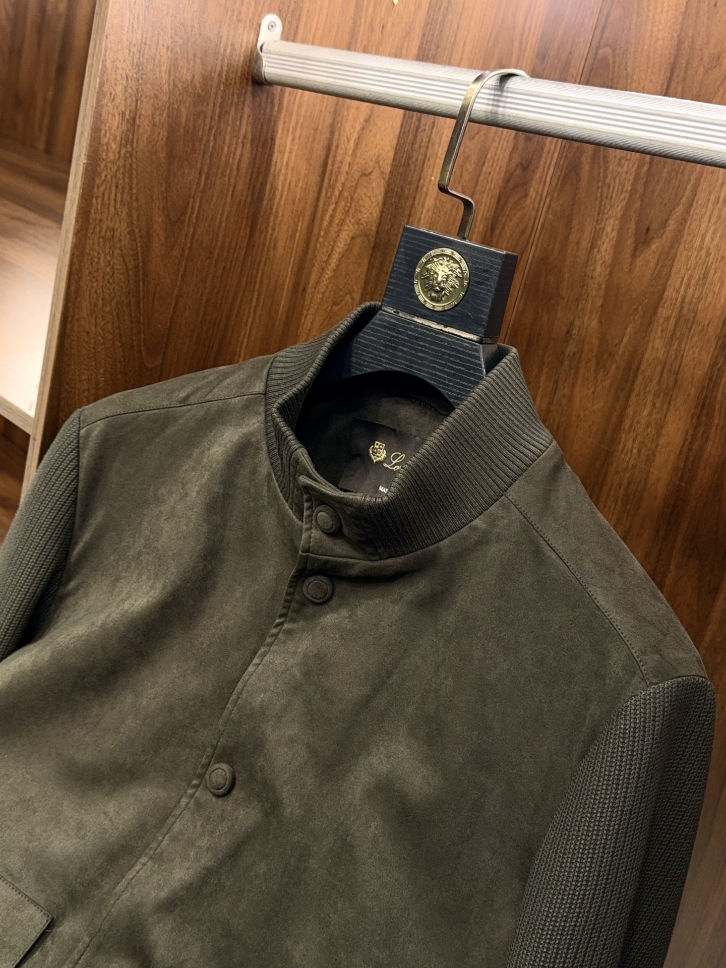 NIGO Loro Piana Men's Fall/Winter Fashion Casual Crew Neck Single Button Suede Velvet Patchwork Wool Knit Stand Collar Jacket #nigo79222