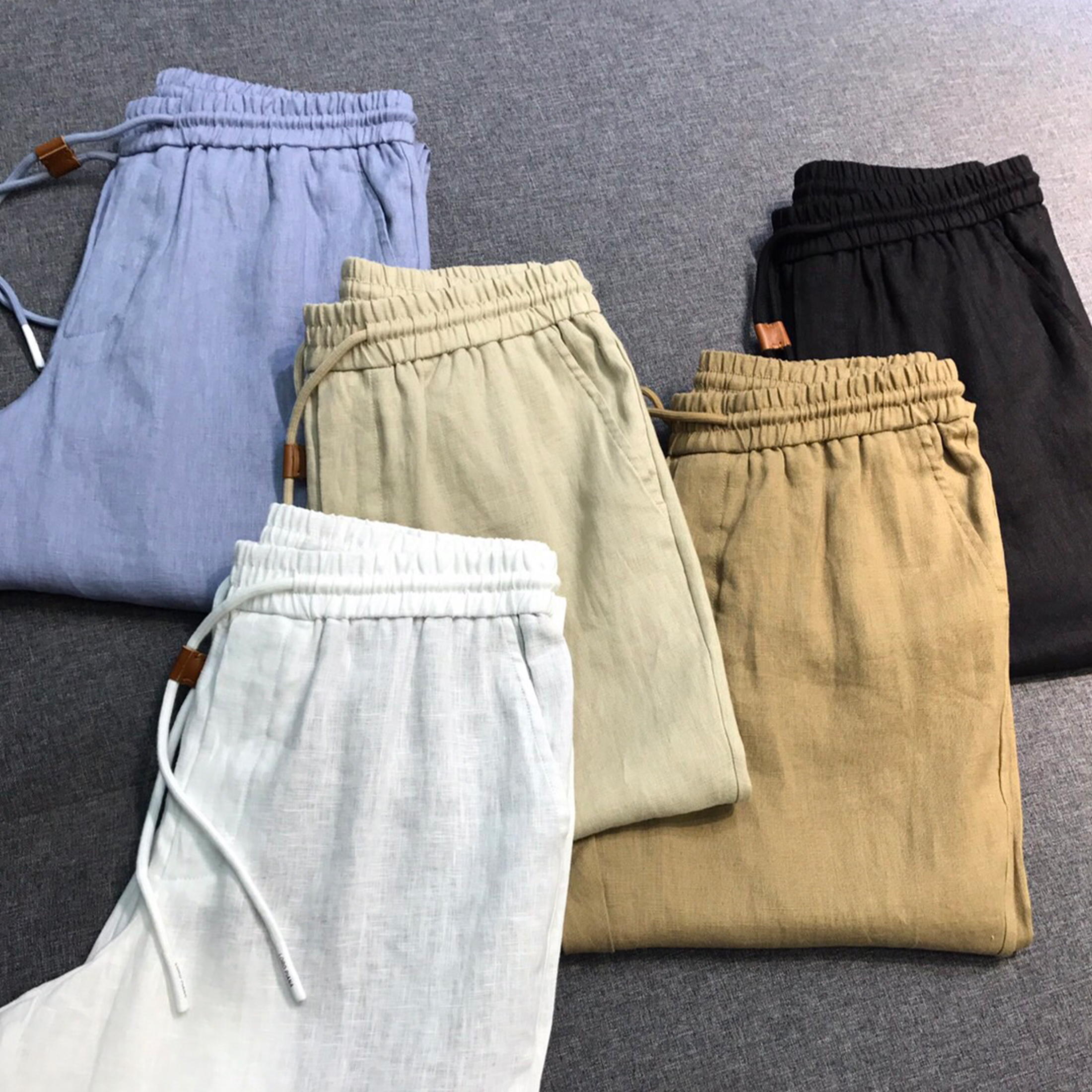 NIGO Loro Piana Men's Spring And Summer Solid Colour Drawstring Fashion Pants Loose Straight Comfortable Cotton Thin Suit Trousers Ngvp #nigo1472