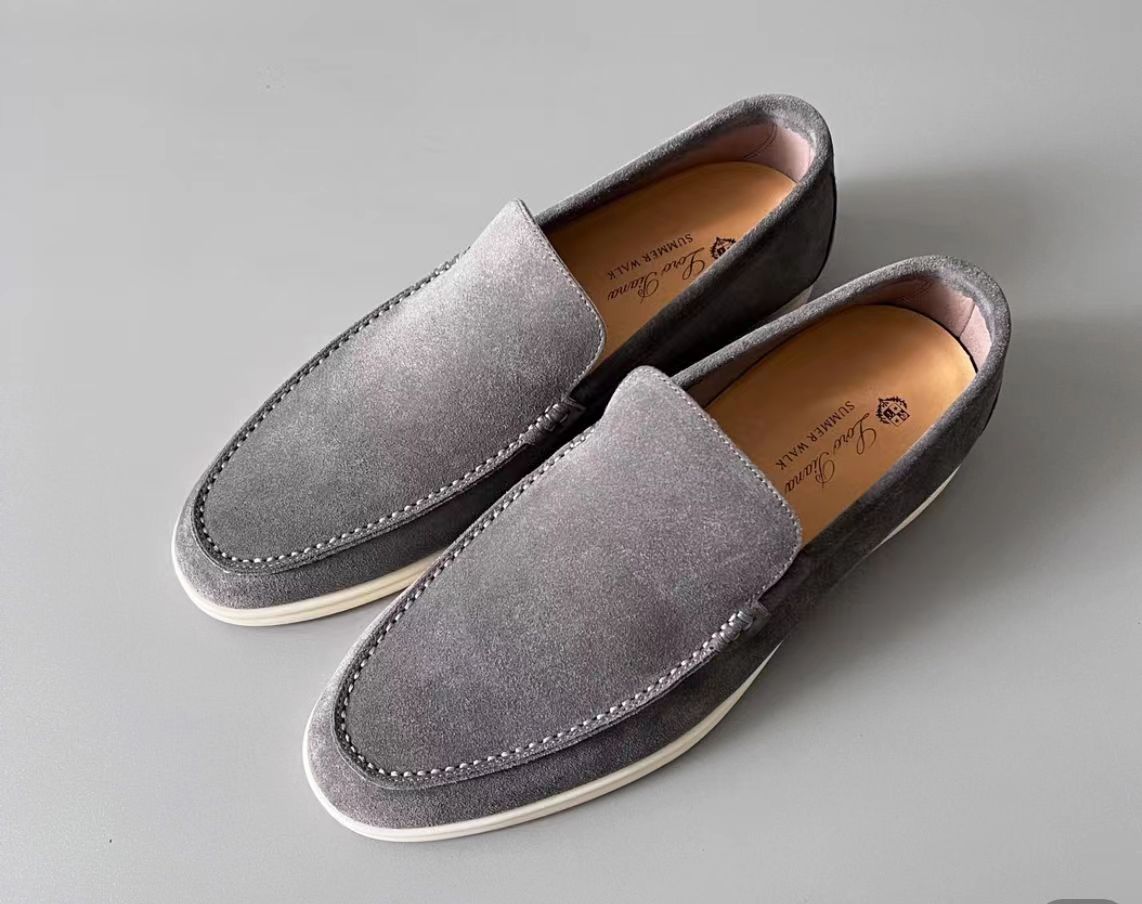 NIGO Loro Piana Summer Walk Men's Spring Summer Grey Suede Leather Loafers Casual Shoes #nigo99324