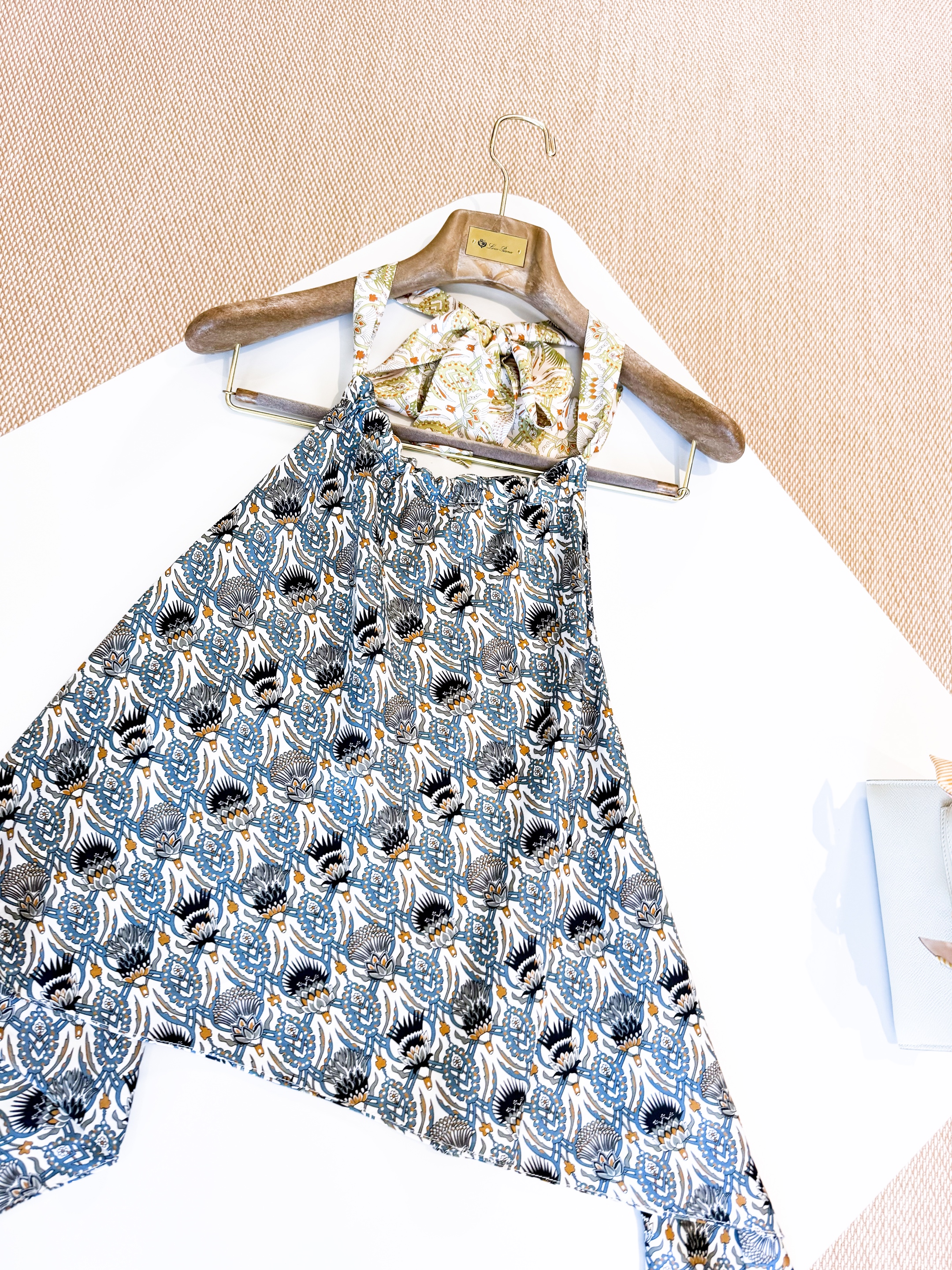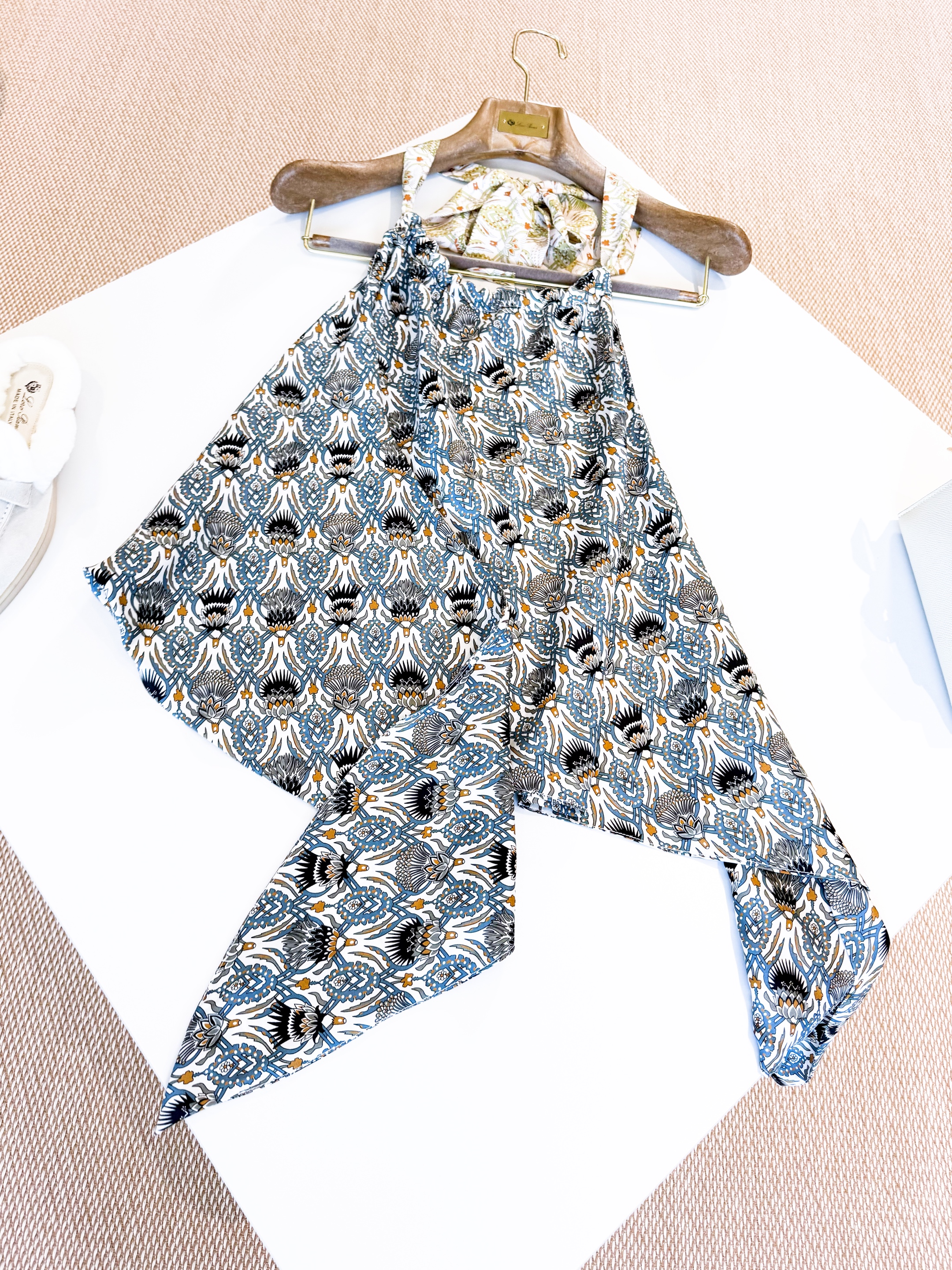 NIGO Loro Piana Women's Annet Top Summer Printed Sleeveless Lace Up Hanging Neck Silk Camisole Ngvp #nigo1828