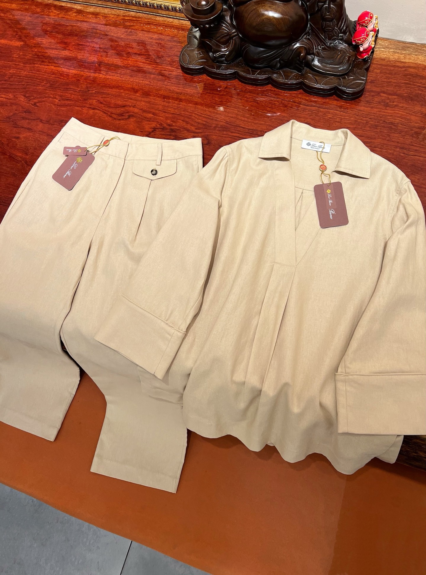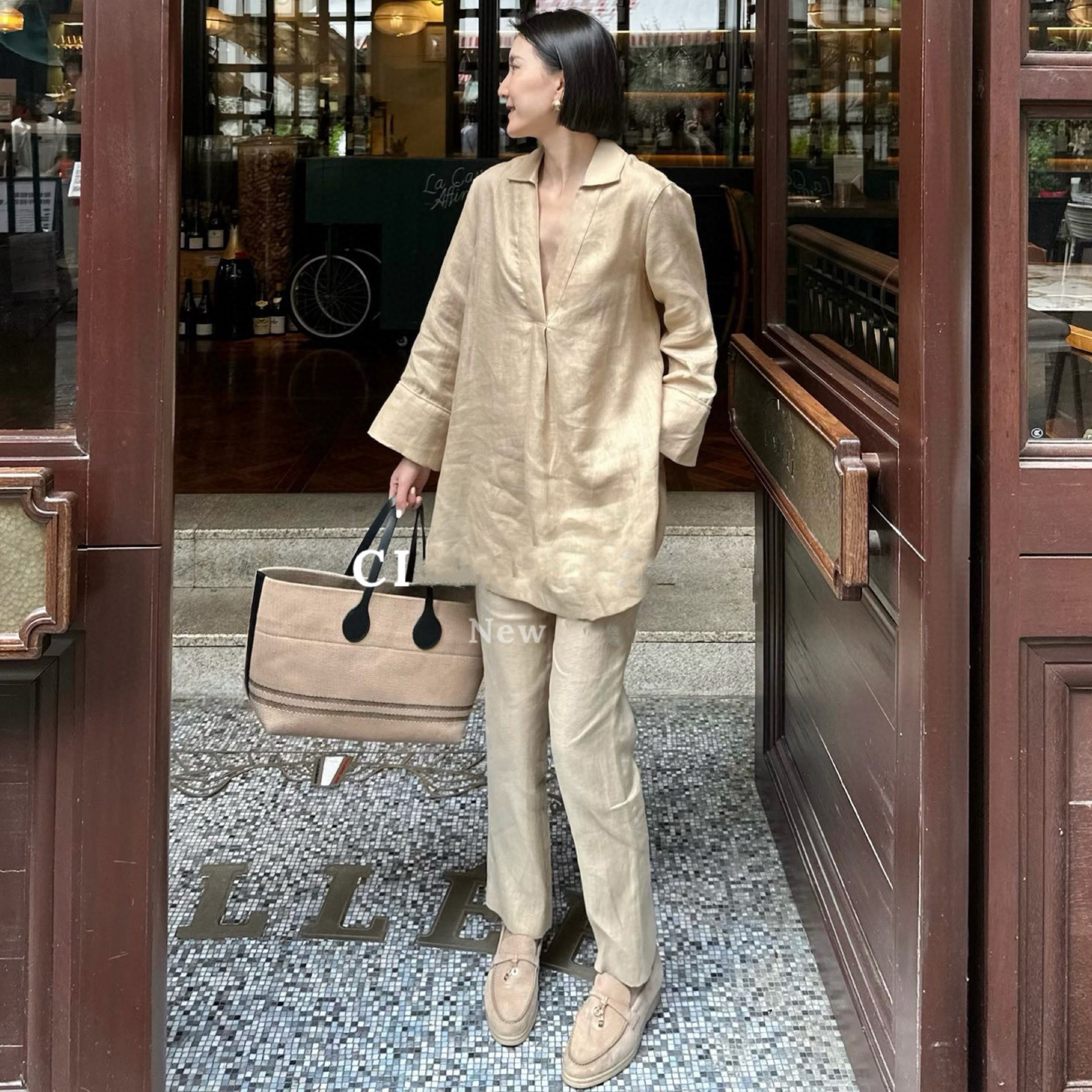 NIGO Loro Piana Women's Spring And Autumn Fashion Casual Comfortable Linen Suit Set V-neck Long Shirt Straight Cotton Trousers Pants Ngvp #nigo1615