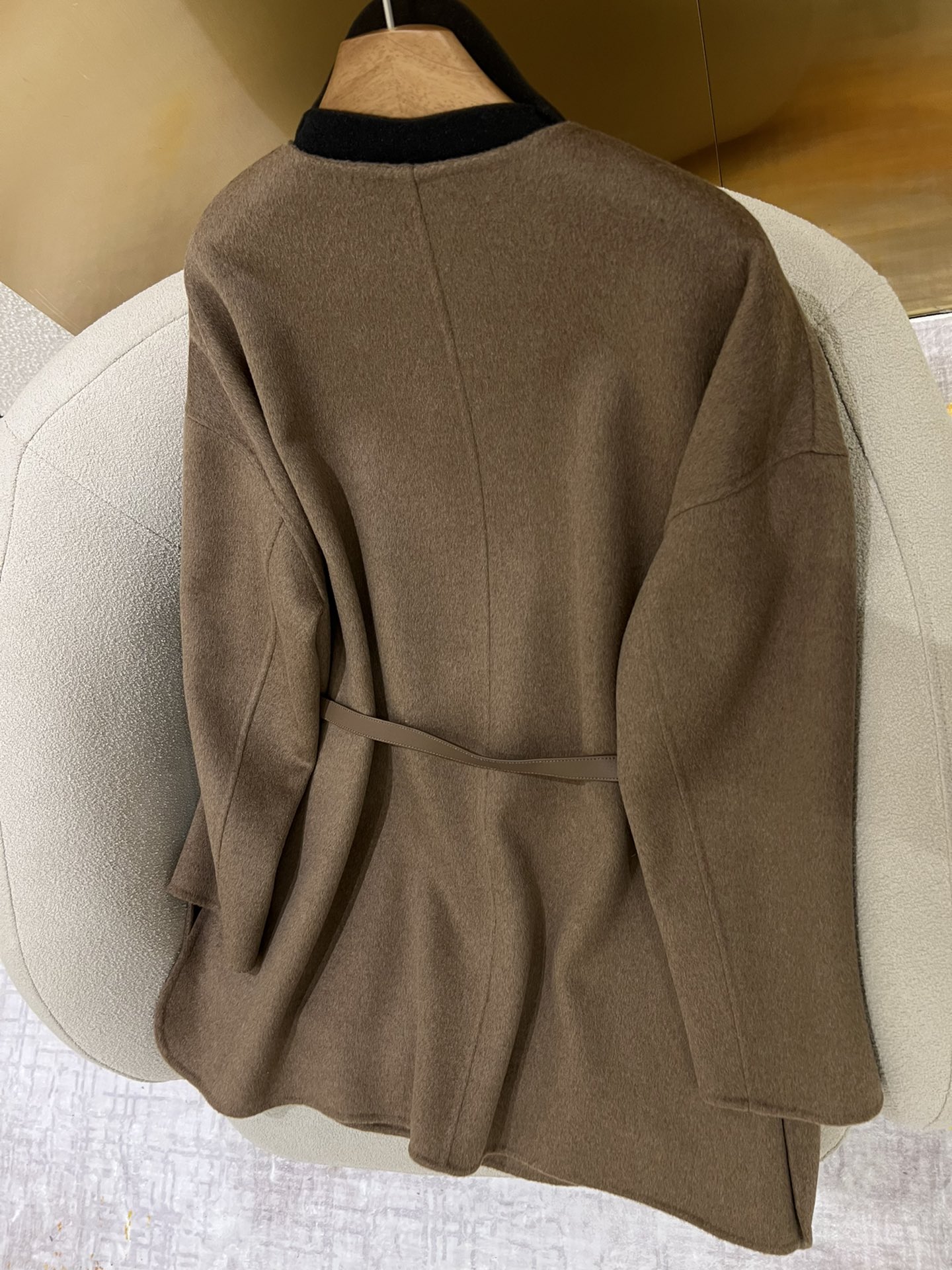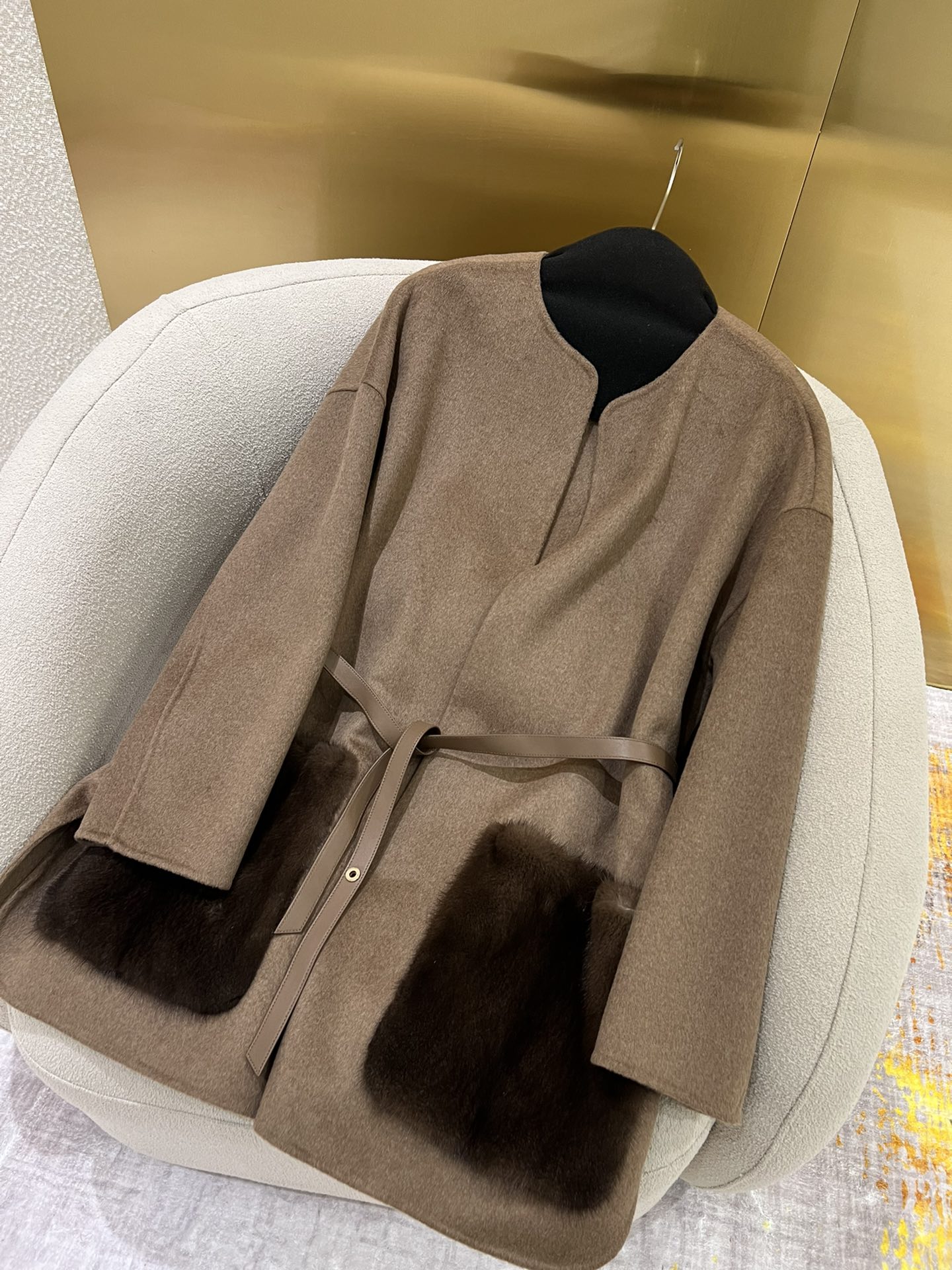 NIGO Loro Piana Women's Winter Classic Fashion Round Neck Single-Breasted Cashmere Mink Coat with Lambskin Belted Jacket #nigo78642