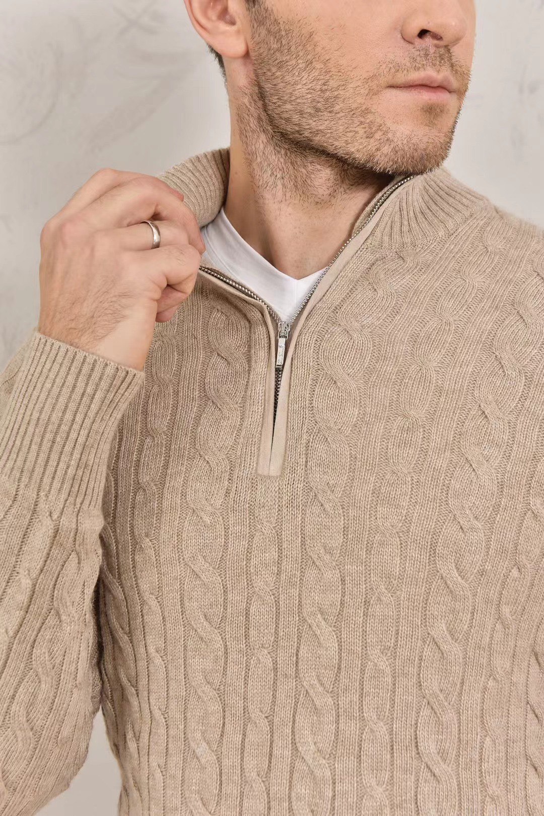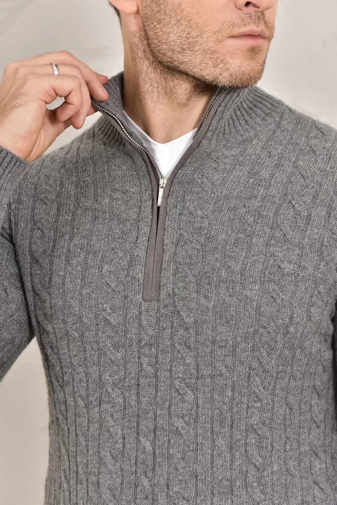NIGO Loro Piana Men's Fall/Winter Half High Neck Zipper Long Sleeve Cashmere Fitted Knit Sweater Ngvp #nigo9738