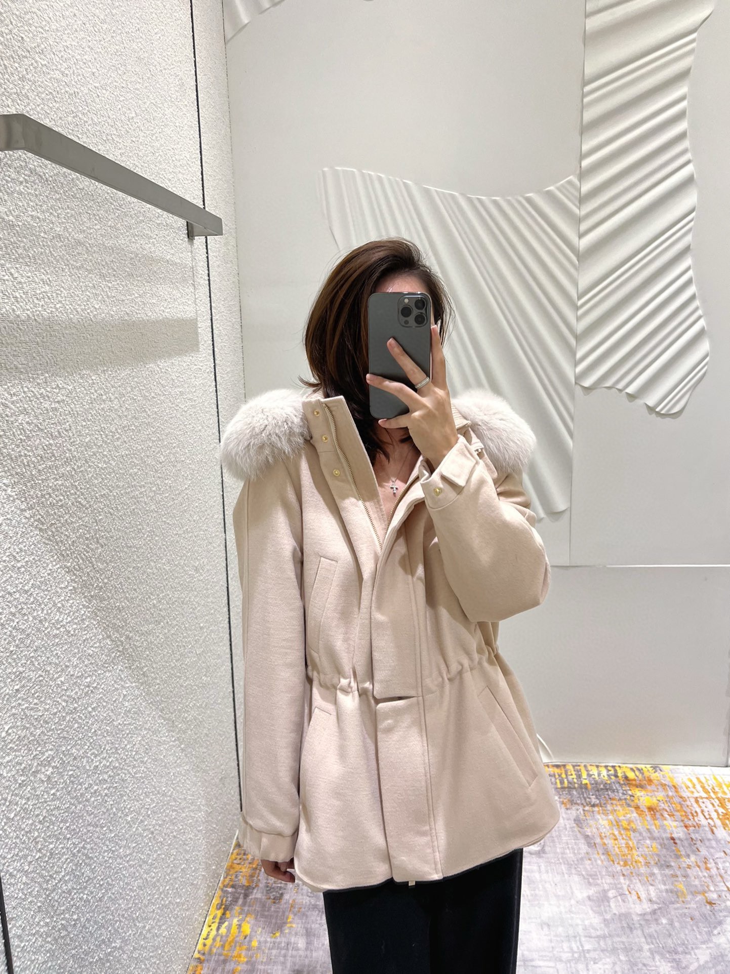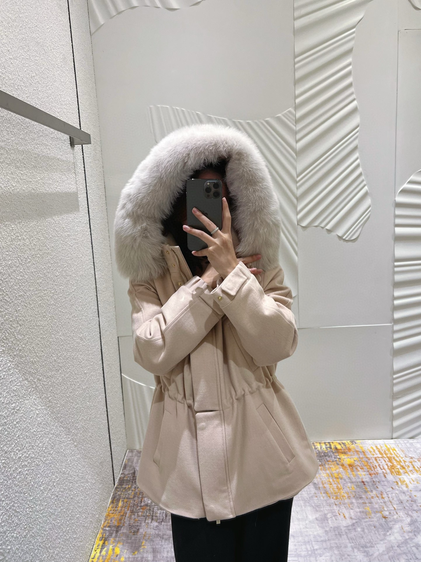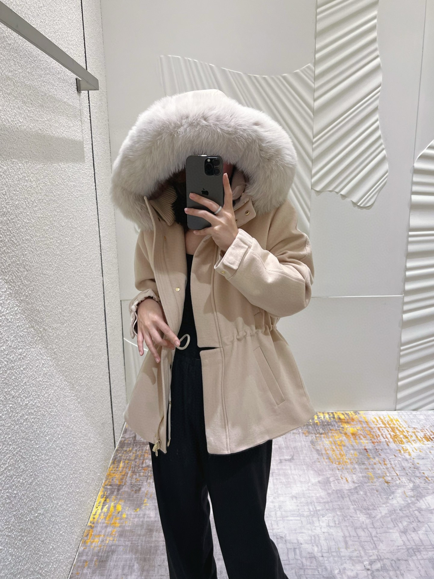 NIGO Loro Piana Women's Winter Cashmere Wool Solid Color Drawstring Hooded Double Breasted Long Coat Jacket #nigo74147