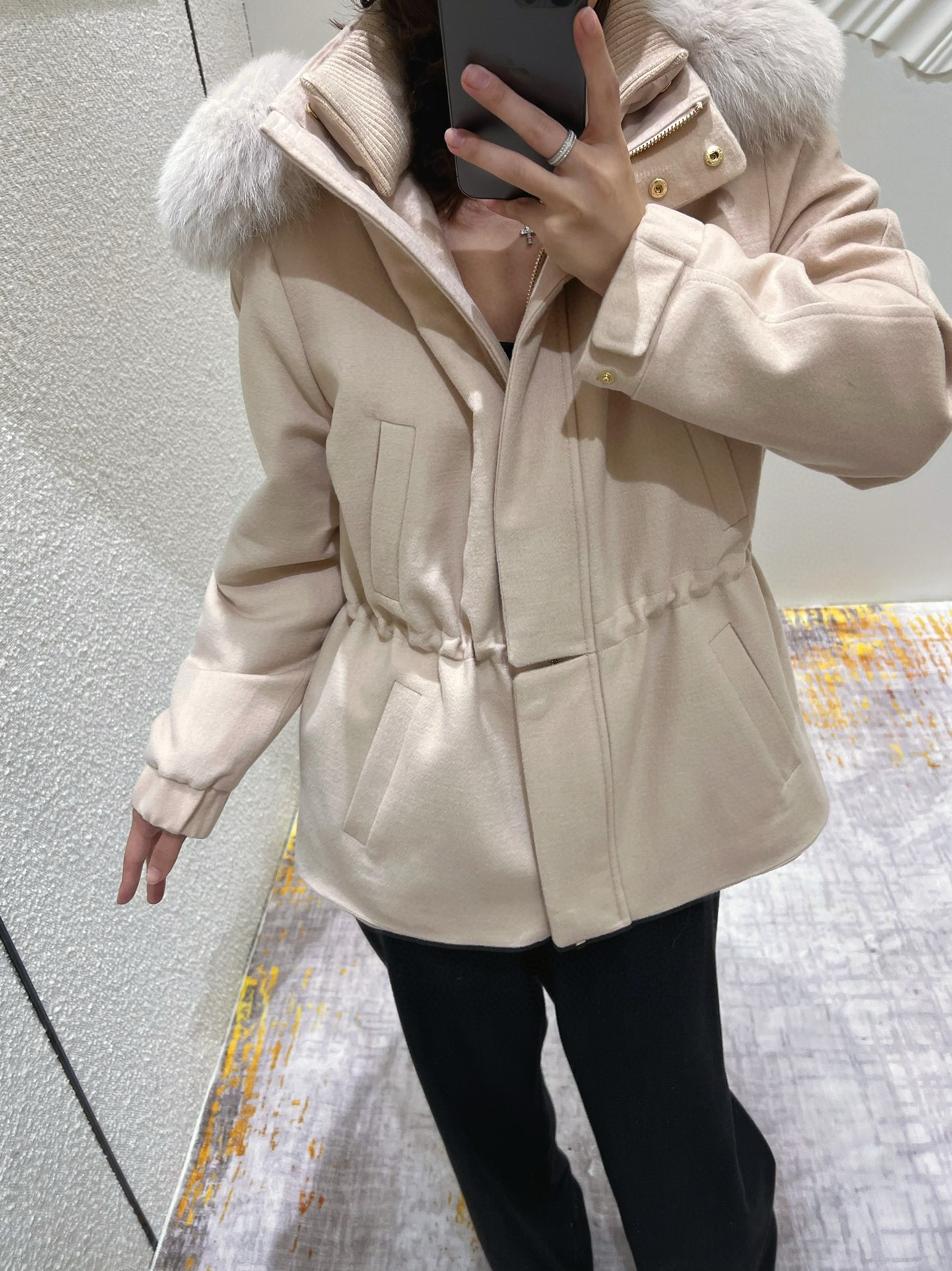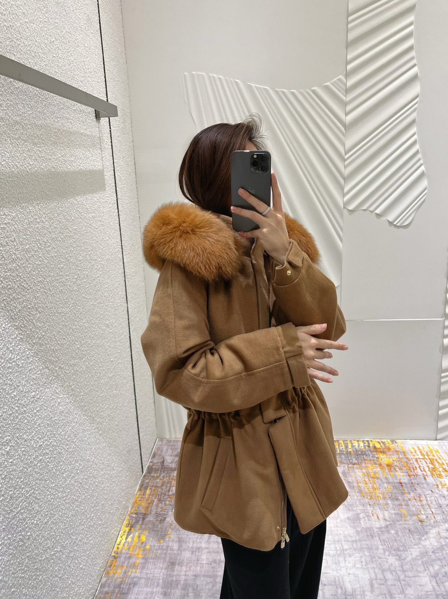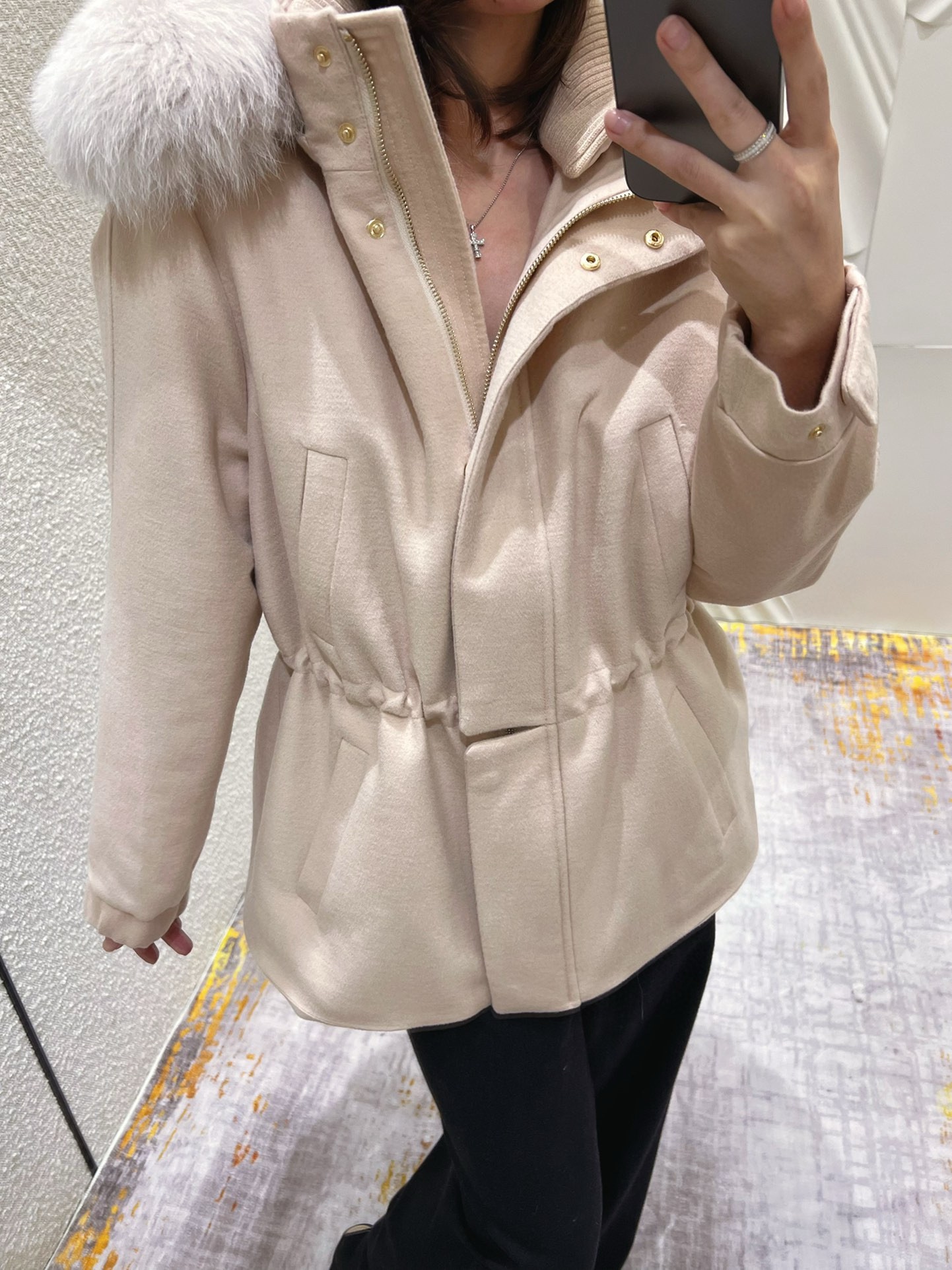 NIGO Loro Piana Women's Winter Cashmere Wool Solid Color Drawstring Hooded Double Breasted Long Coat Jacket #nigo74147