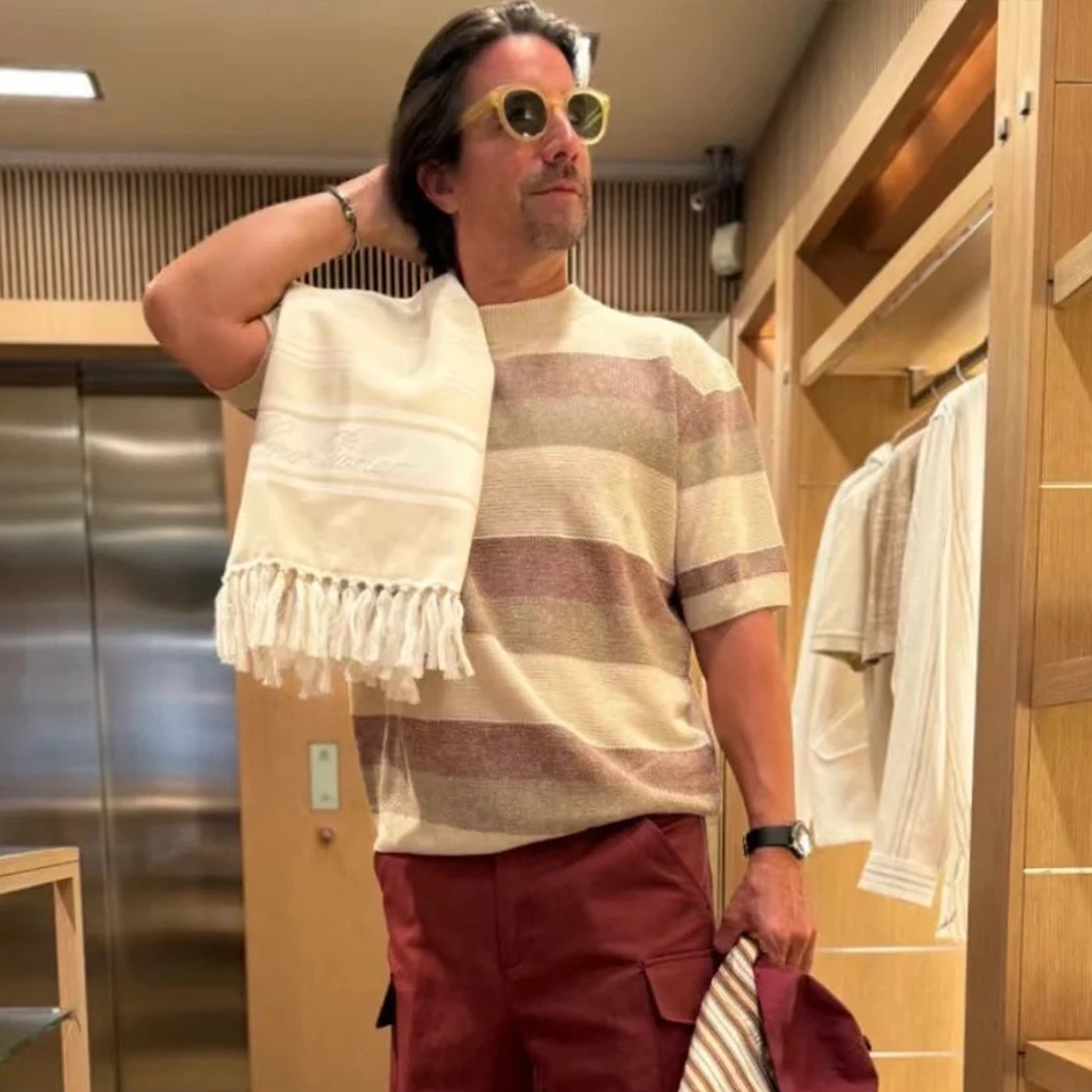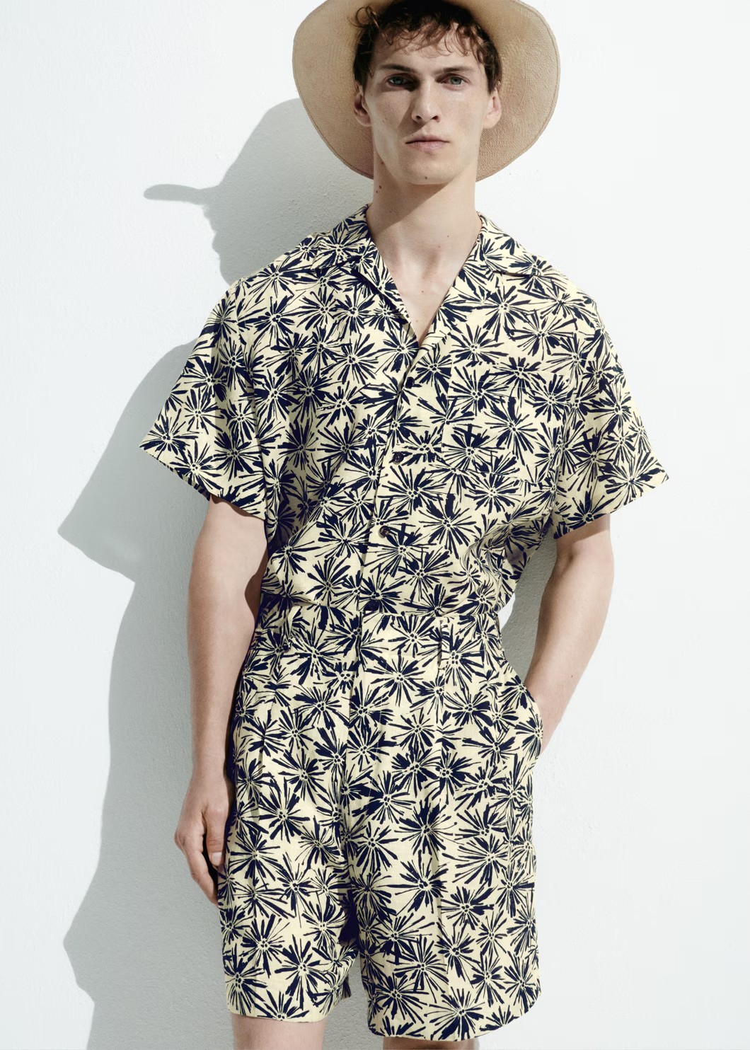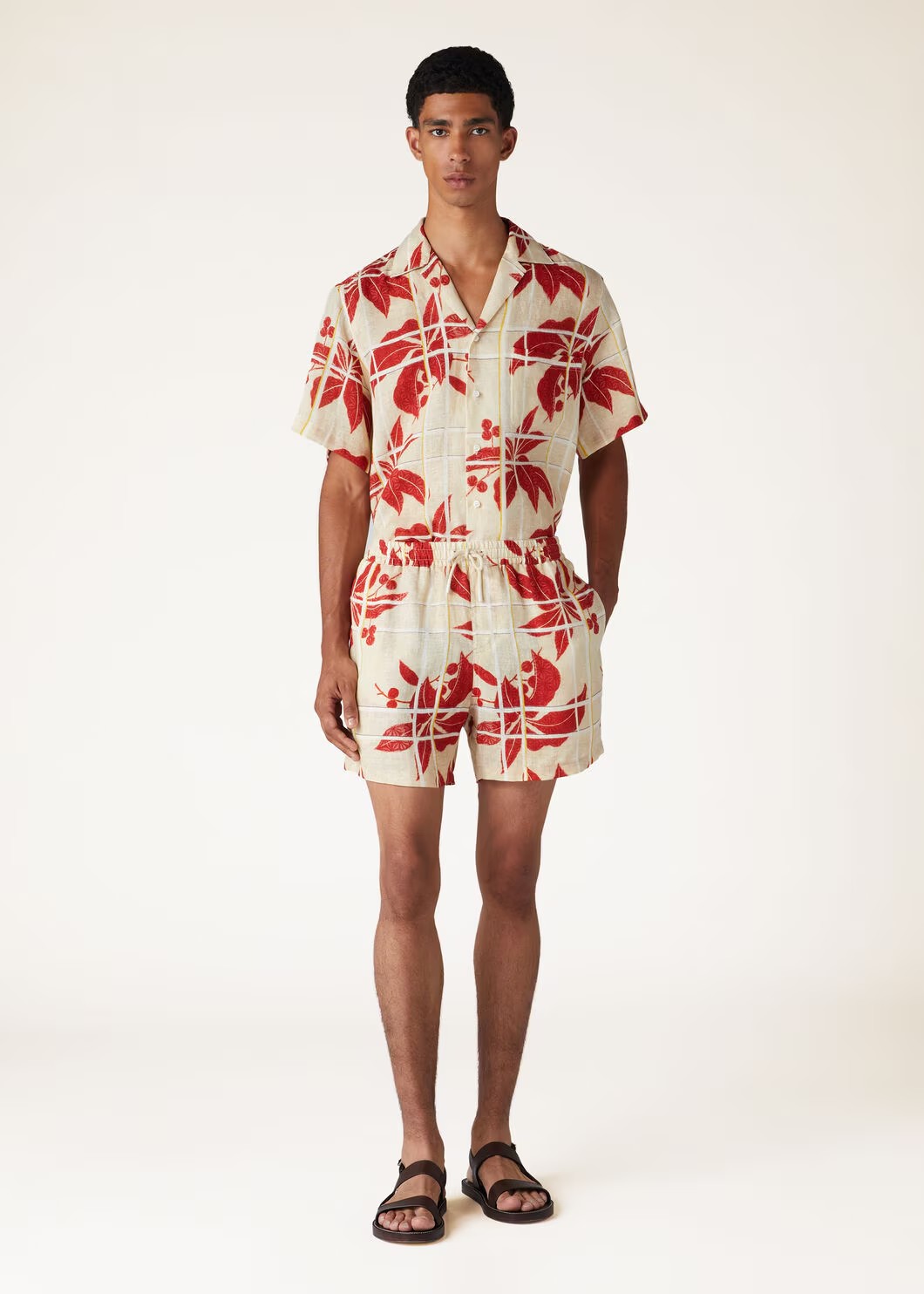 NIGO Loro Piana Men's Summer Patterned Printed Linen Lapel Fitted Tindaro Short Sleeve Shirt Ngvp #nigo8953