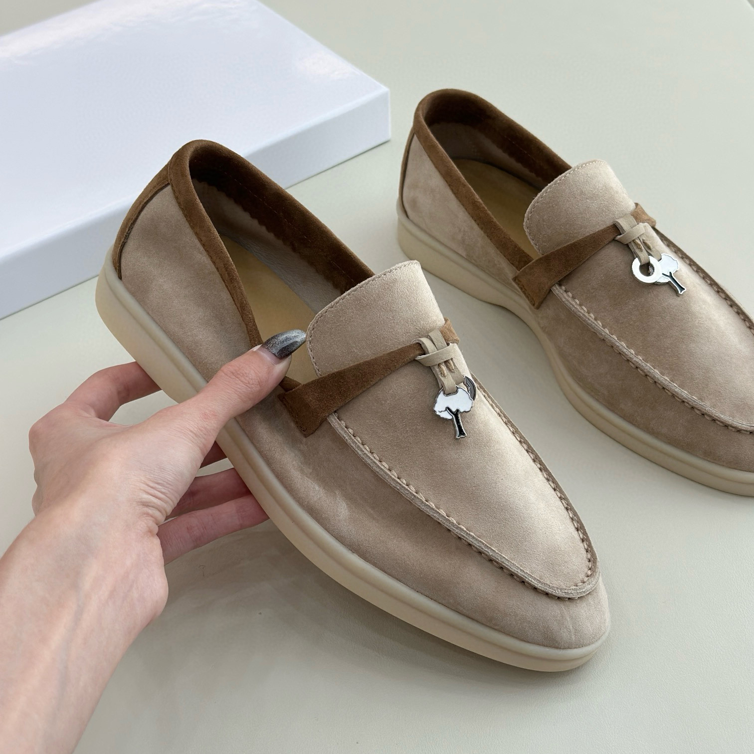NIGO Loro Piana Women's Solid Color Suede Leather Pendant Flat Loafers Shoes #nigo98125