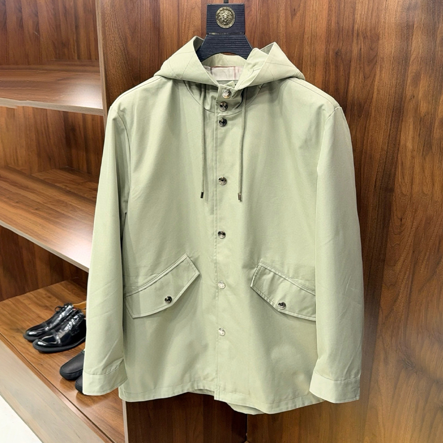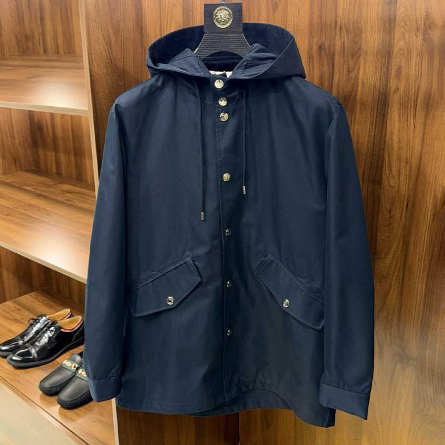 NIGO Loro Piana Men's Spring/Fall Solid-Color Double-Pocket Drawstring Single-Breasted Hooded Trench Coat Ngvp #nigo2339