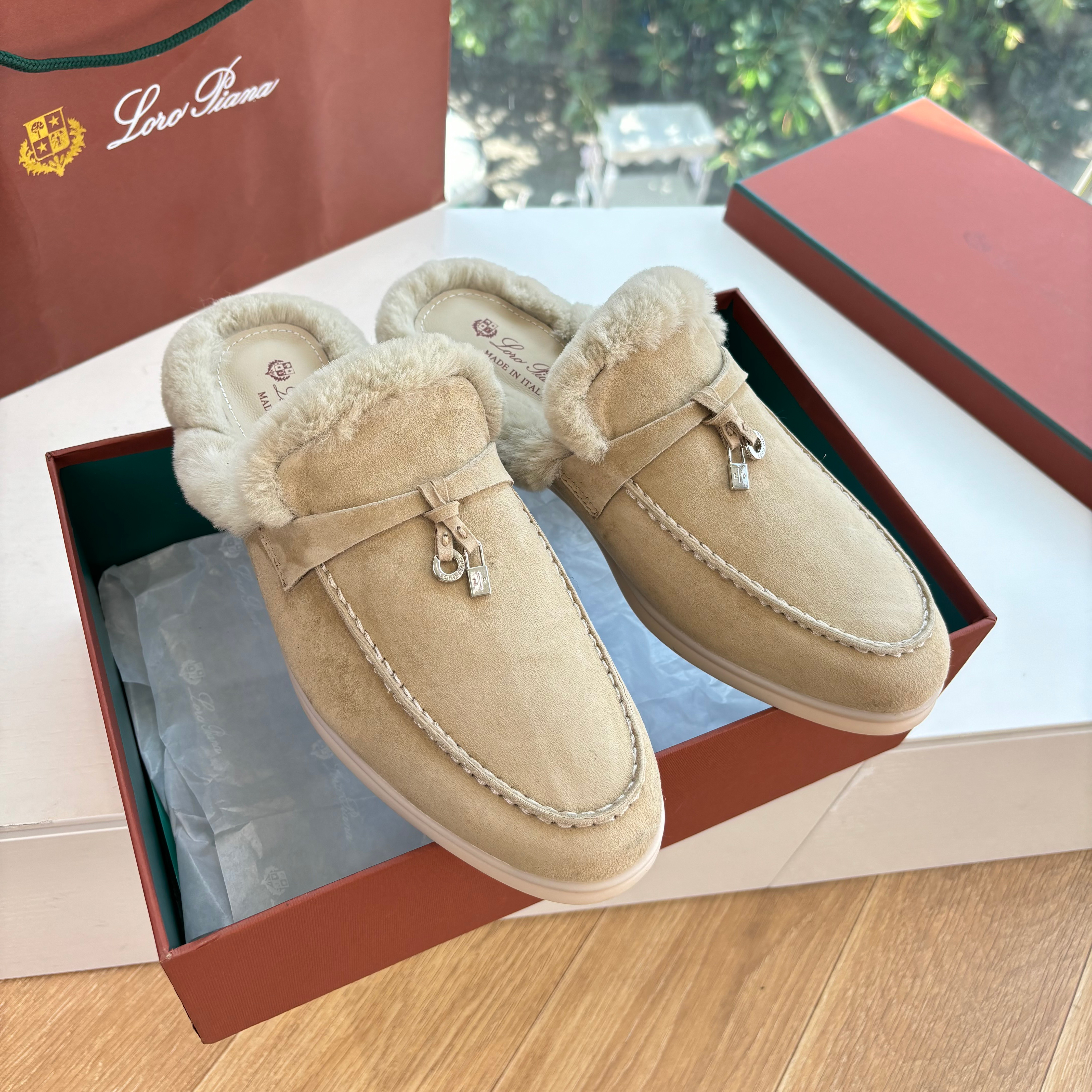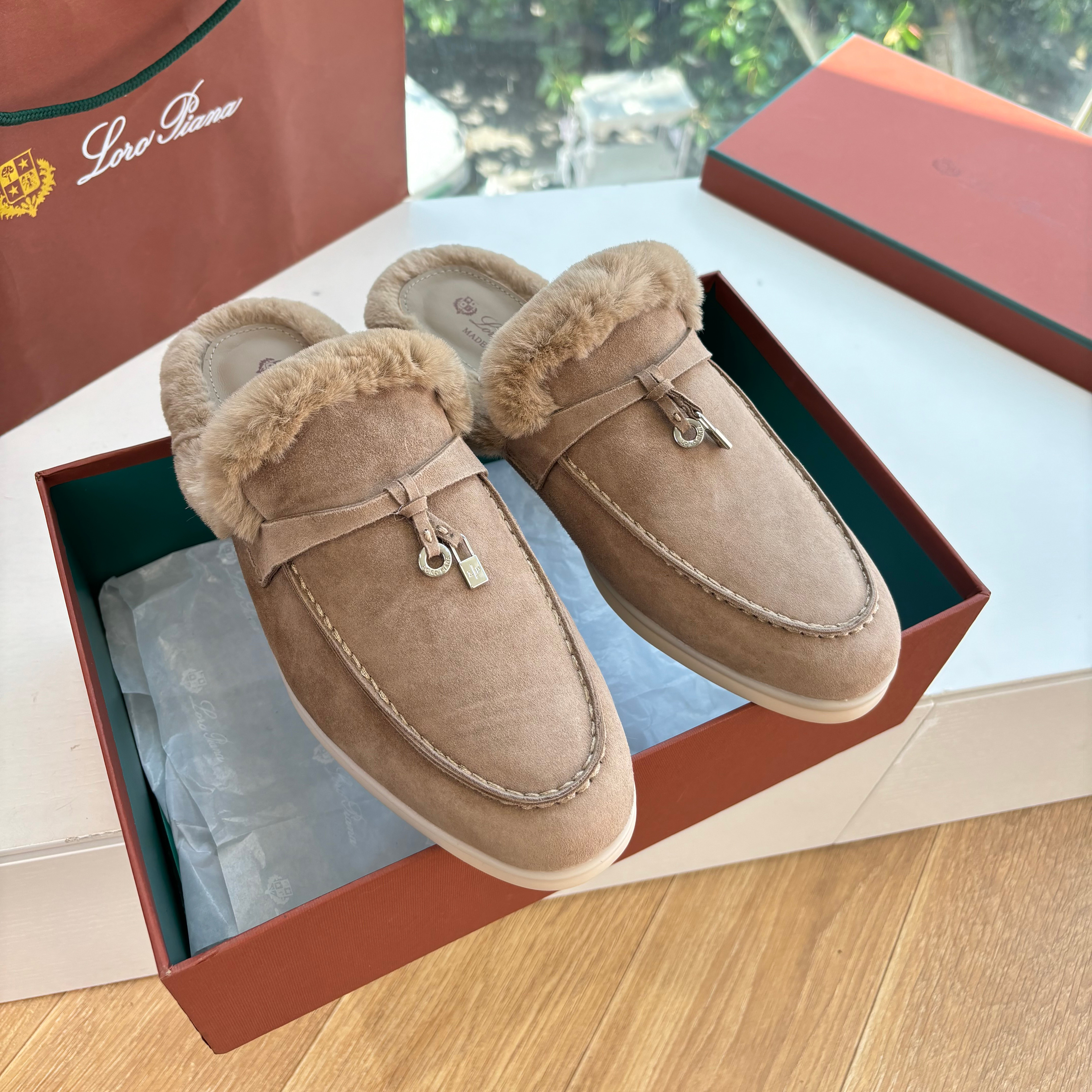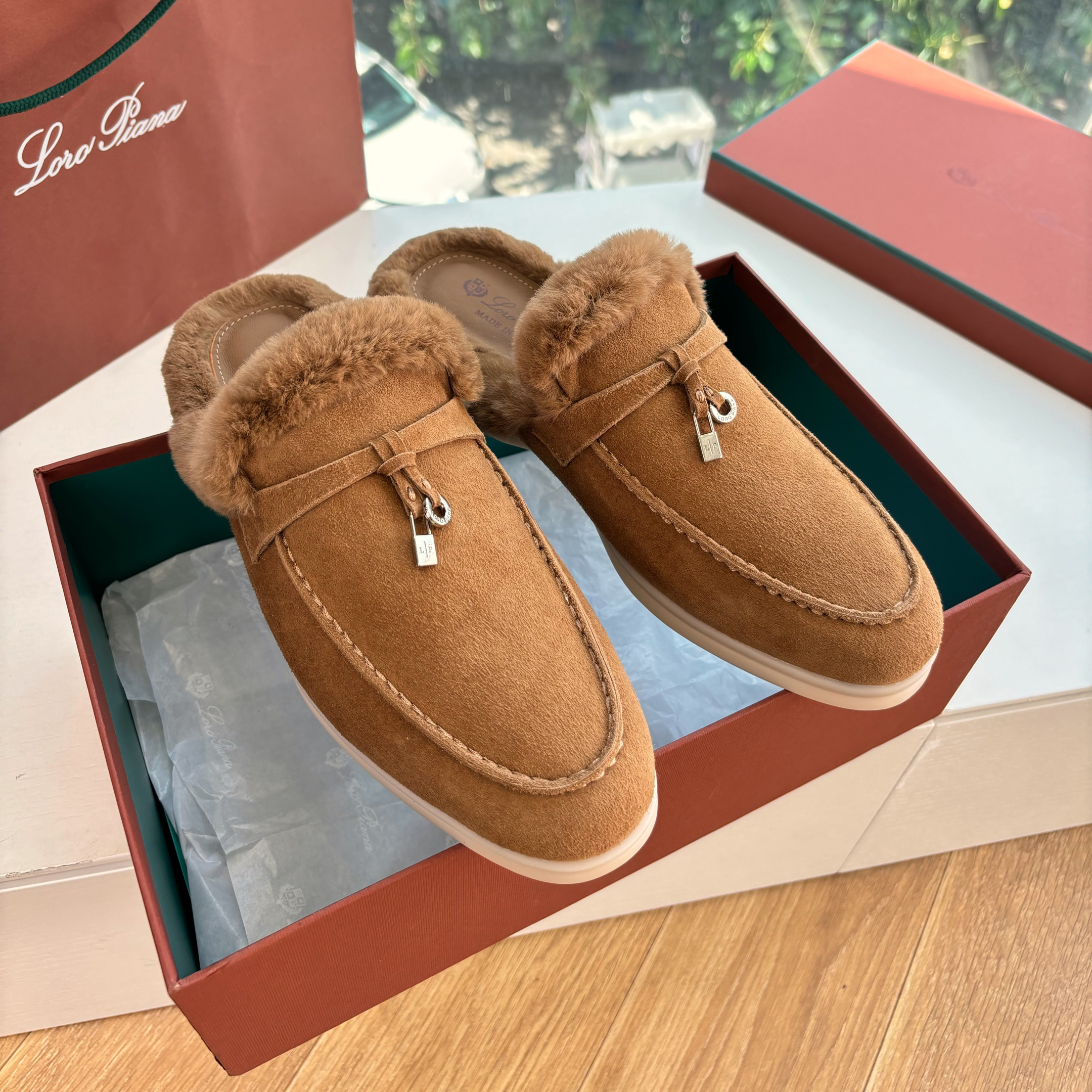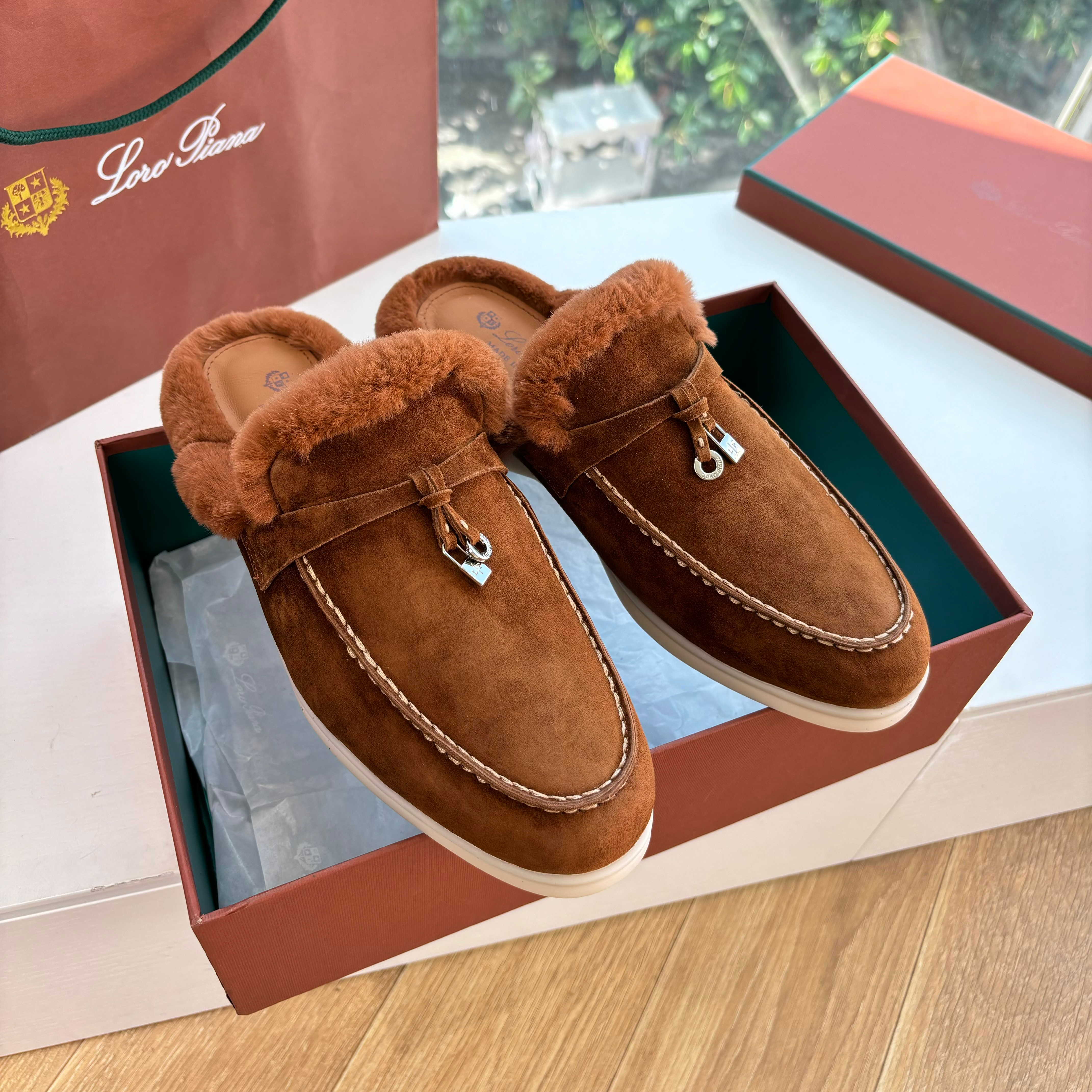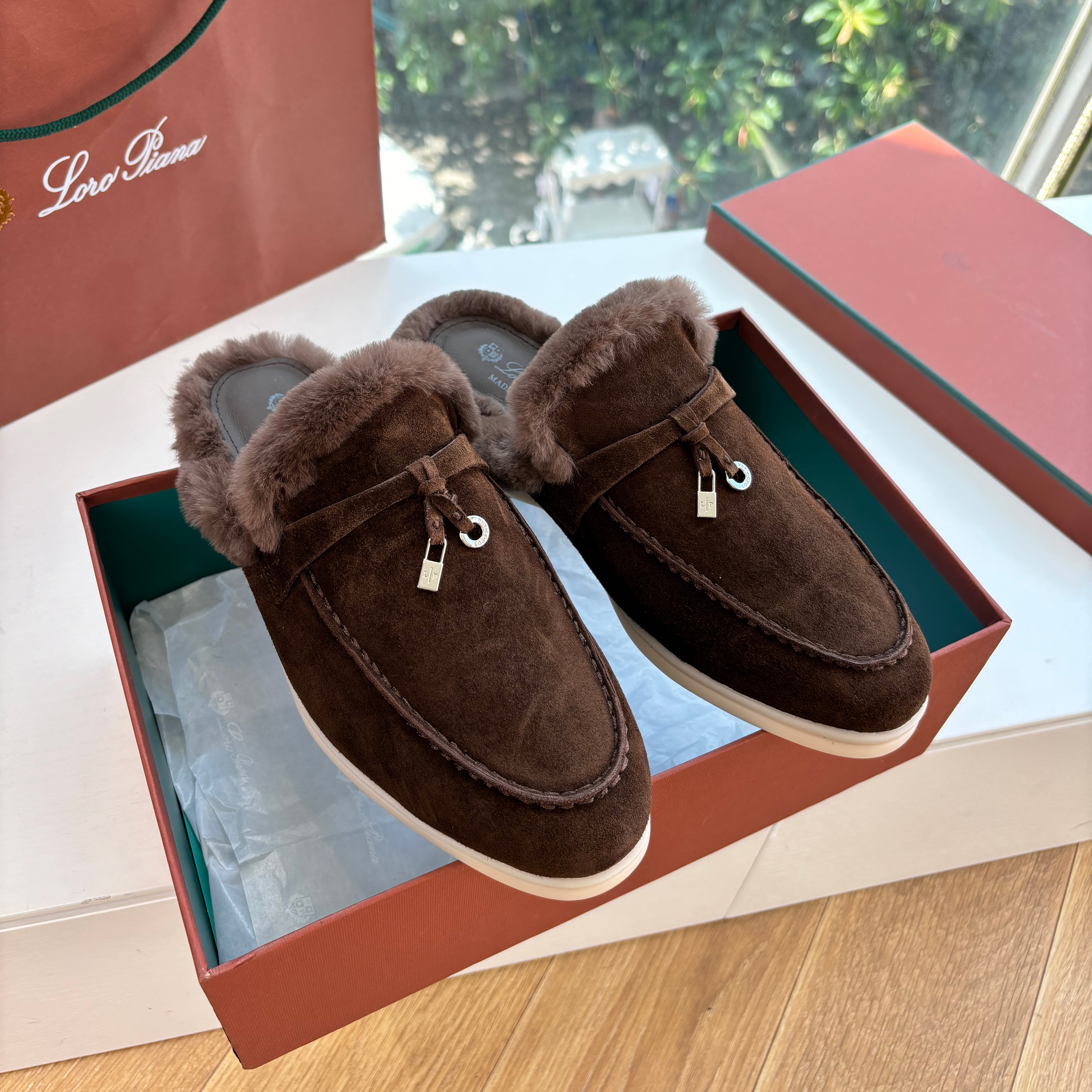 NIGO Loro Piana Women's Autumn/Winter Fashion Casual Suede Round Toe Flat Loafers With Exposed Heels Shoes #nigo78312