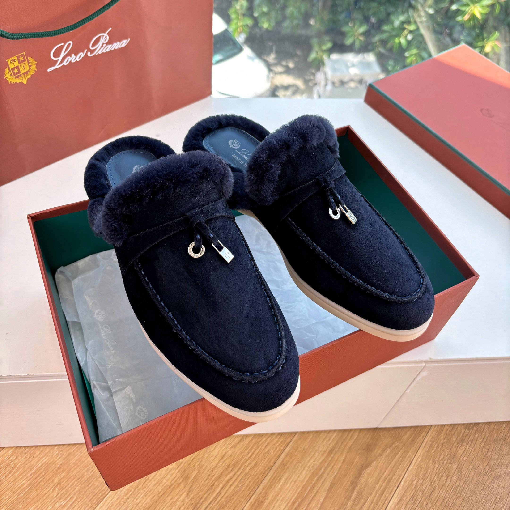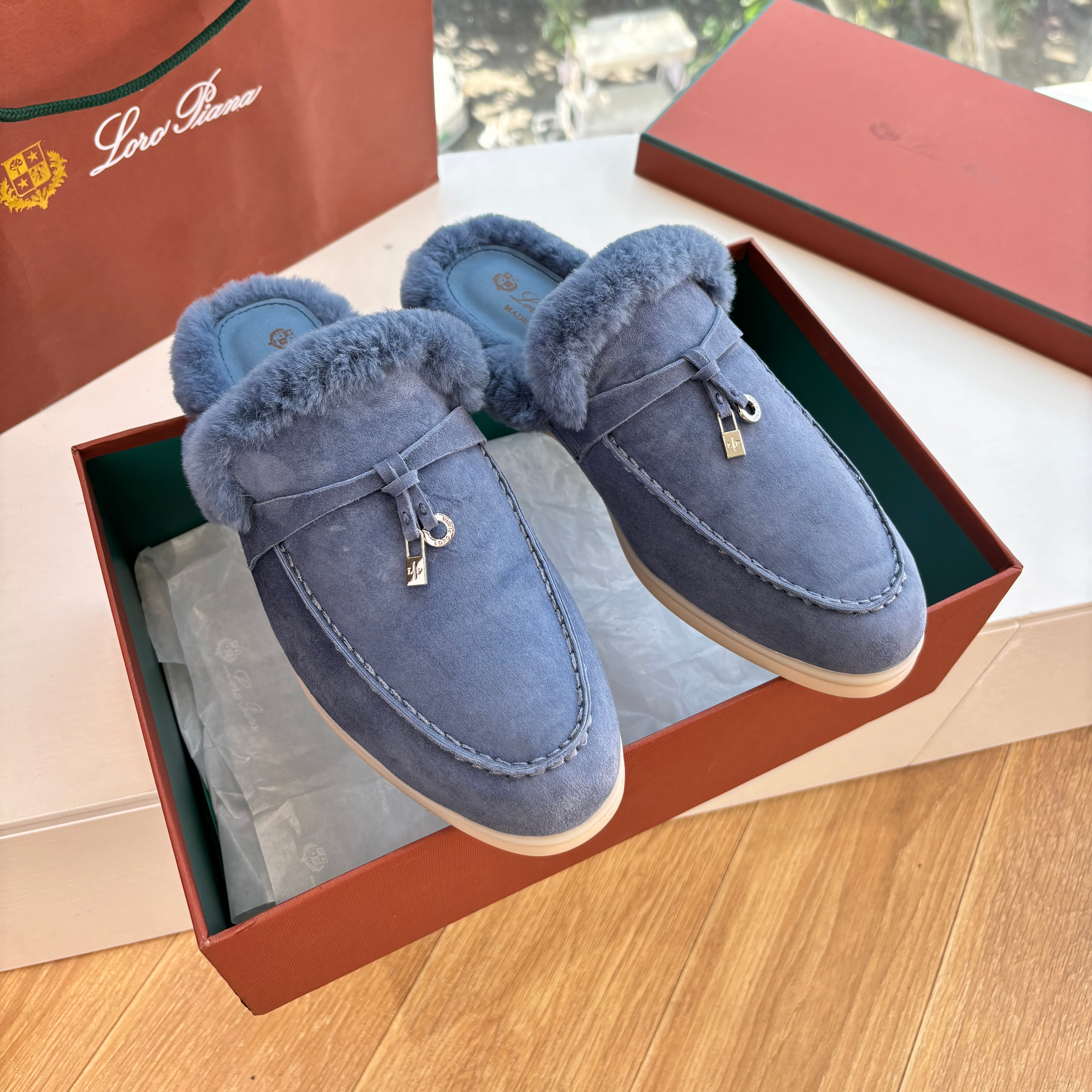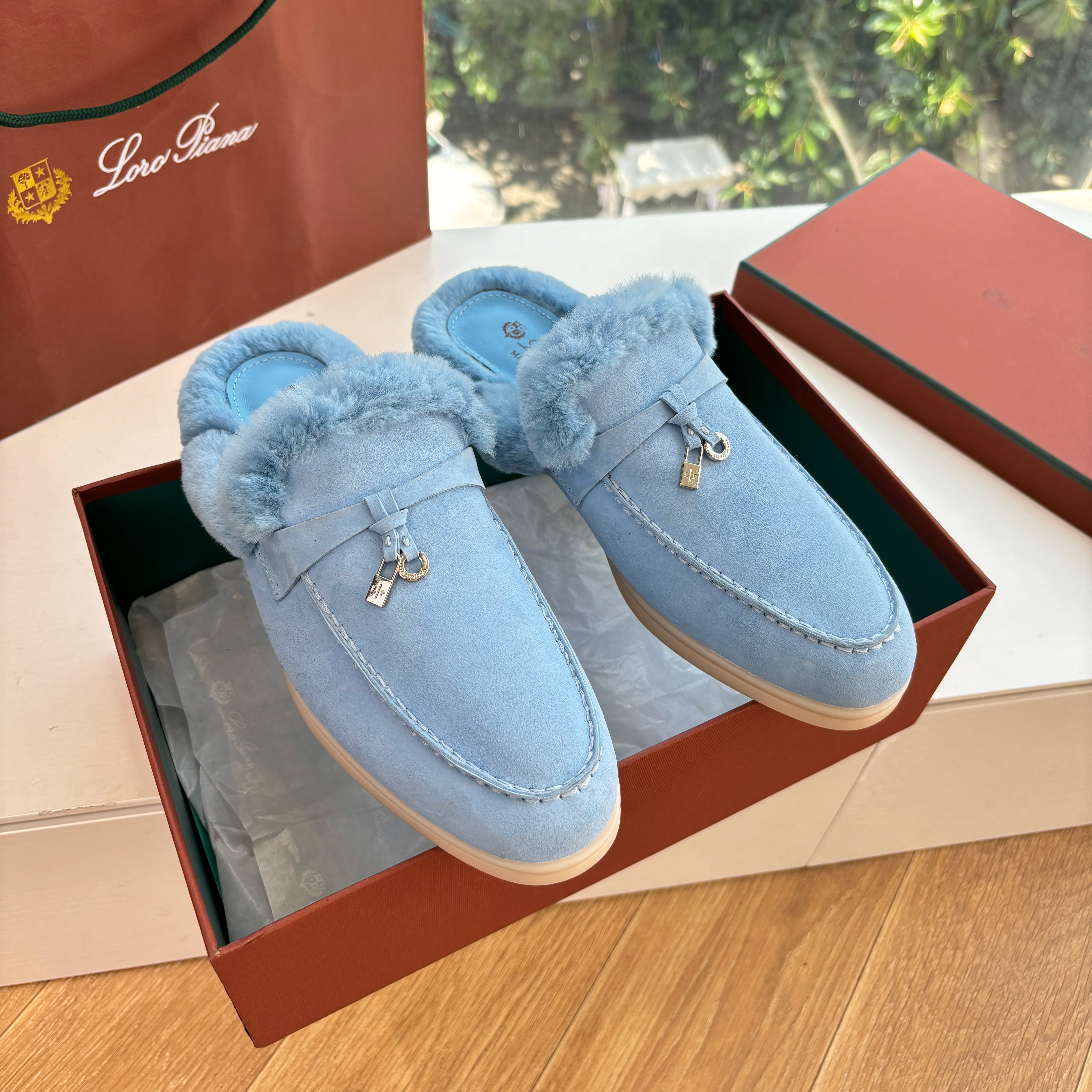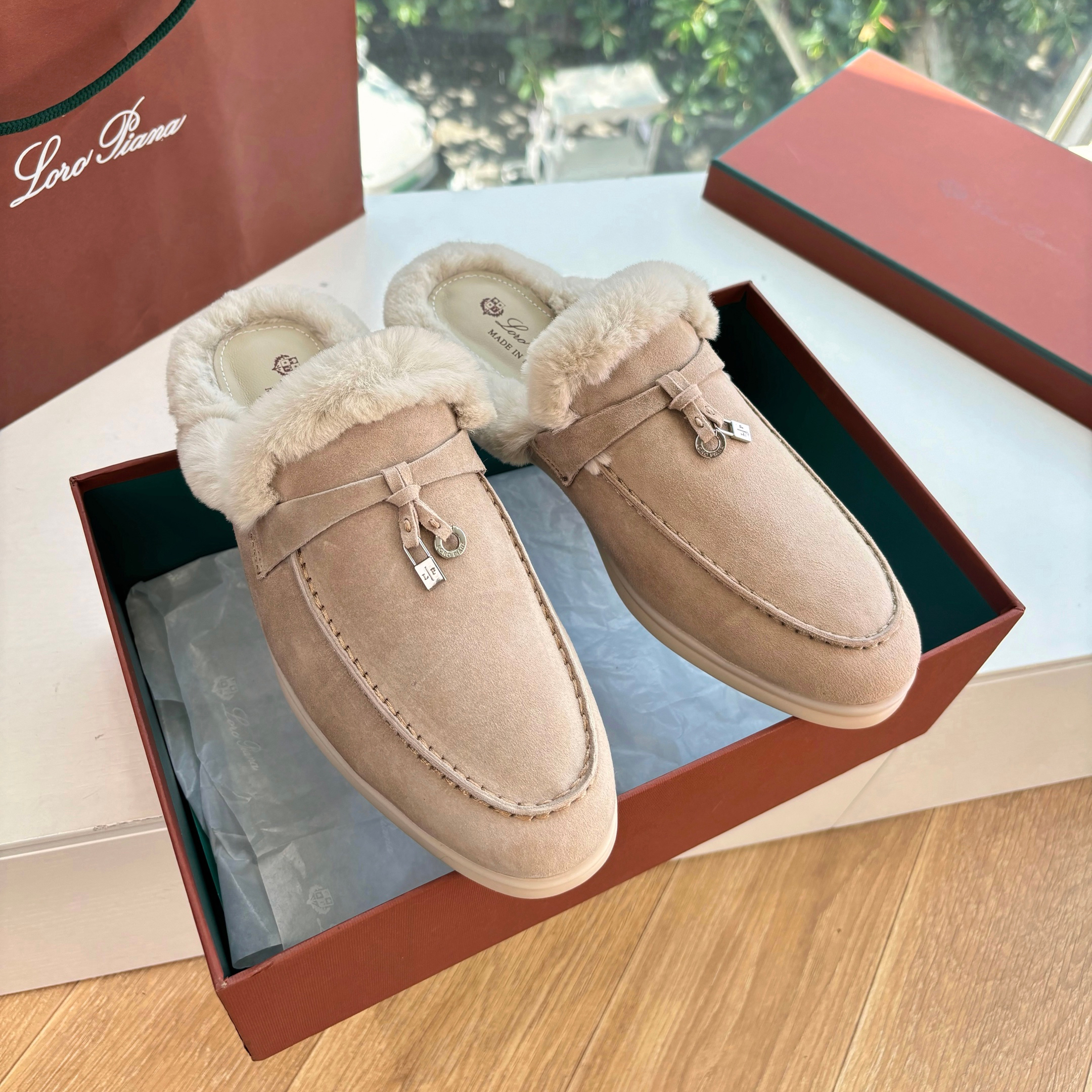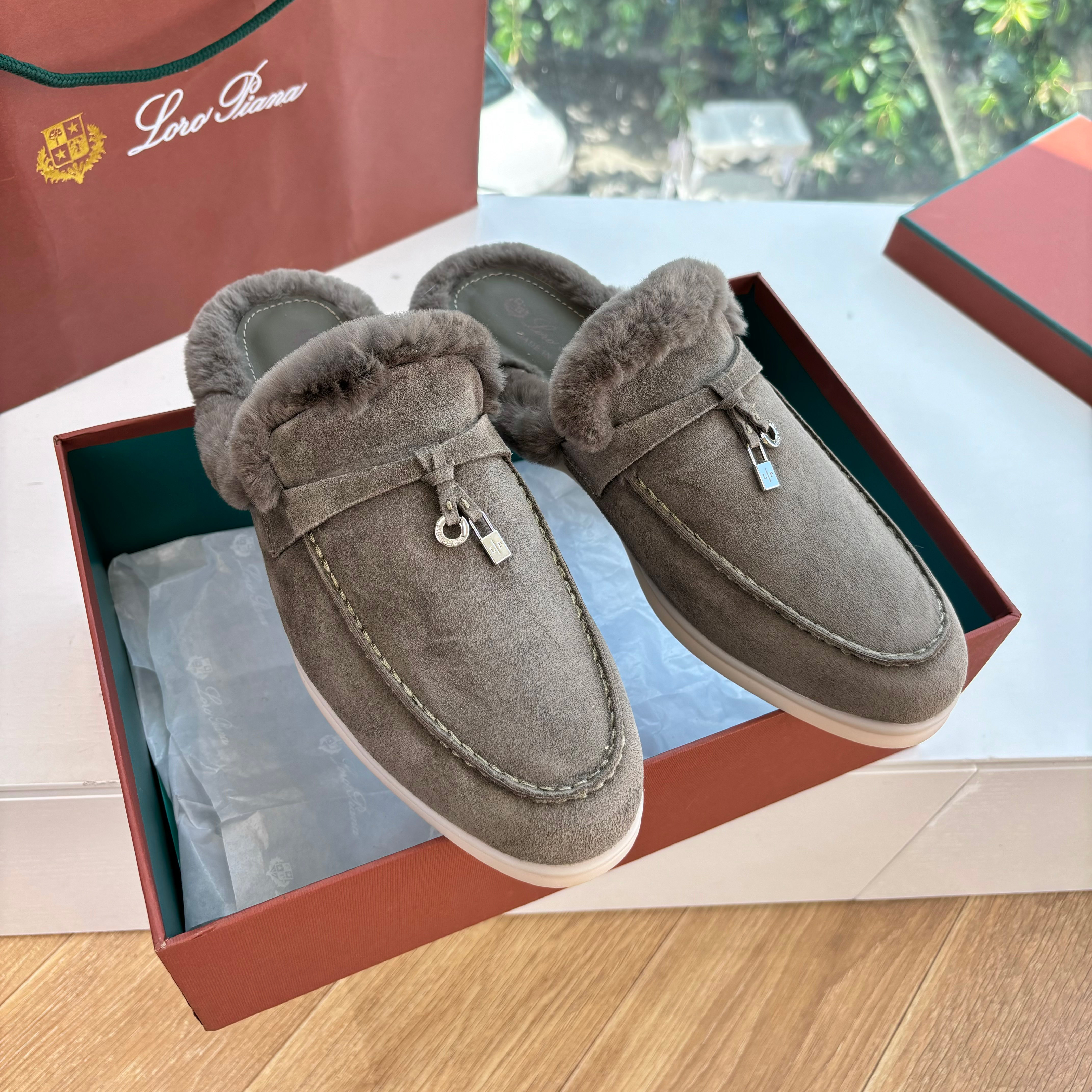 NIGO Loro Piana Women's Autumn/Winter Fashion Casual Suede Round Toe Flat Loafers With Exposed Heels Shoes #nigo78312