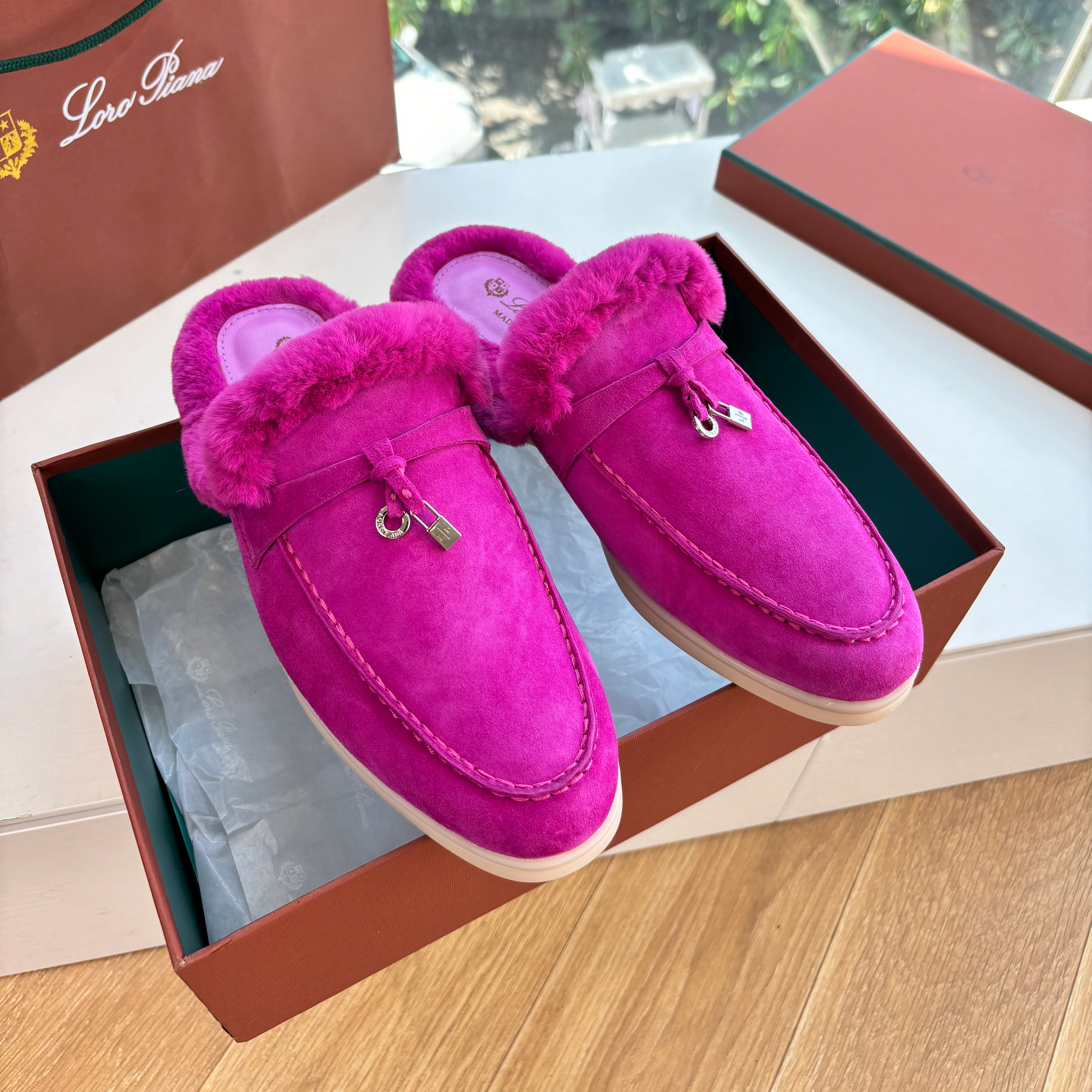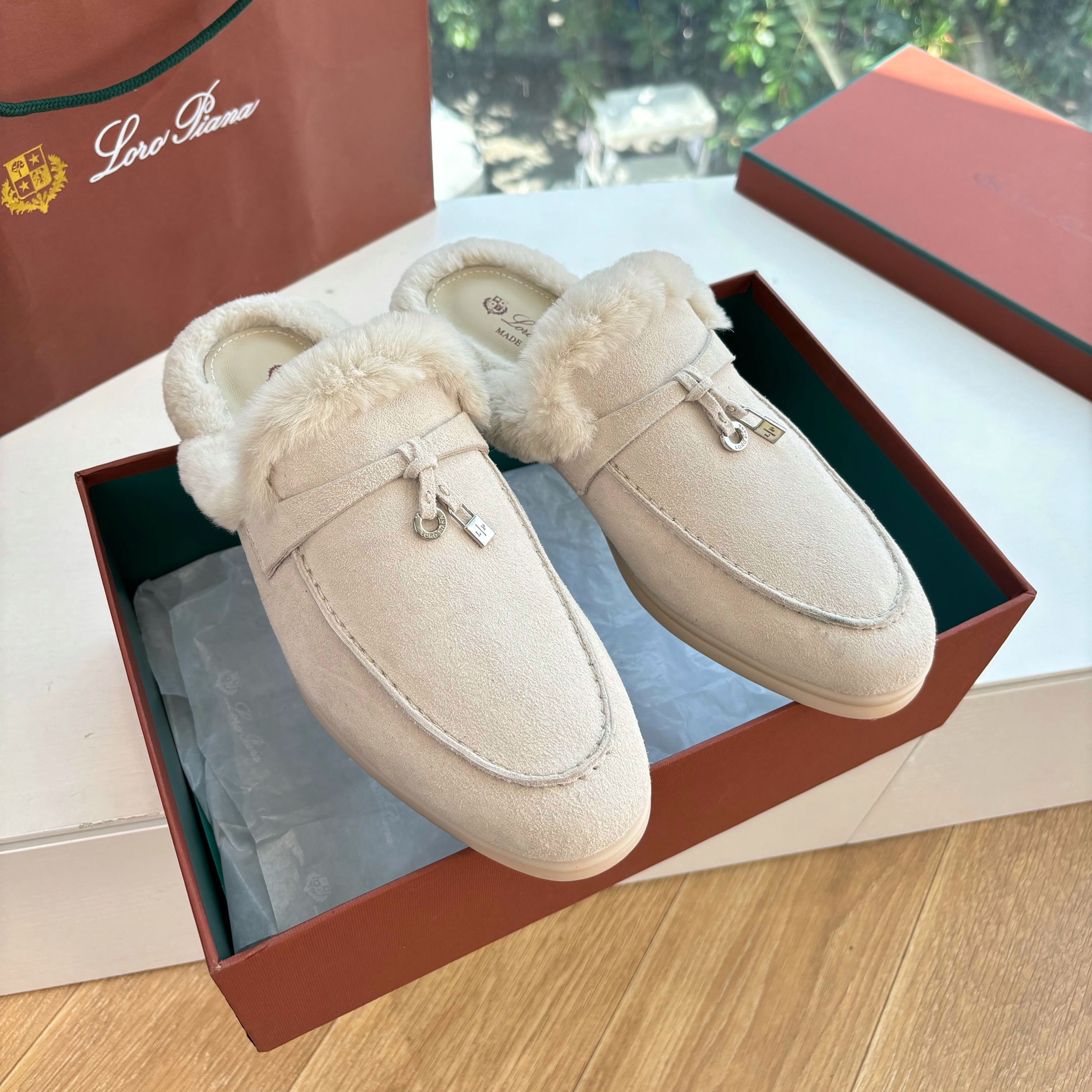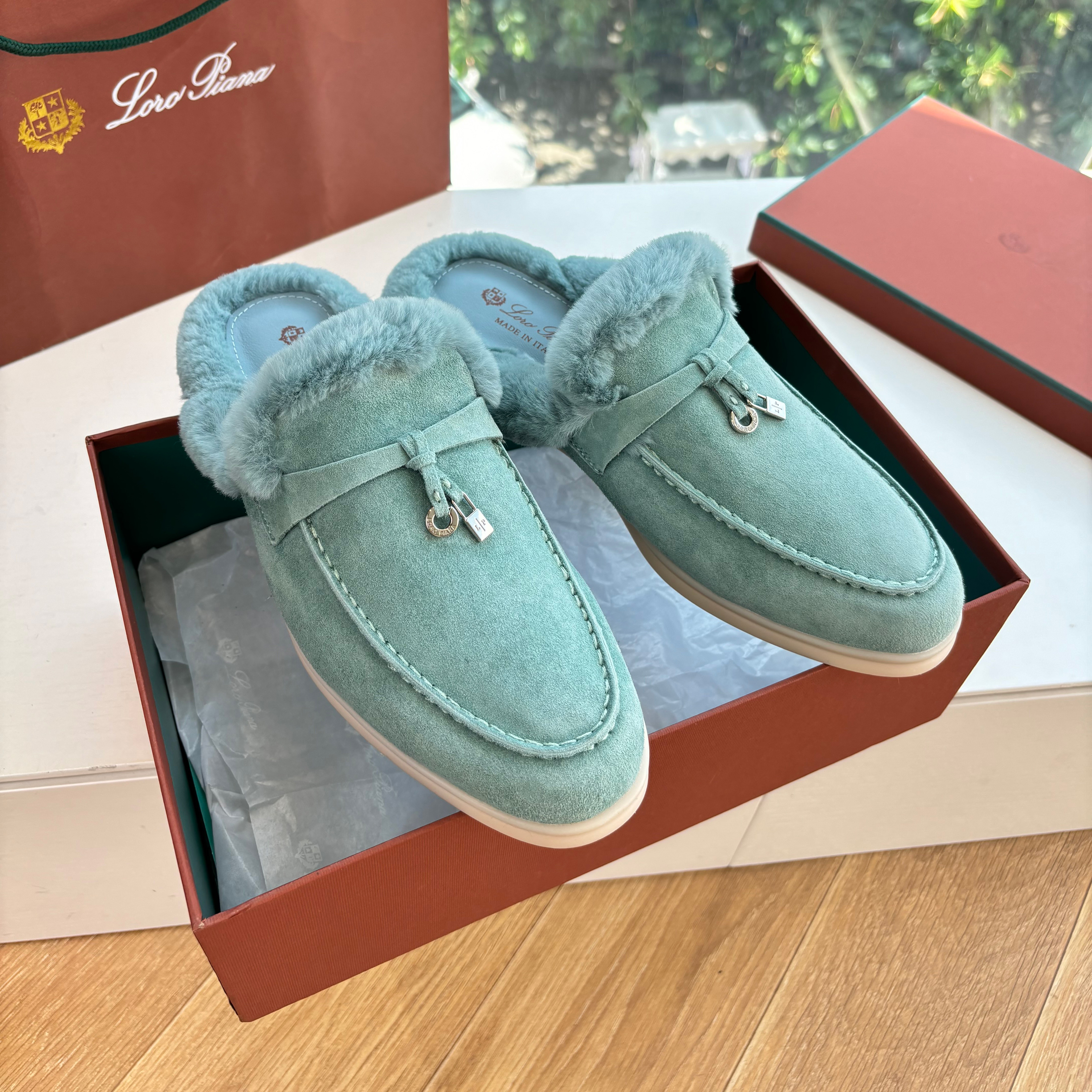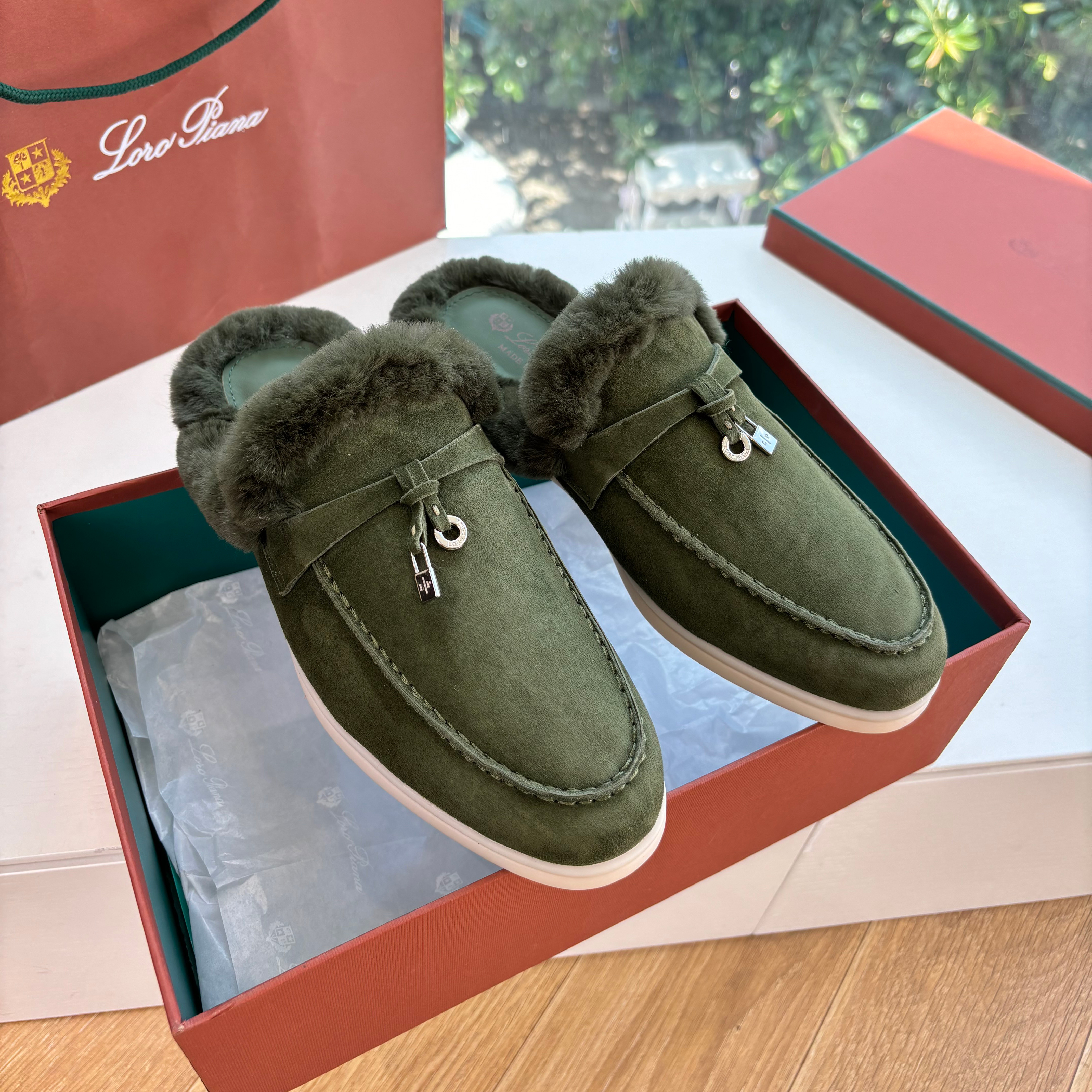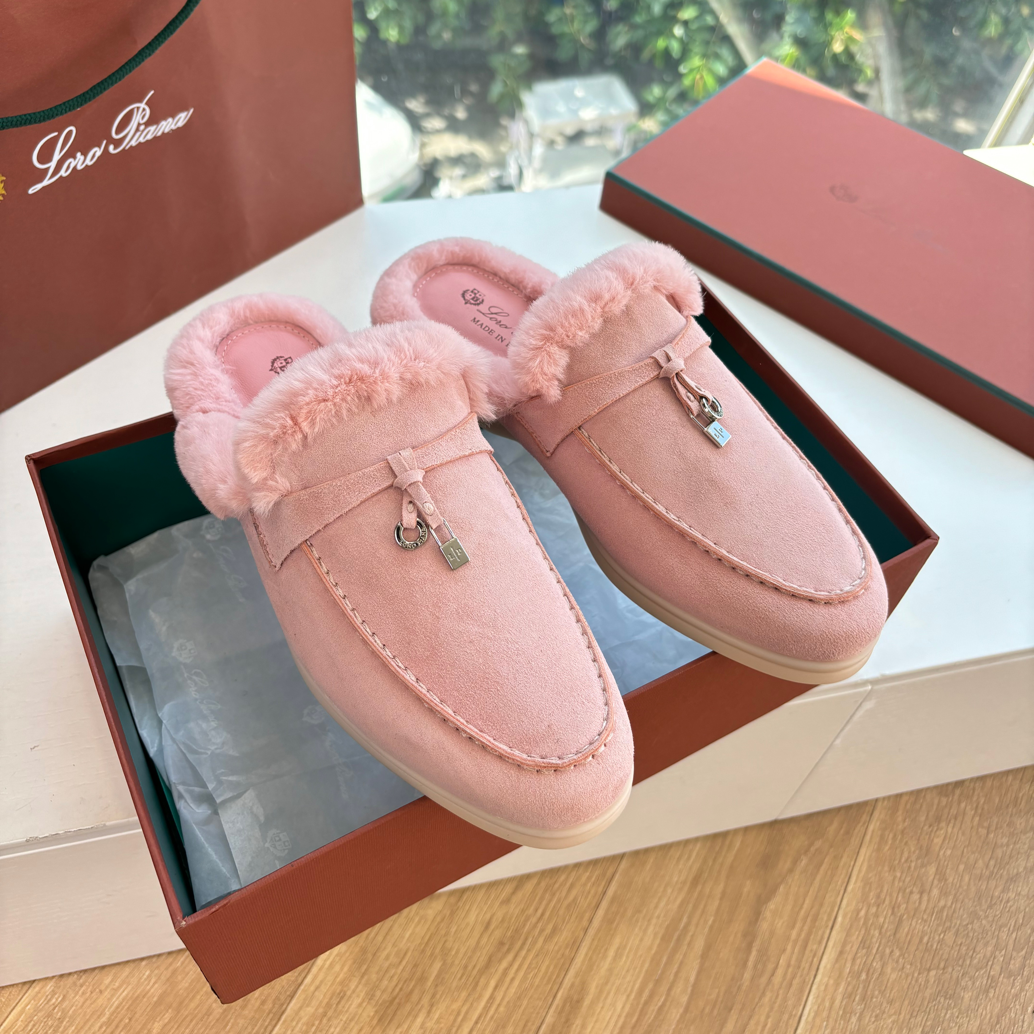 NIGO Loro Piana Women's Autumn/Winter Fashion Casual Suede Round Toe Flat Loafers With Exposed Heels Shoes #nigo78312