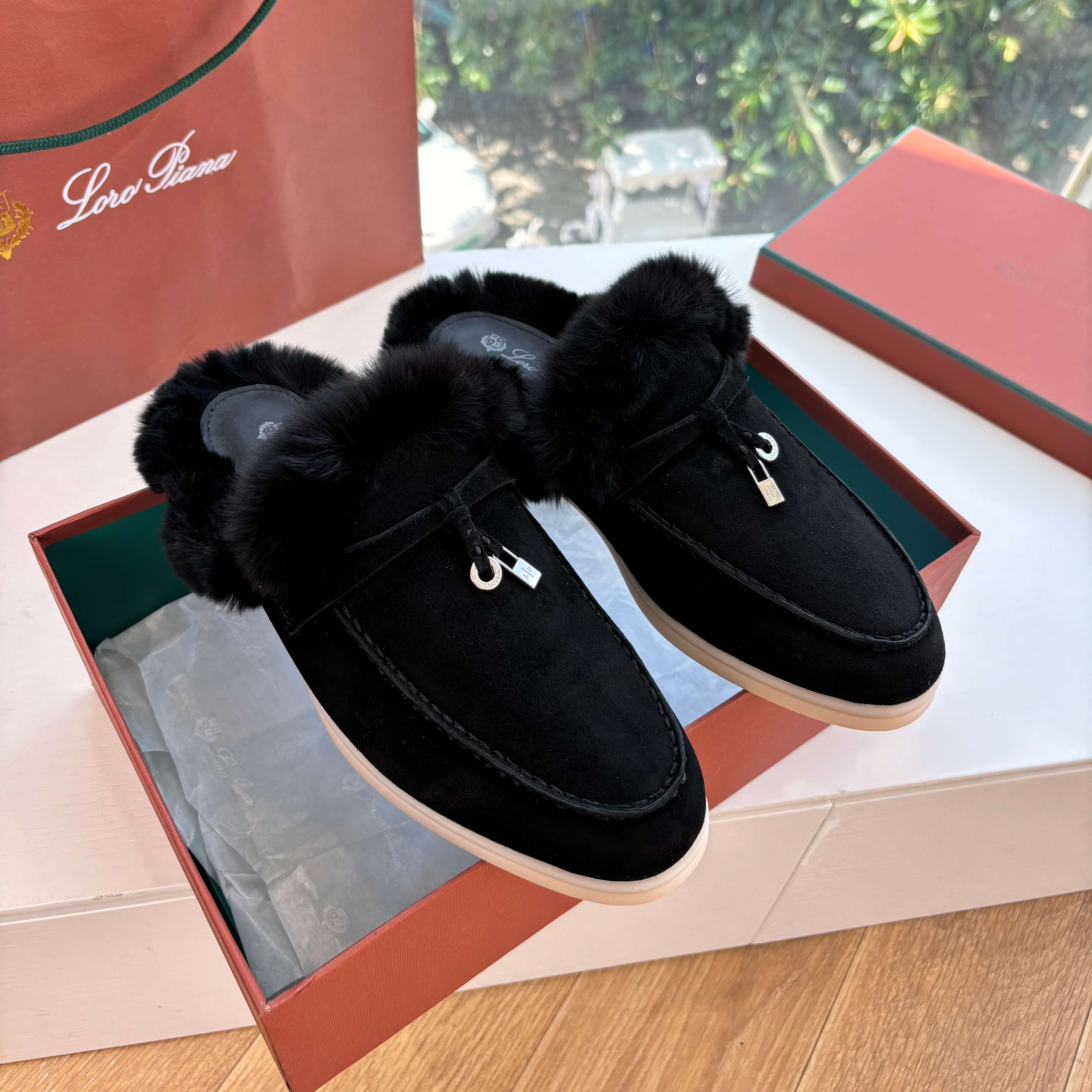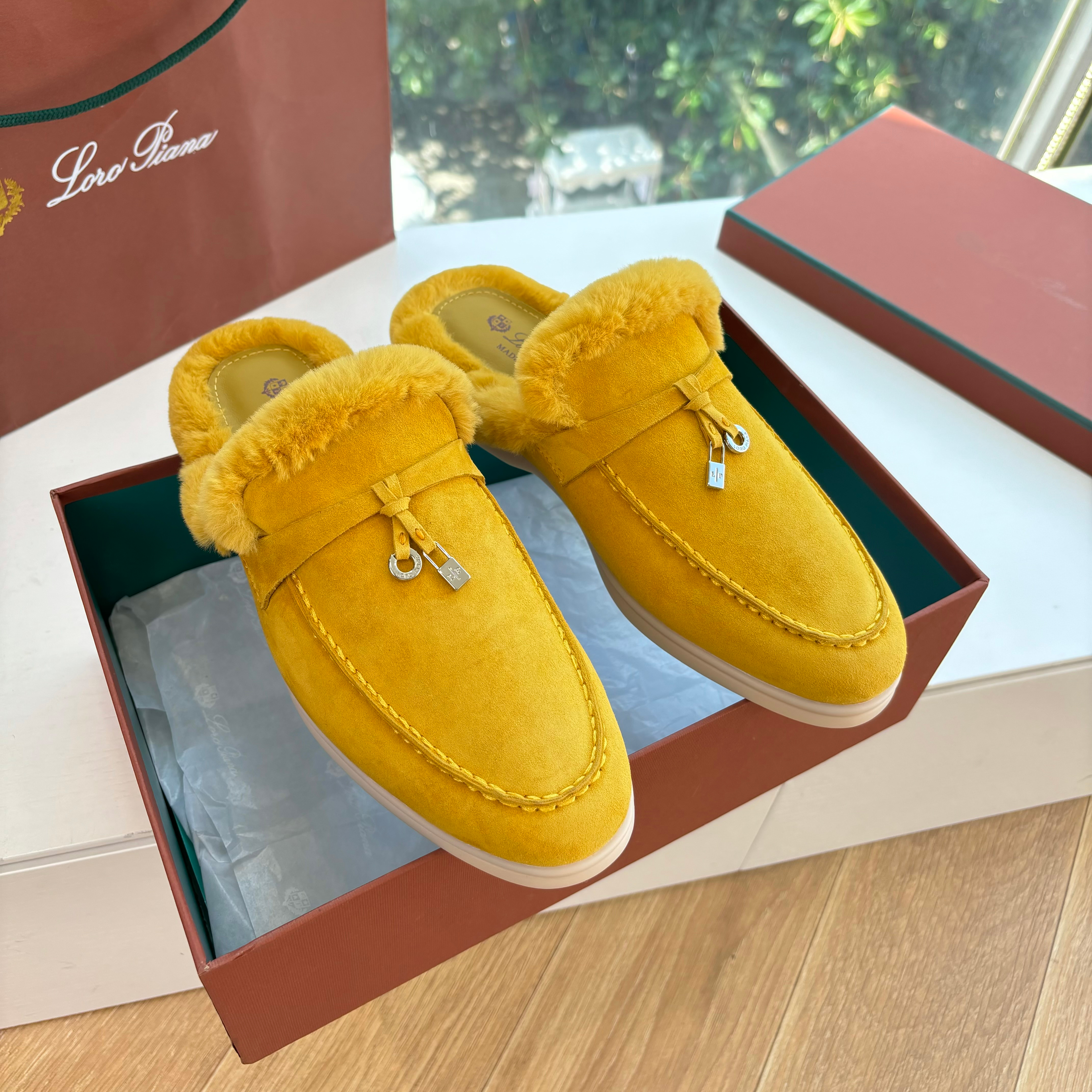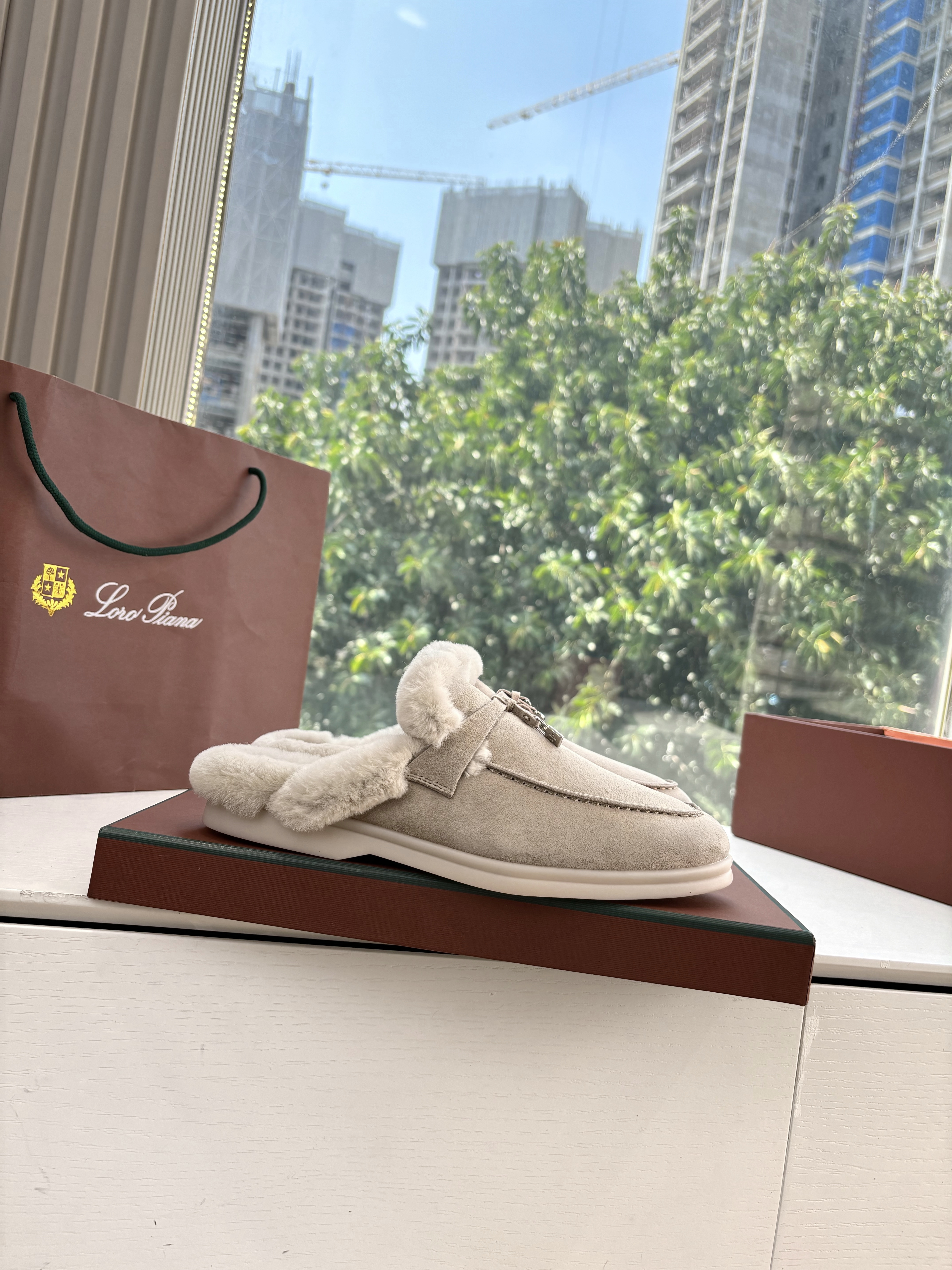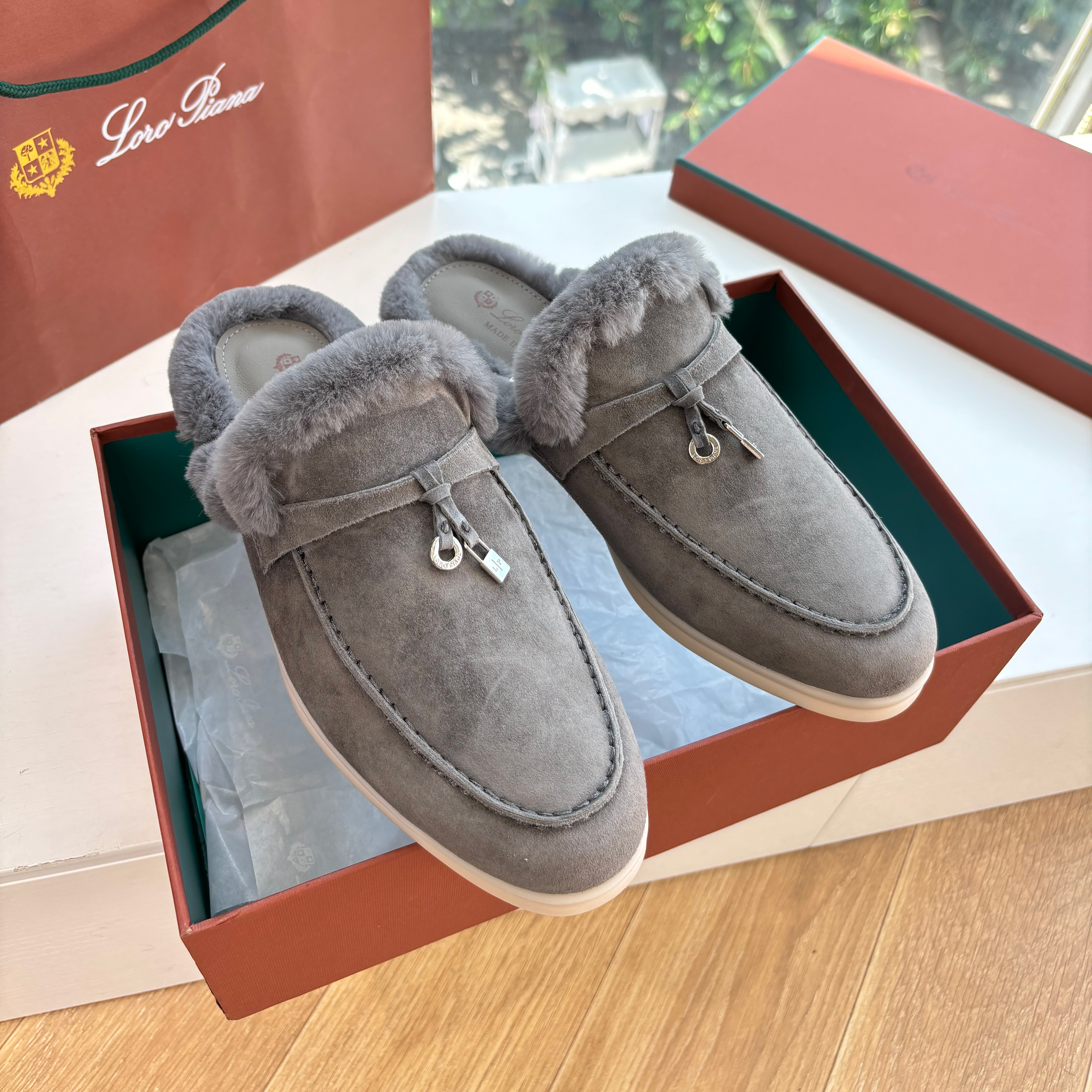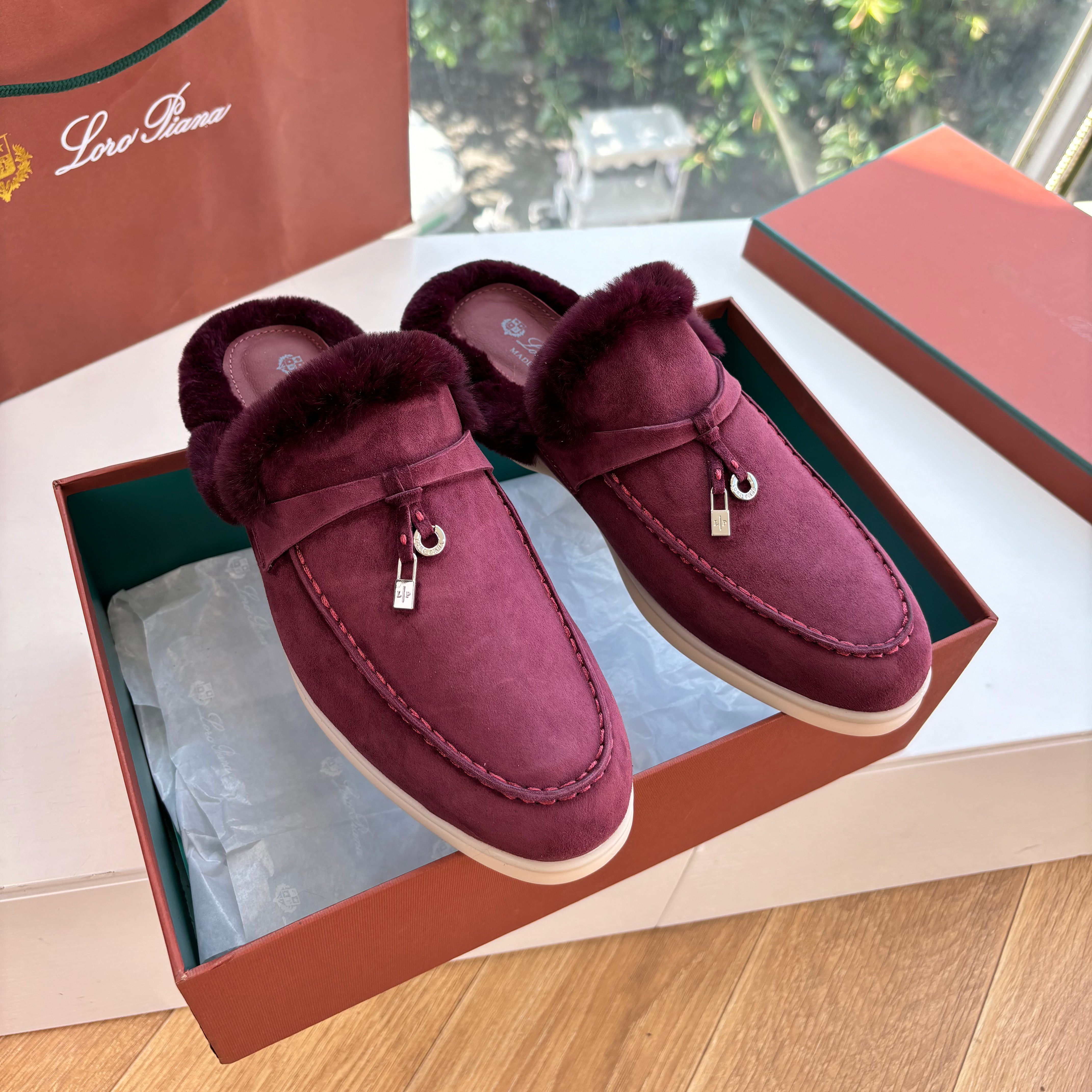 NIGO Loro Piana Women's Autumn/Winter Fashion Casual Suede Round Toe Flat Loafers With Exposed Heels Shoes #nigo78312