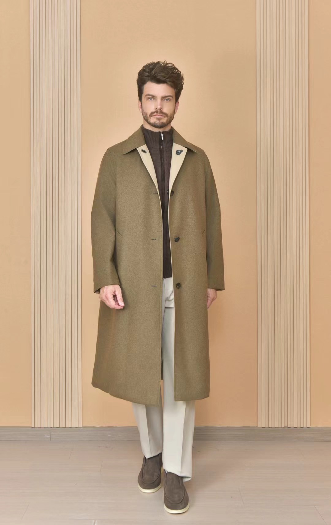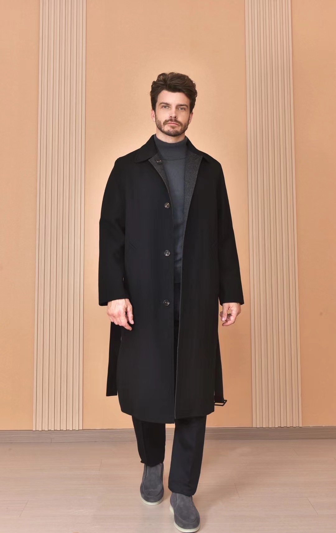 NIGO Loro Piana Men's Reversible Double-Faced Coat with Belt, Single-Button Lapel, Long Fit Jacket Ngvp #nigo2336