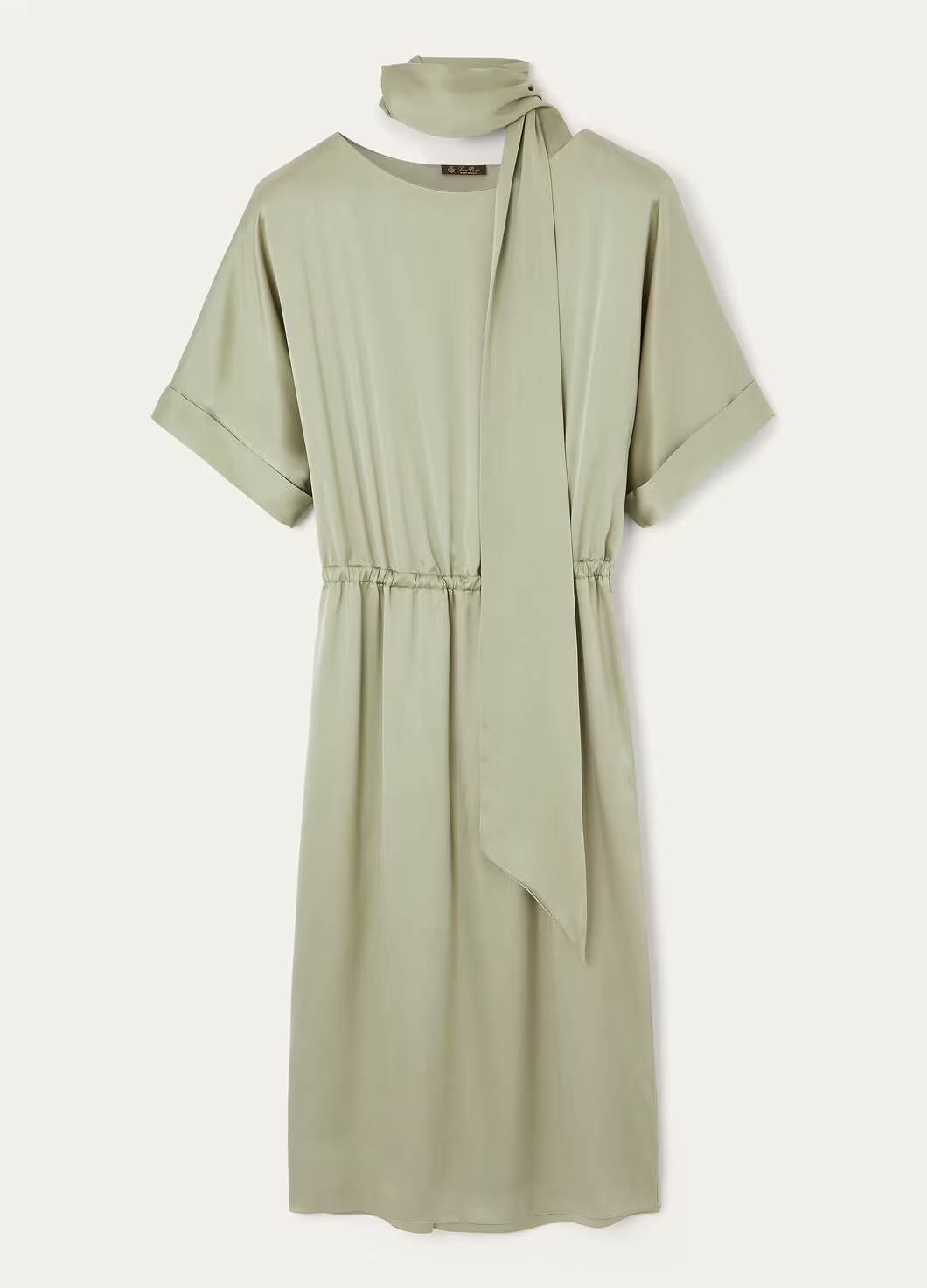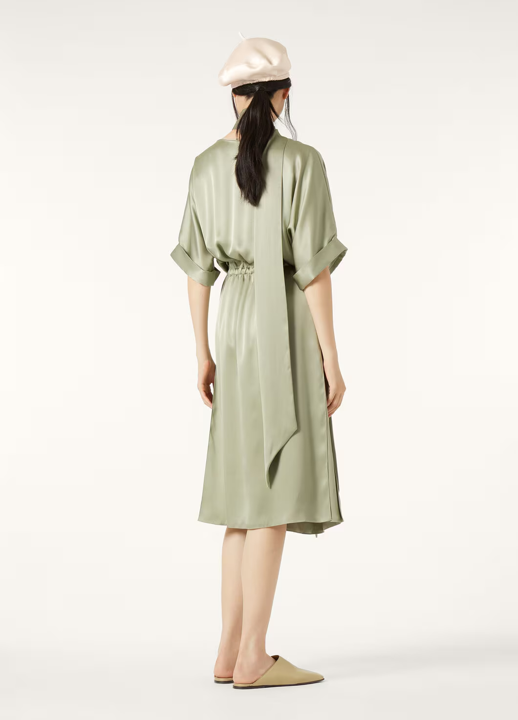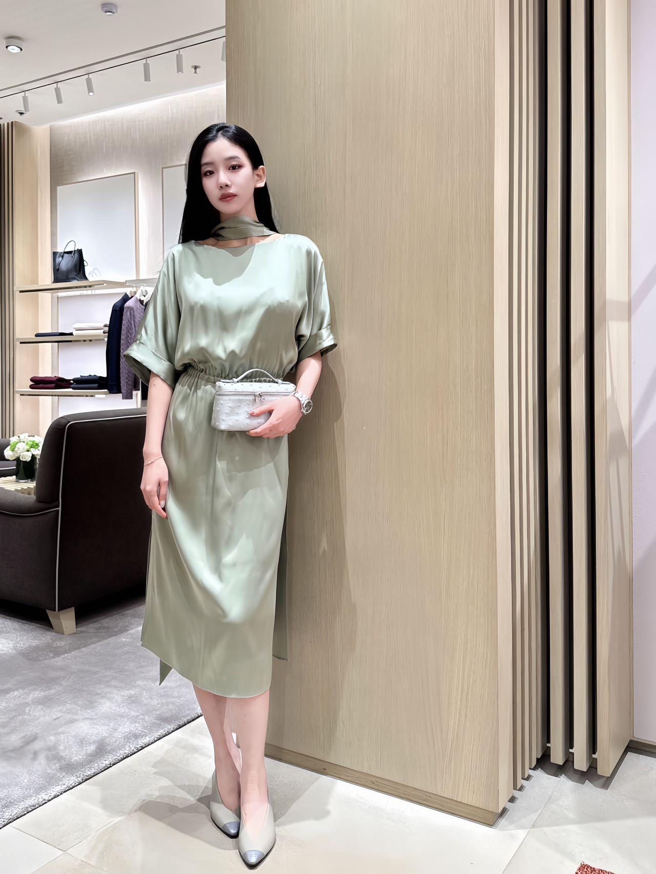 NIGO Loro Piana Women's Summer Solid Color Satin Short Sleeve Silk Elastic Waist Caren Dresses Ngvp #nigo1829