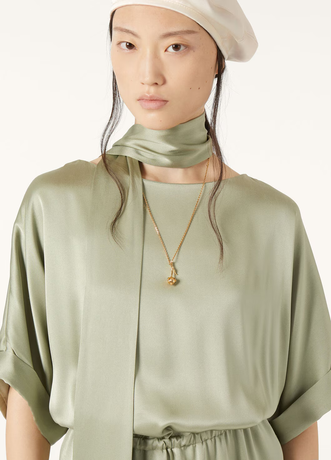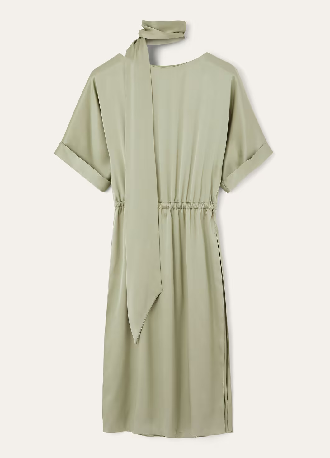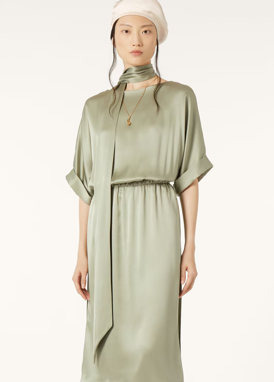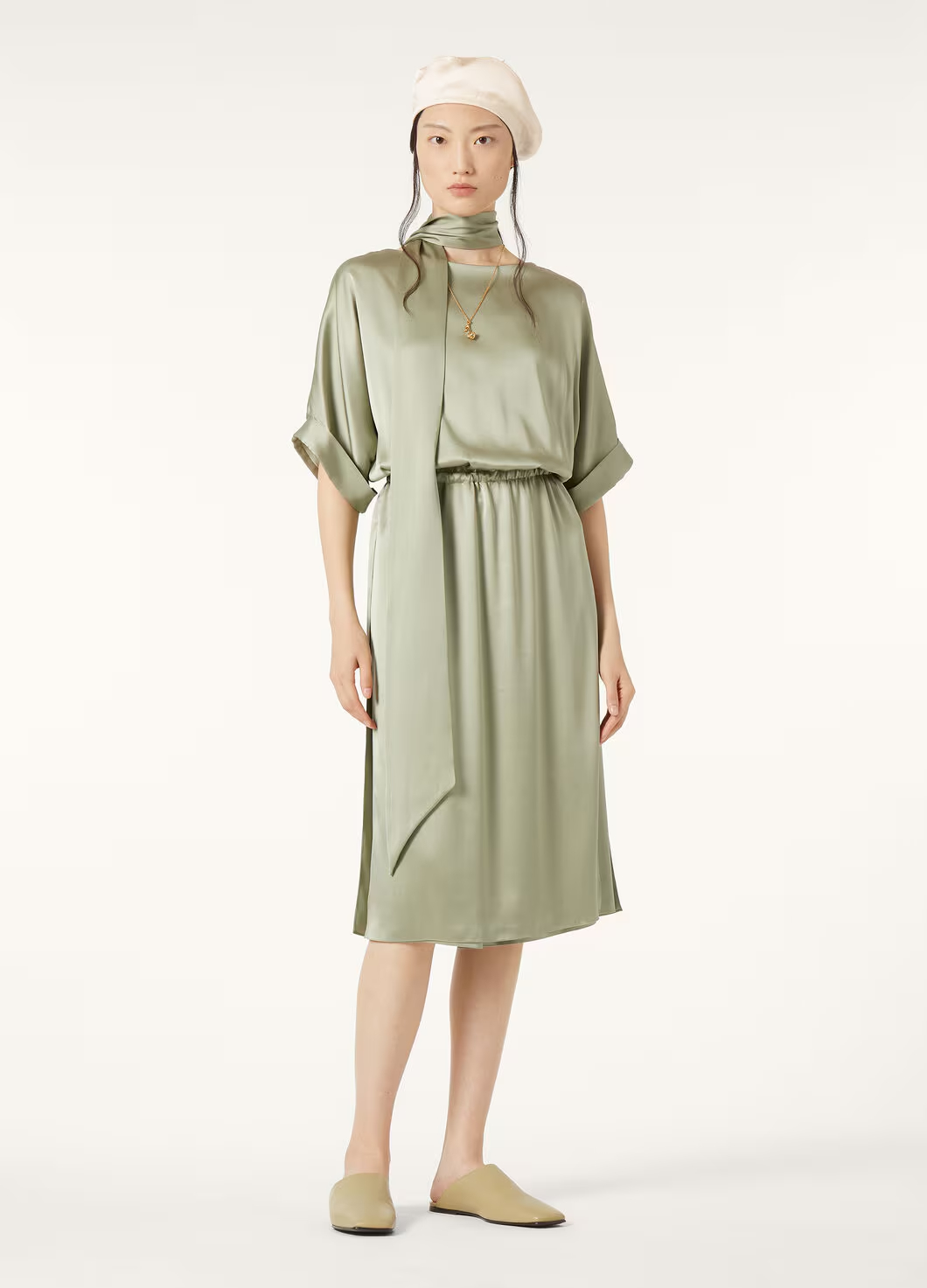 NIGO Loro Piana Women's Summer Solid Color Satin Short Sleeve Silk Elastic Waist Caren Dresses Ngvp #nigo1829