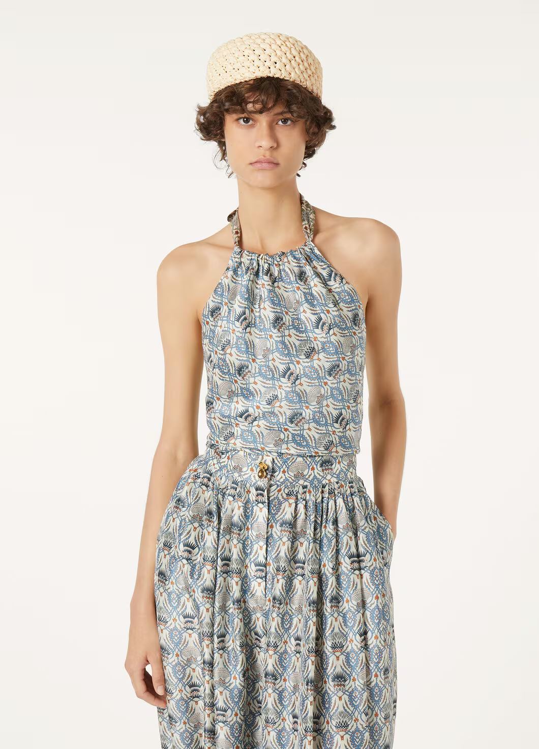 NIGO Loro Piana Women's Annet Top Summer Printed Sleeveless Lace Up Hanging Neck Silk Camisole Ngvp #nigo1828