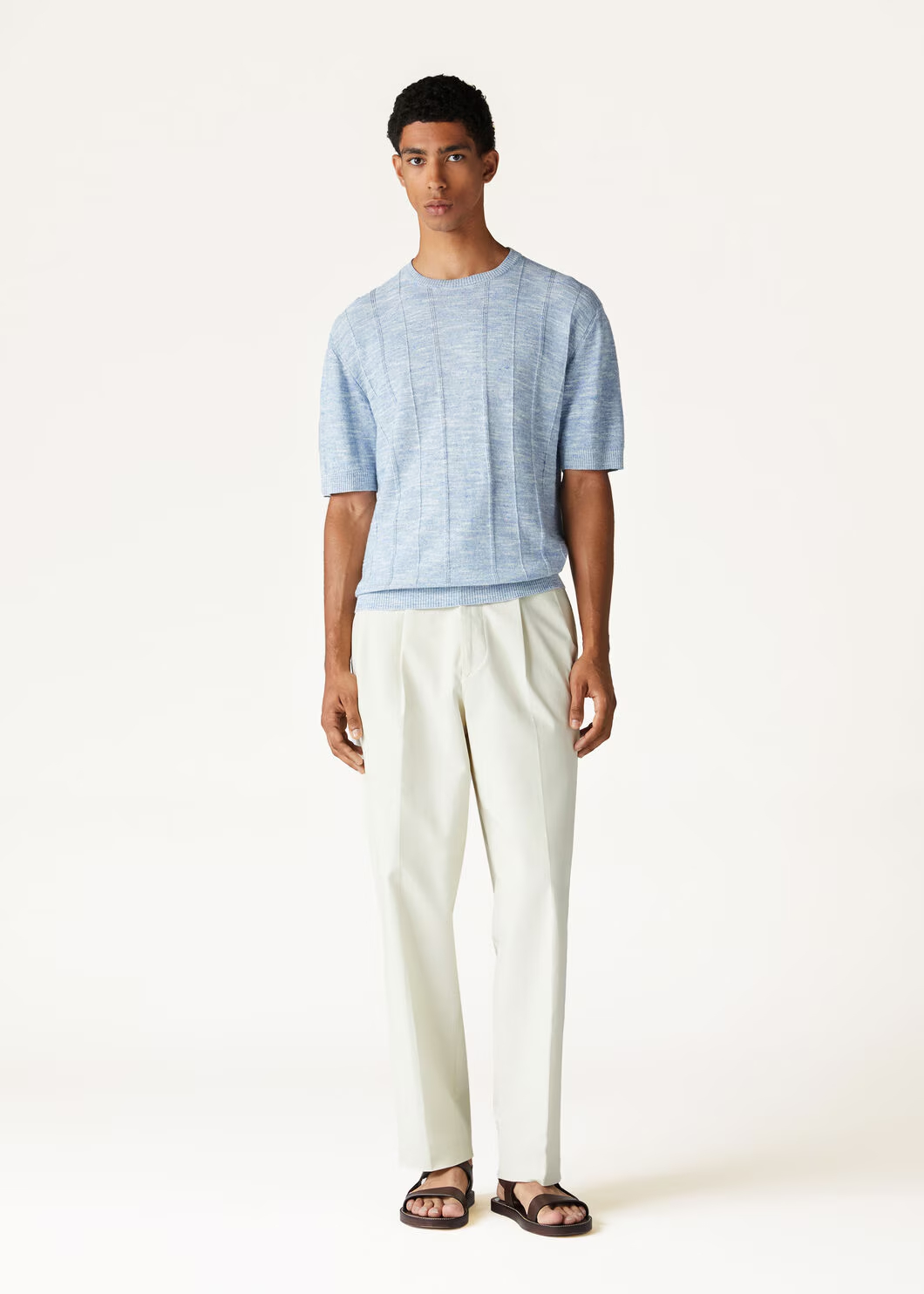 NIGO Loro Piana Men's Spring And Autumn Tori Round Neck Casual Linen Silk Knit Short Sleeve Top T-Shirt Ngvp #nigo1774