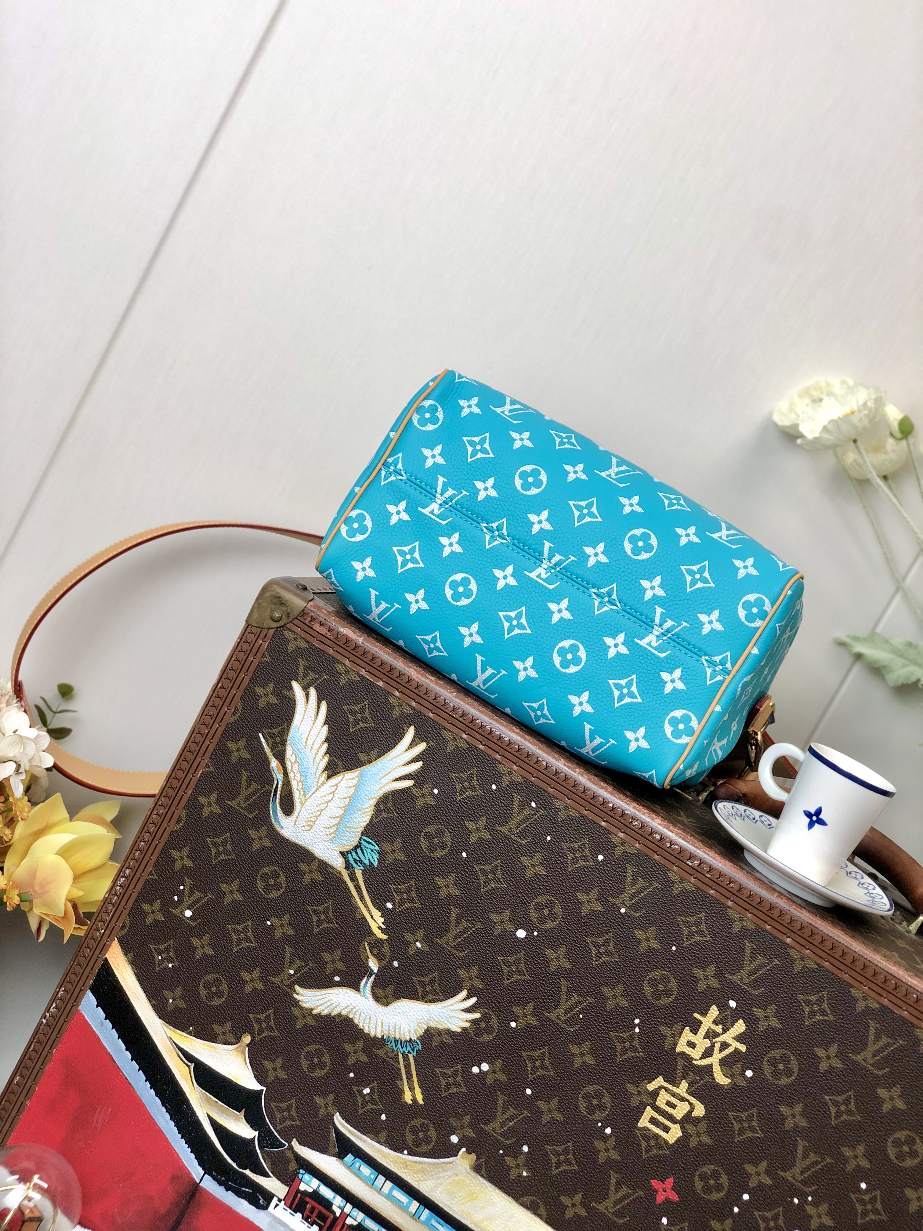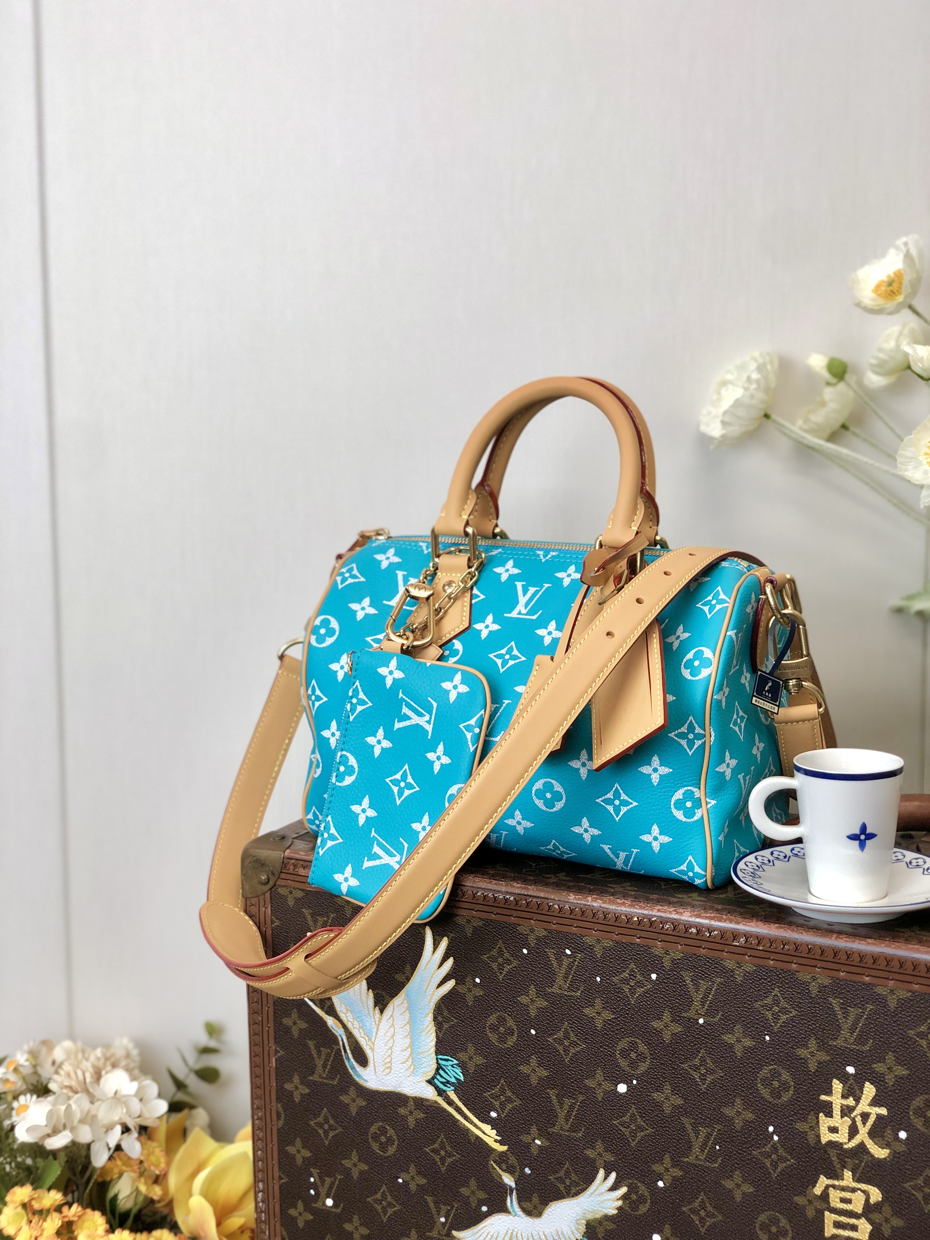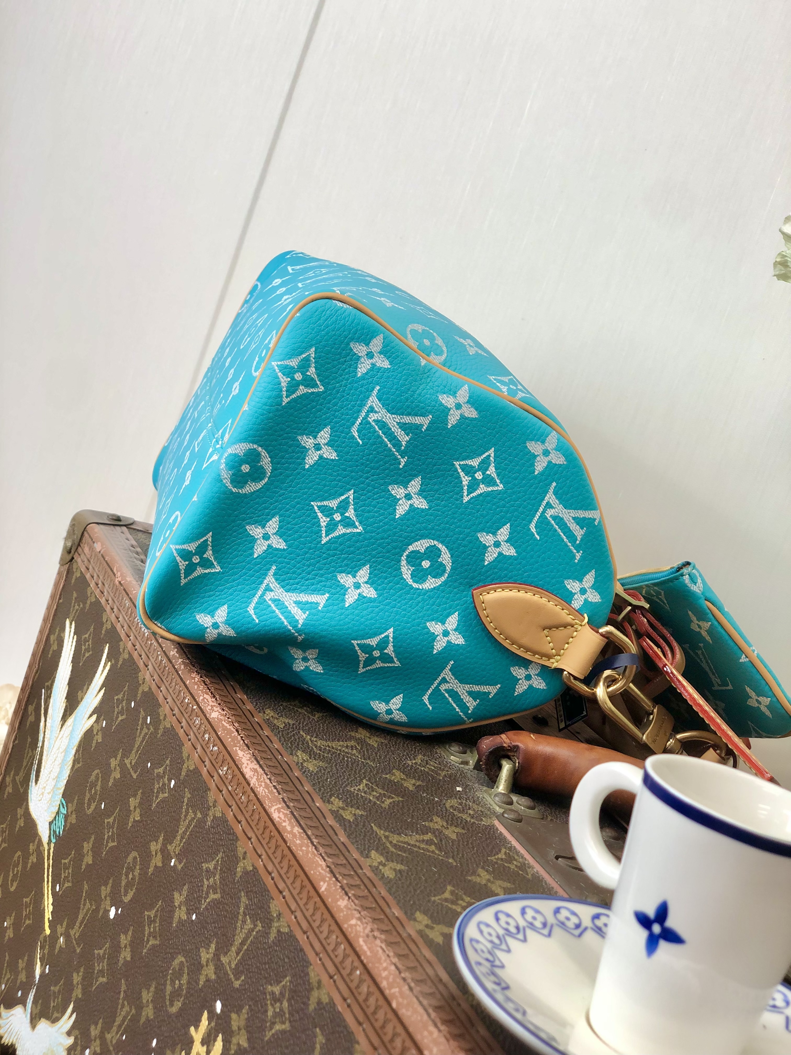 Copy NIGO Louis Vuitton Women's Fashion Classic Lake Blue Logo Zipper Closure Leather Shoulder Bag Handbags In Small Medium And Large Sizes Crossbody Bag Bags #nigo78664