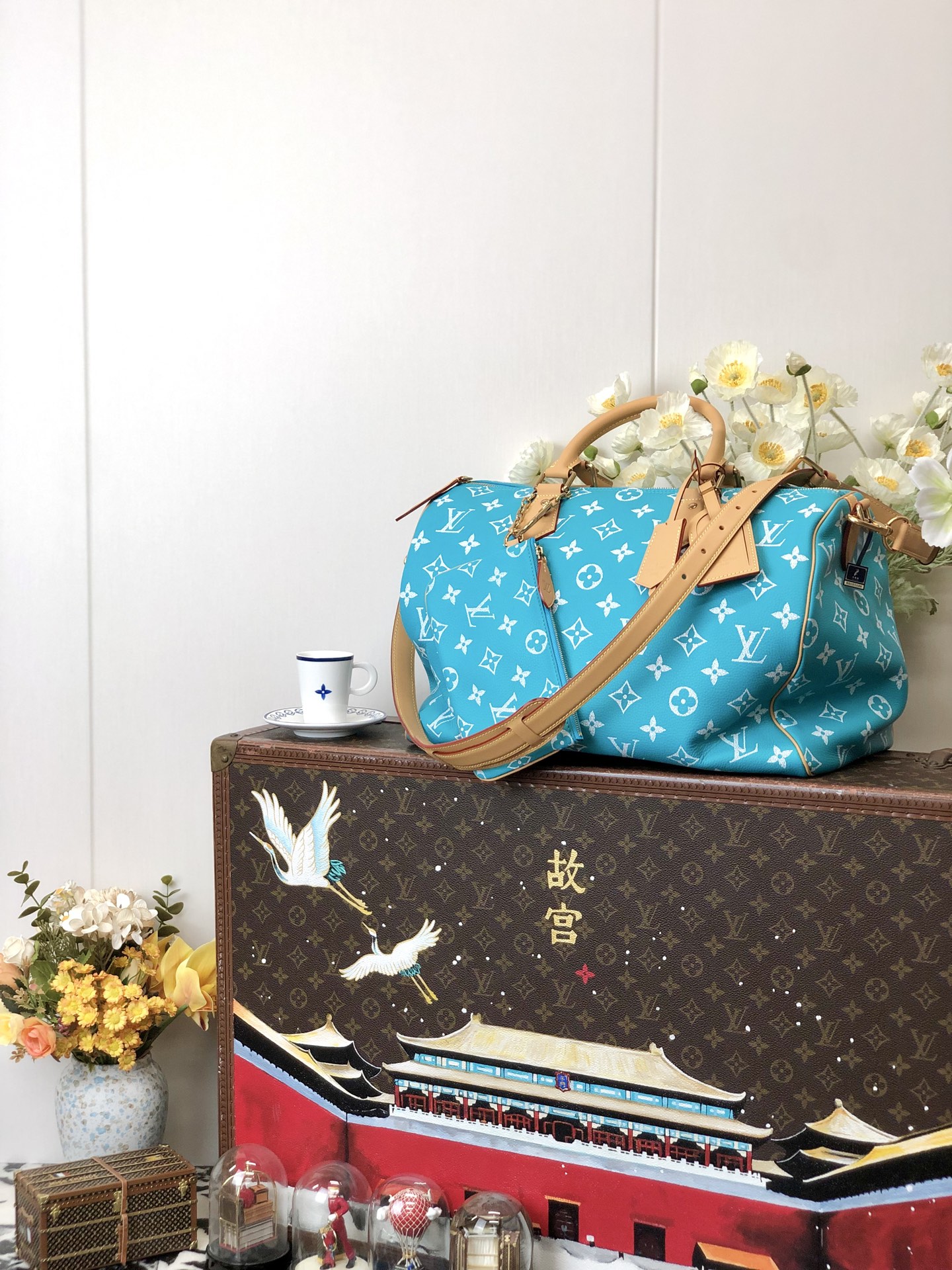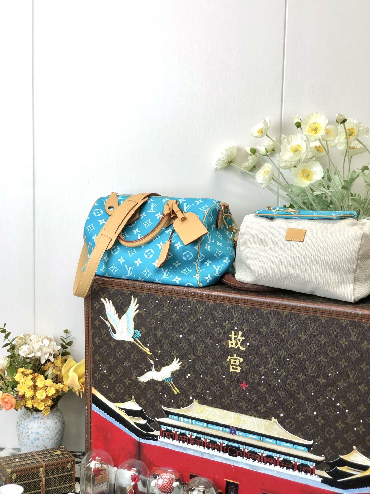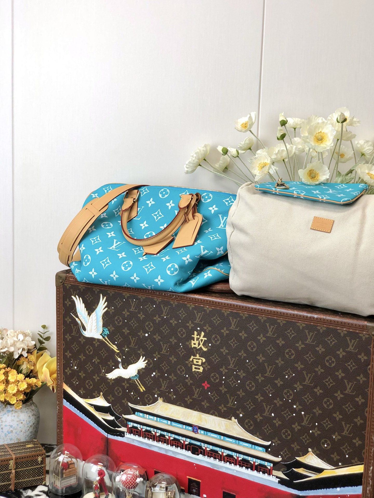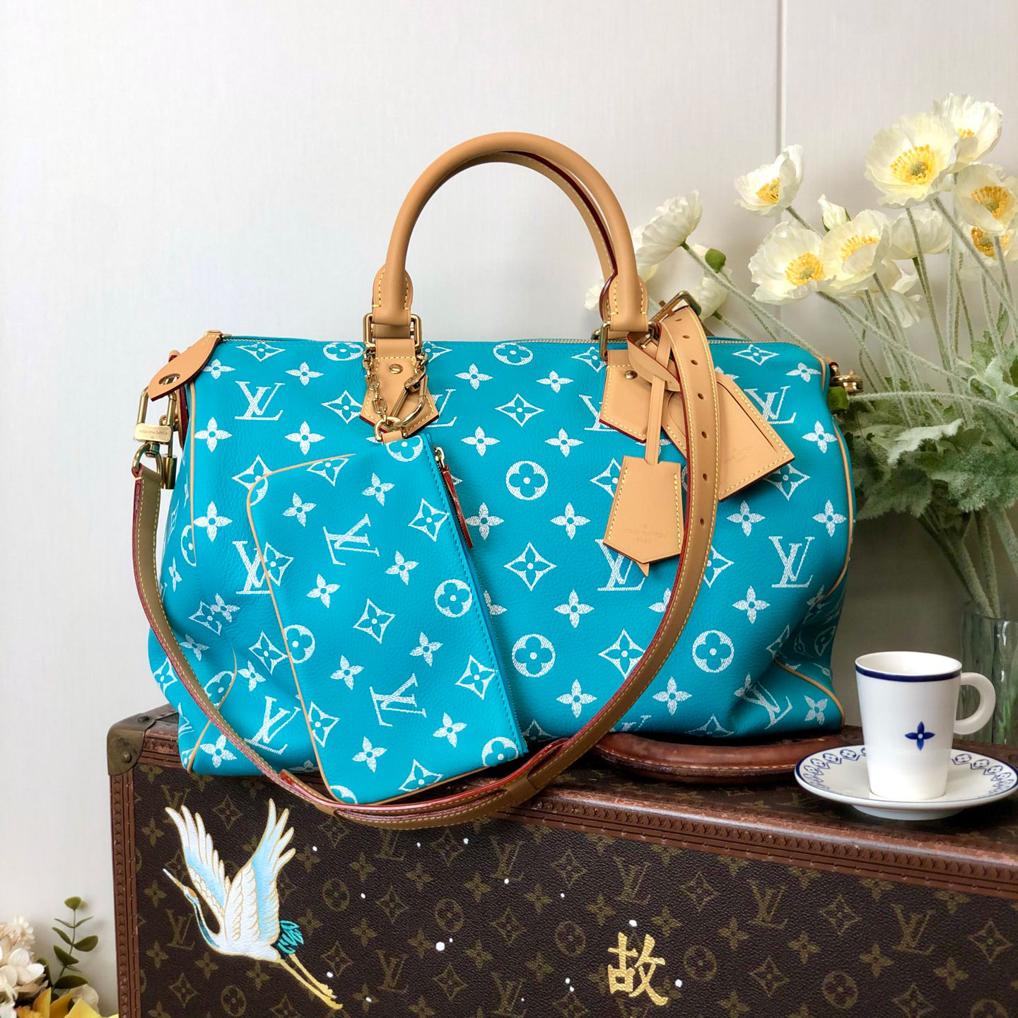 Copy NIGO Louis Vuitton Women's Fashion Classic Lake Blue Logo Zipper Closure Leather Shoulder Bag Handbags In Small Medium And Large Sizes Crossbody Bag Bags #nigo78664