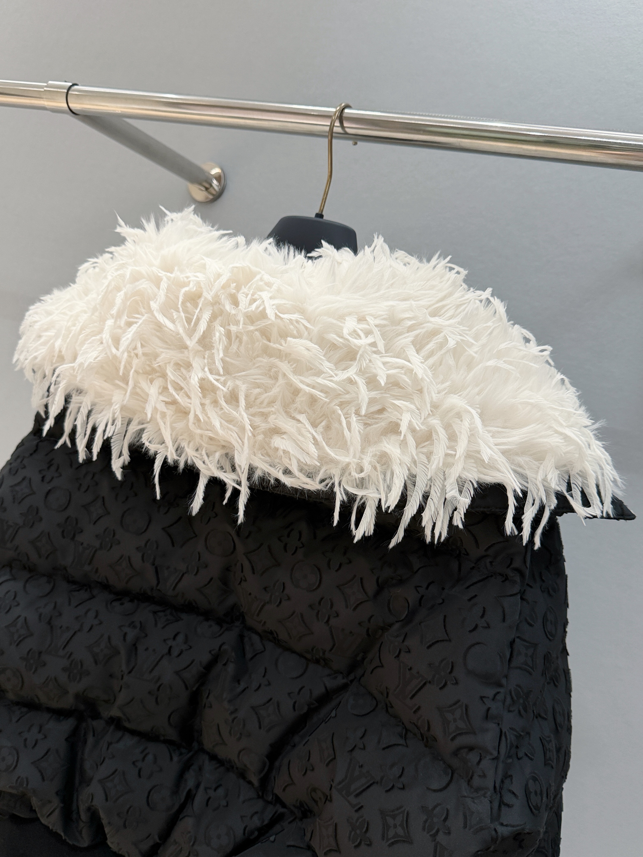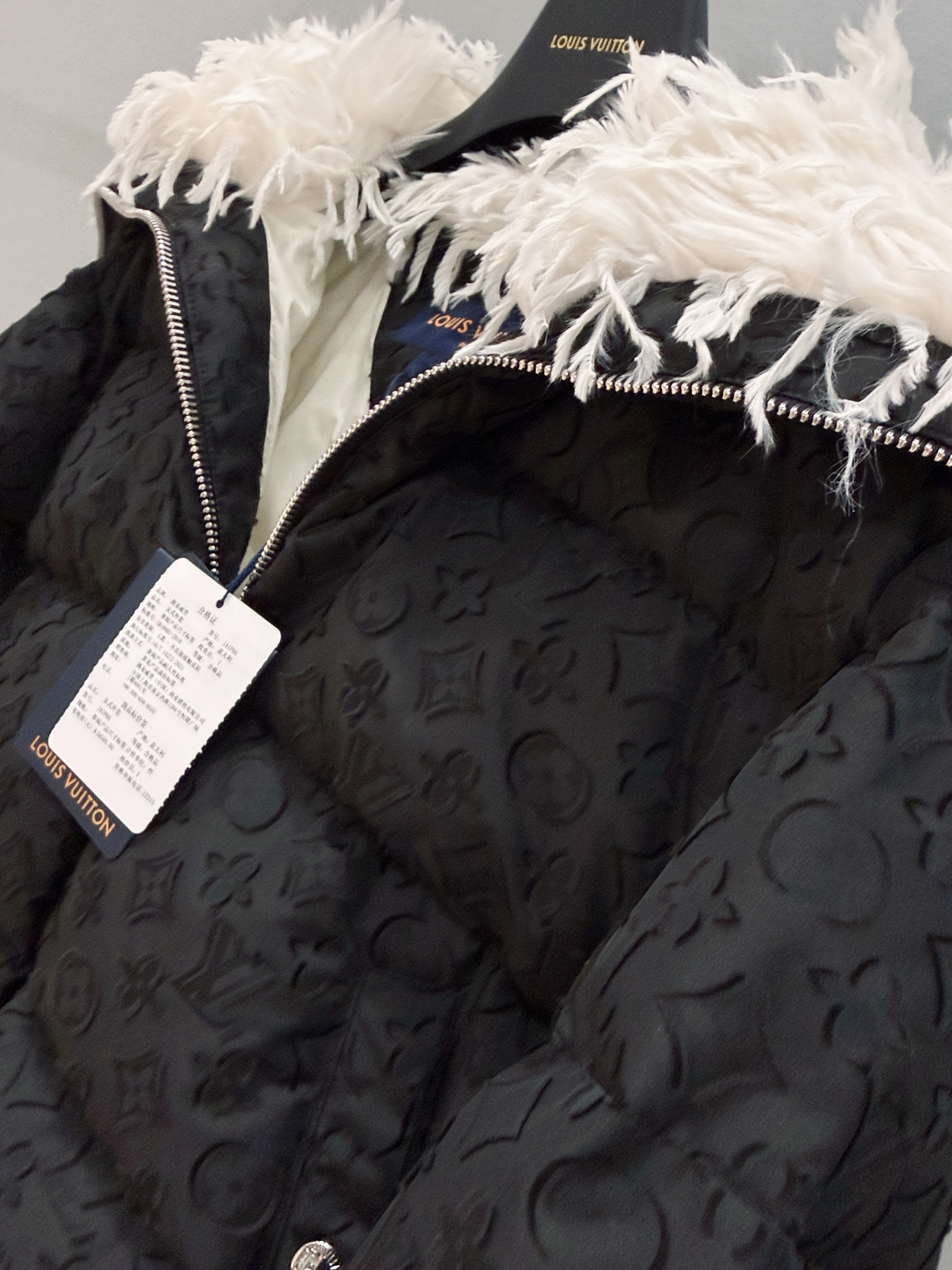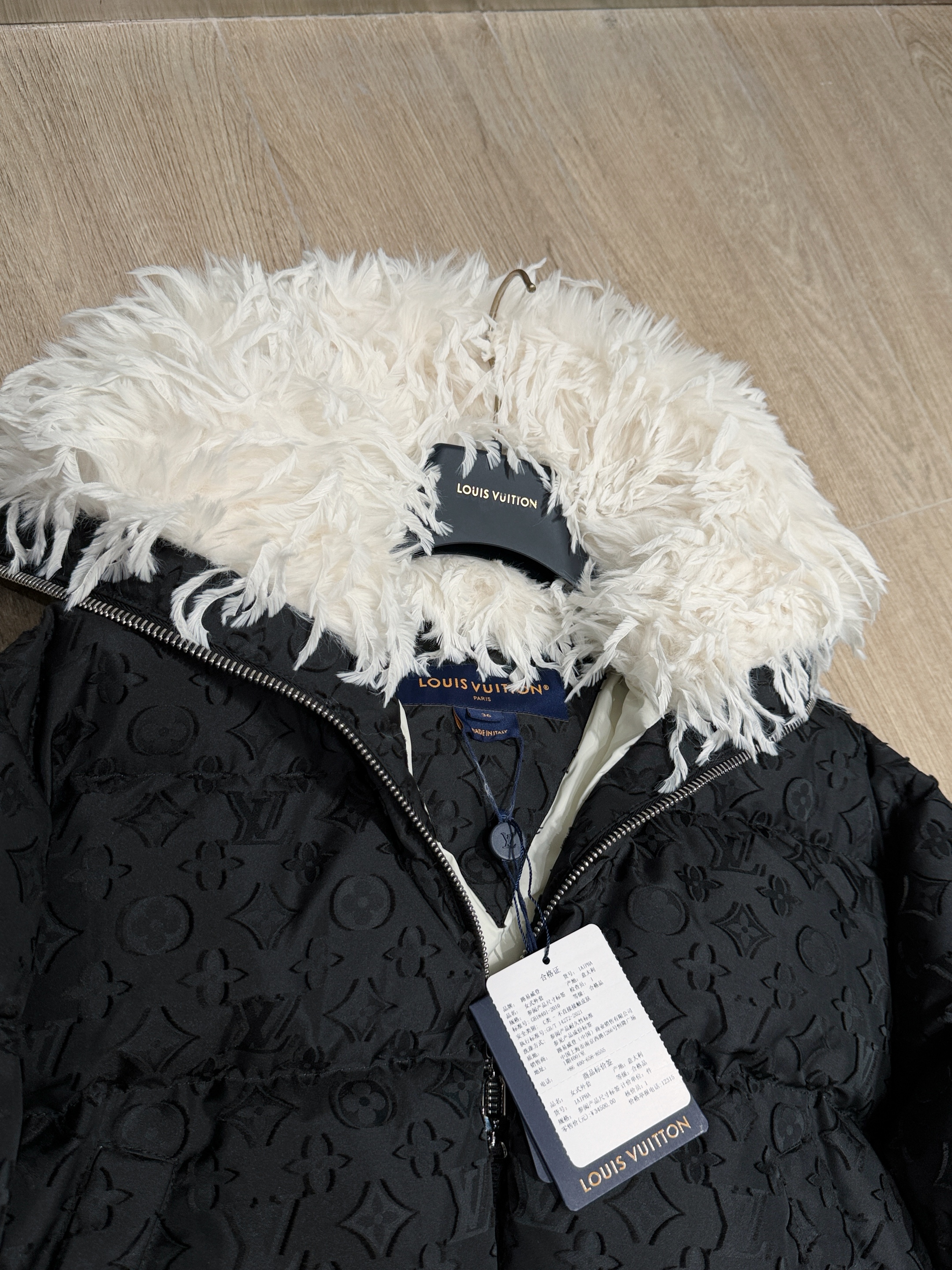 Louis Vuitton 25FW Monogram Dark Pattern Feather Collar Ski Jacket Loose Down Jacket