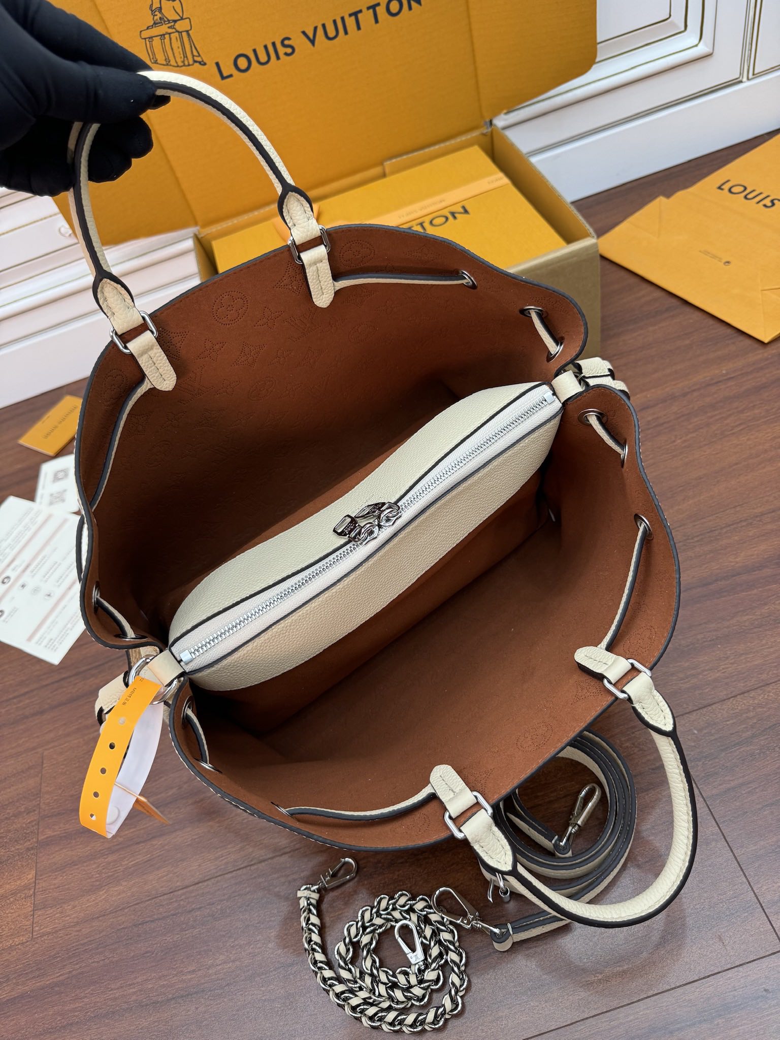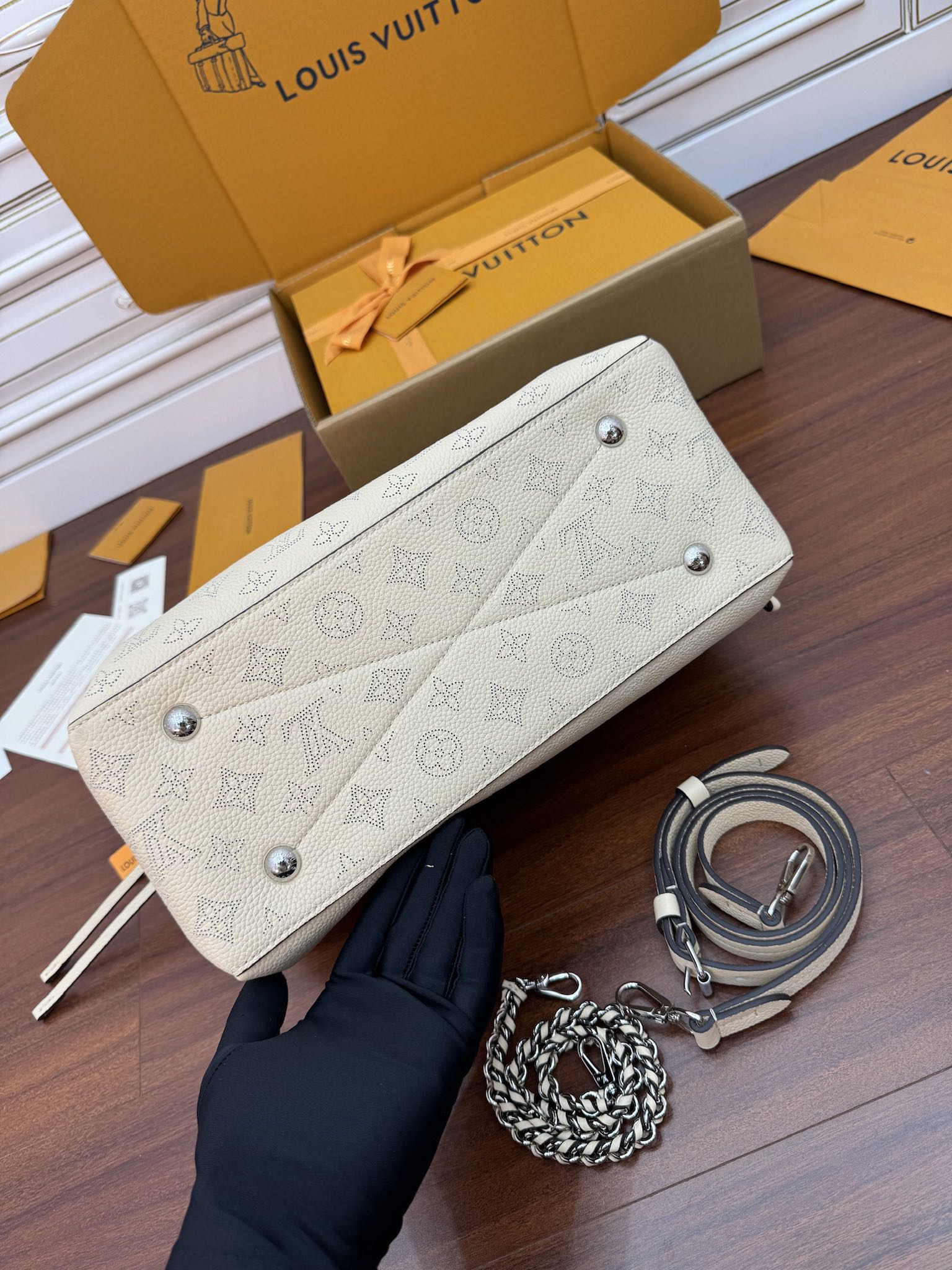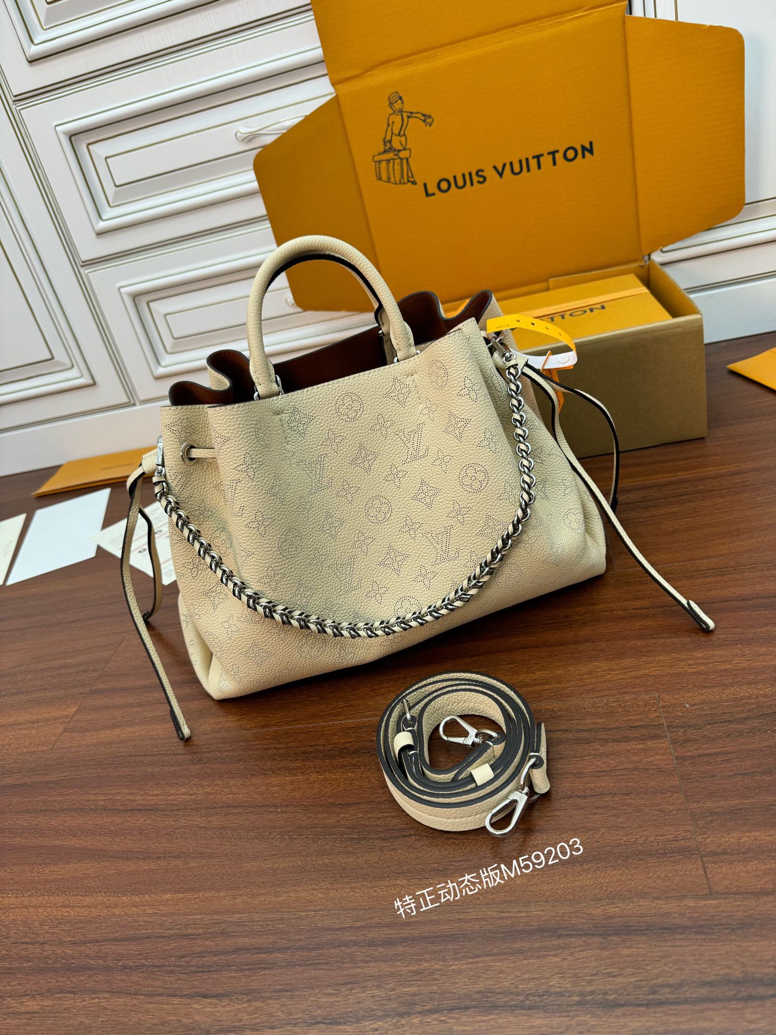 NIGO Louis Vuitton Bella Women's Gray Detachable Adjustable Shoulder Strap Hollow Logo Perforated Calfskin Drawstring Bucket Tote Bag Bags #nigo99685