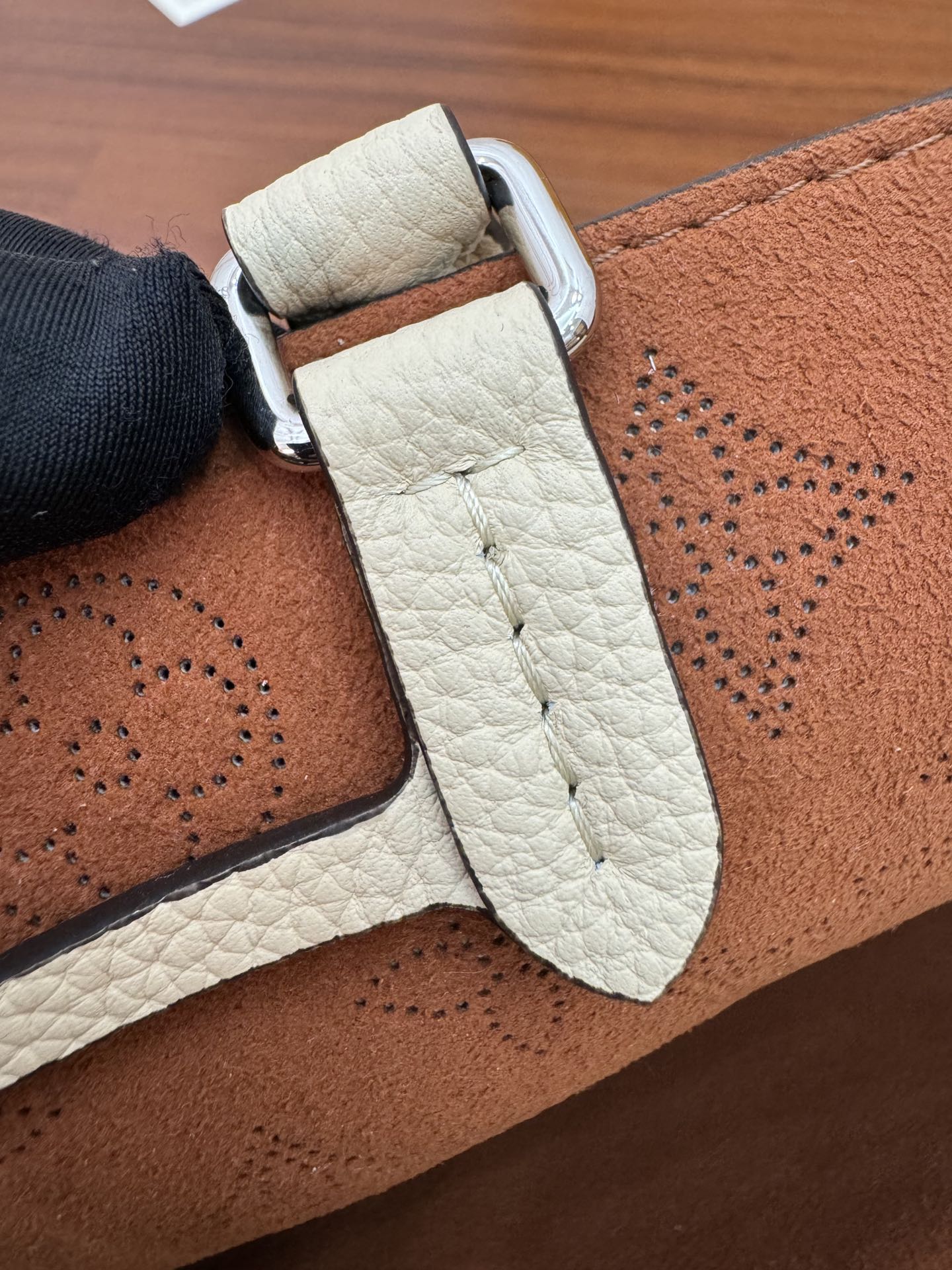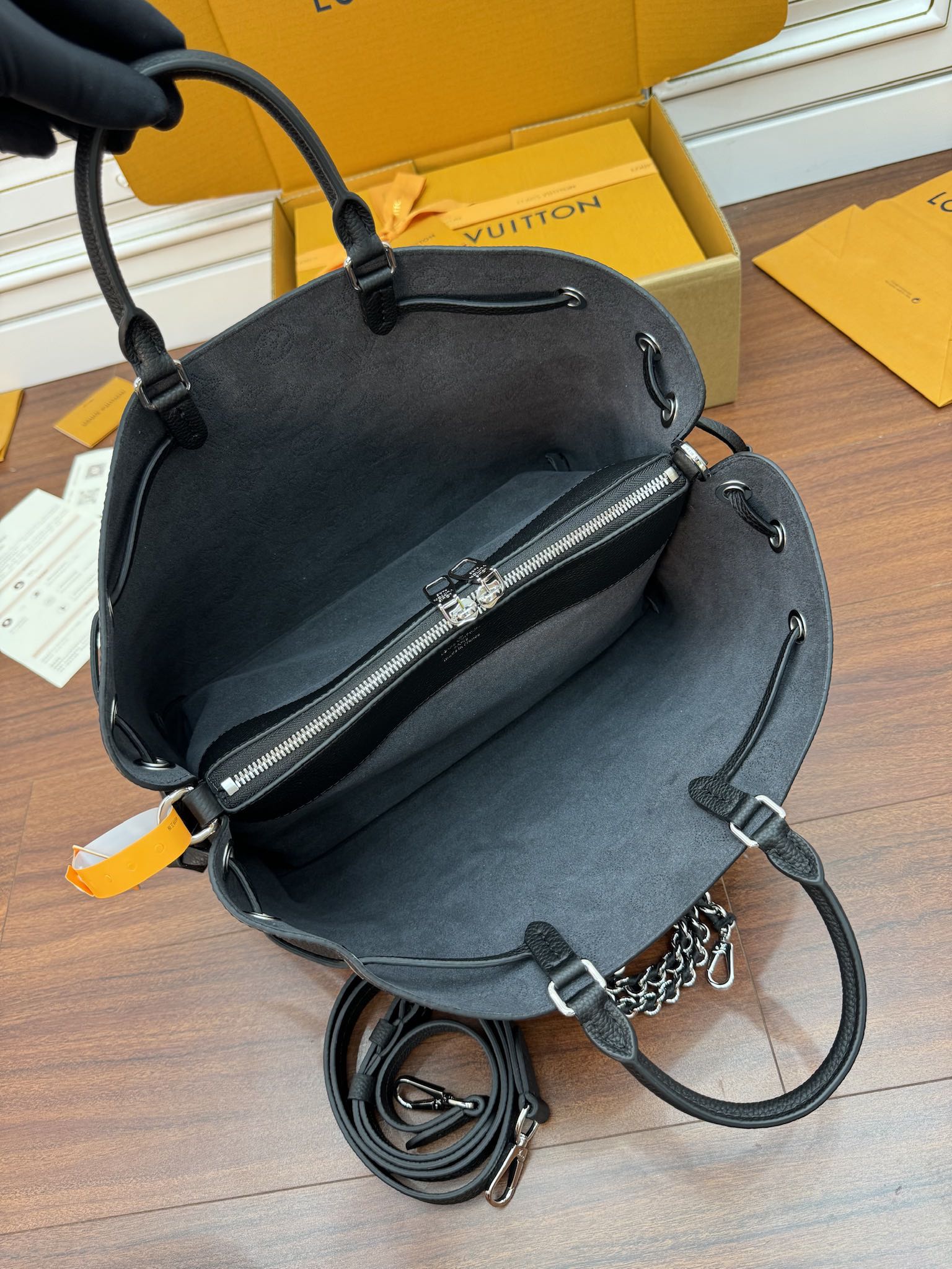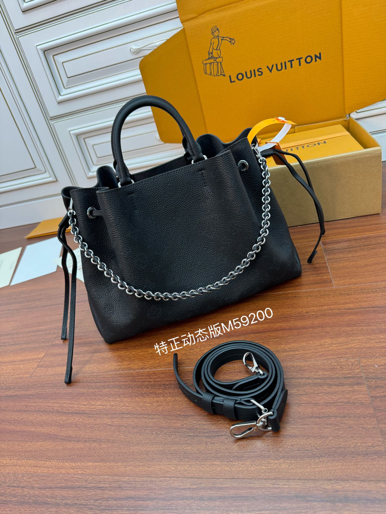NIGO Louis Vuitton Bella Women's Gray Detachable Adjustable Shoulder Strap Hollow Logo Perforated Calfskin Drawstring Bucket Tote Bag Bags #nigo99685