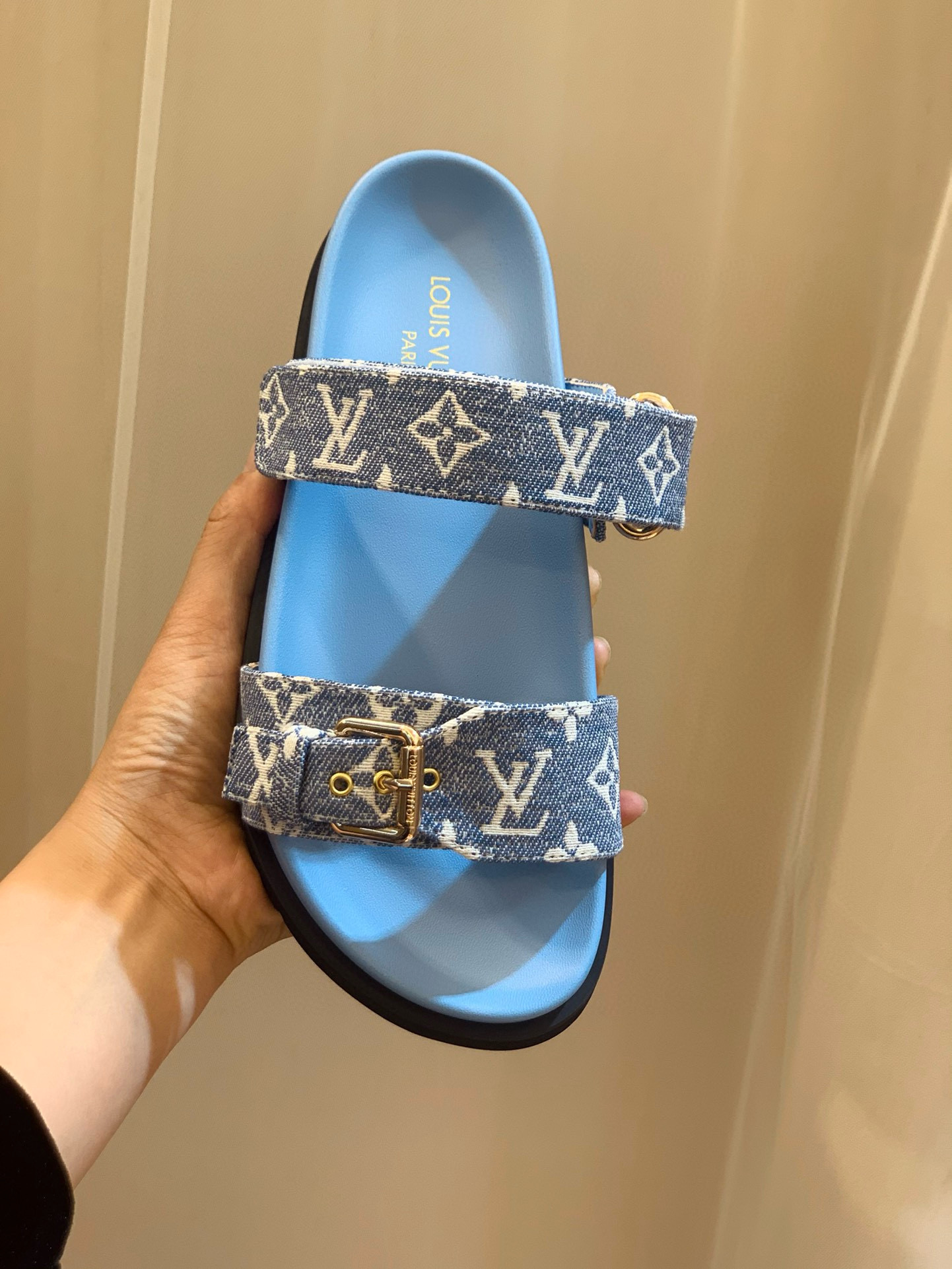NIGO Louis Vuitton BOM DIA COMFORT Women's Summer Blue Printed Velcro Flat Sandals Mop Slippers Shoes #nigo98654