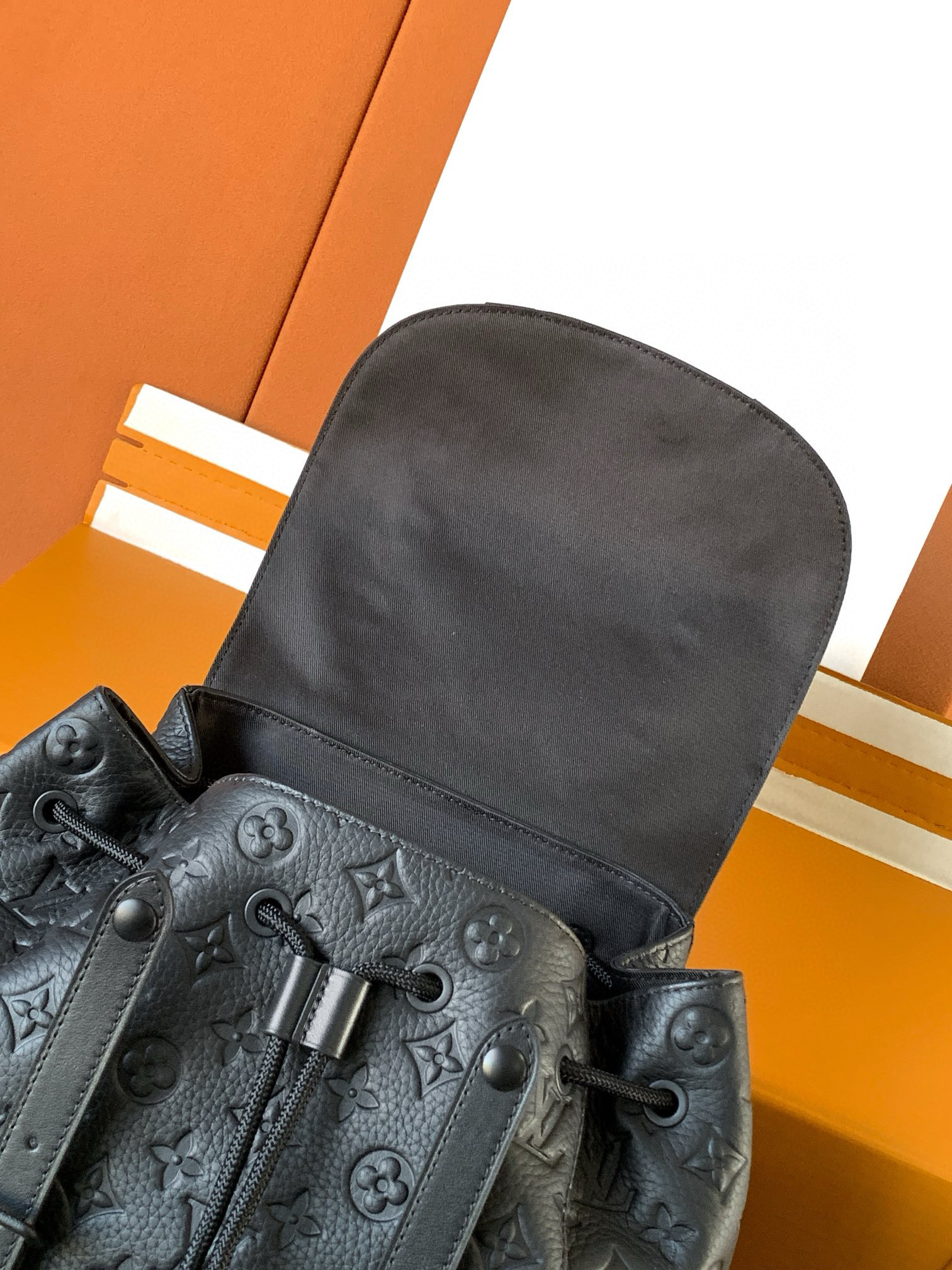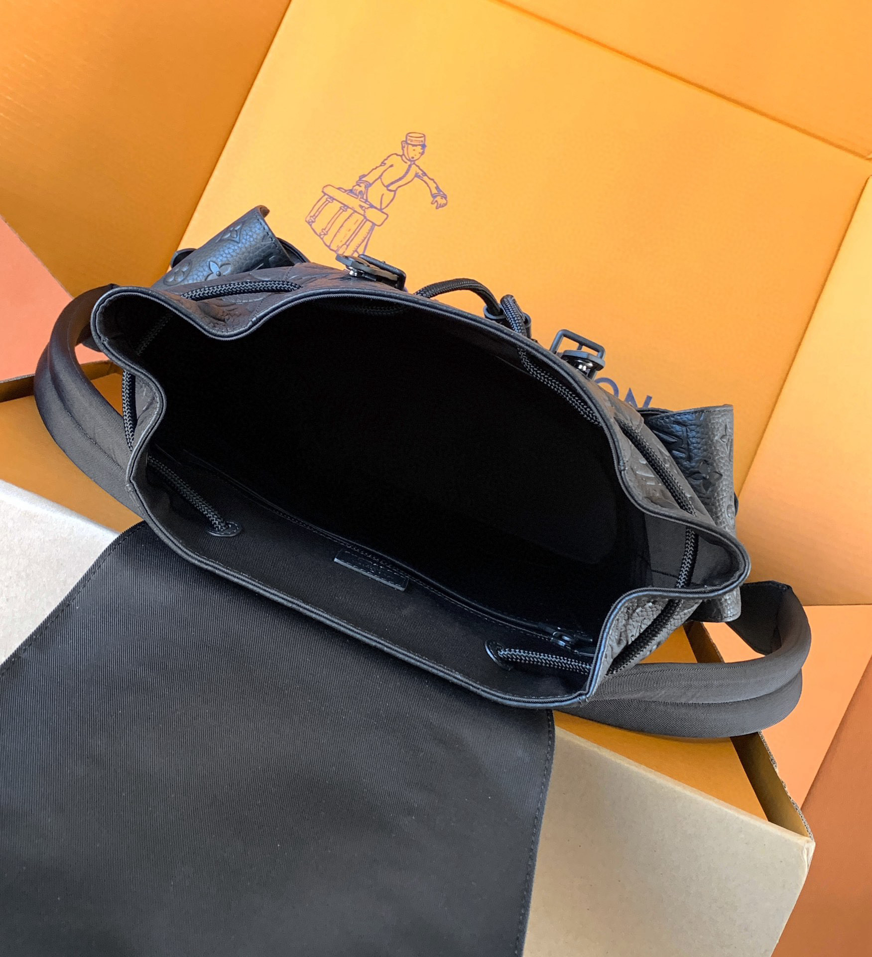 NIGO Louis Vuitton Christopher Men's Black Dark Logo Printed Drawstring Flap Closure Cowhide Leather Backpack Shoulder Bag Bags #nigo77954
