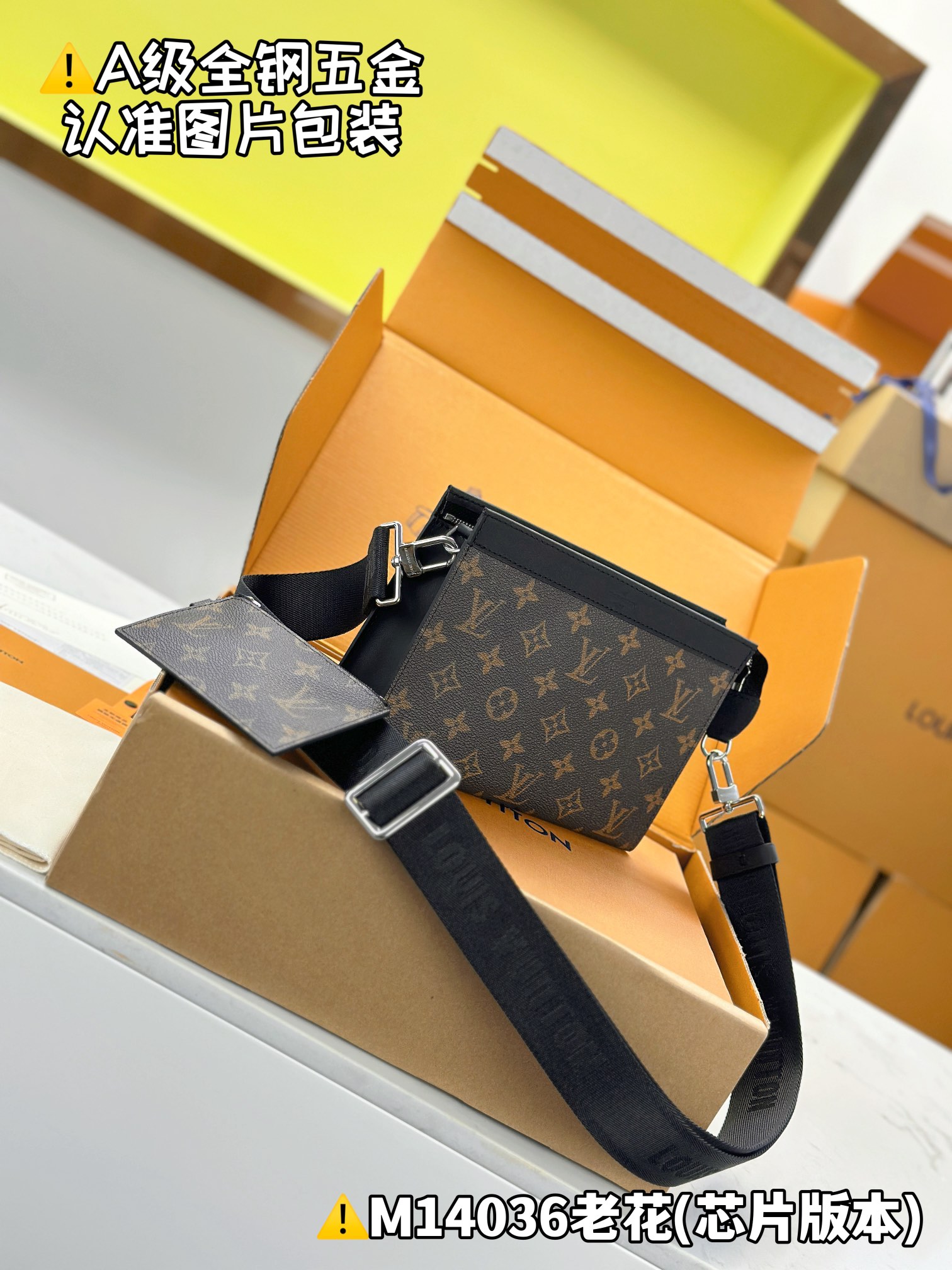 NIGO Louis Vuitton GASTON Classic printed men's and women's fashion Adjustable removable shoulder strap Zipper closure Coated canvas Shoulder bag Handbag Bags M14036 #nigo78445