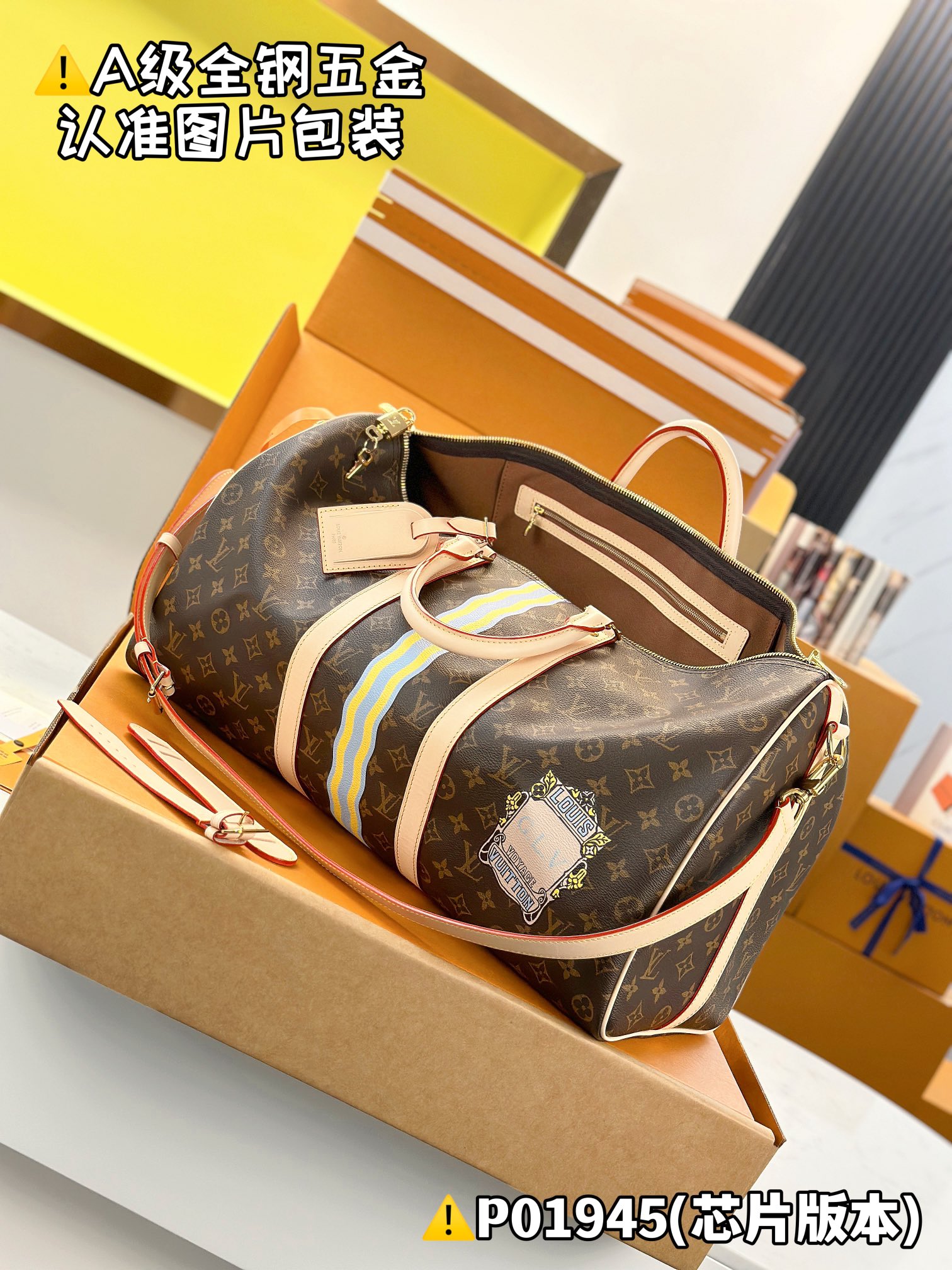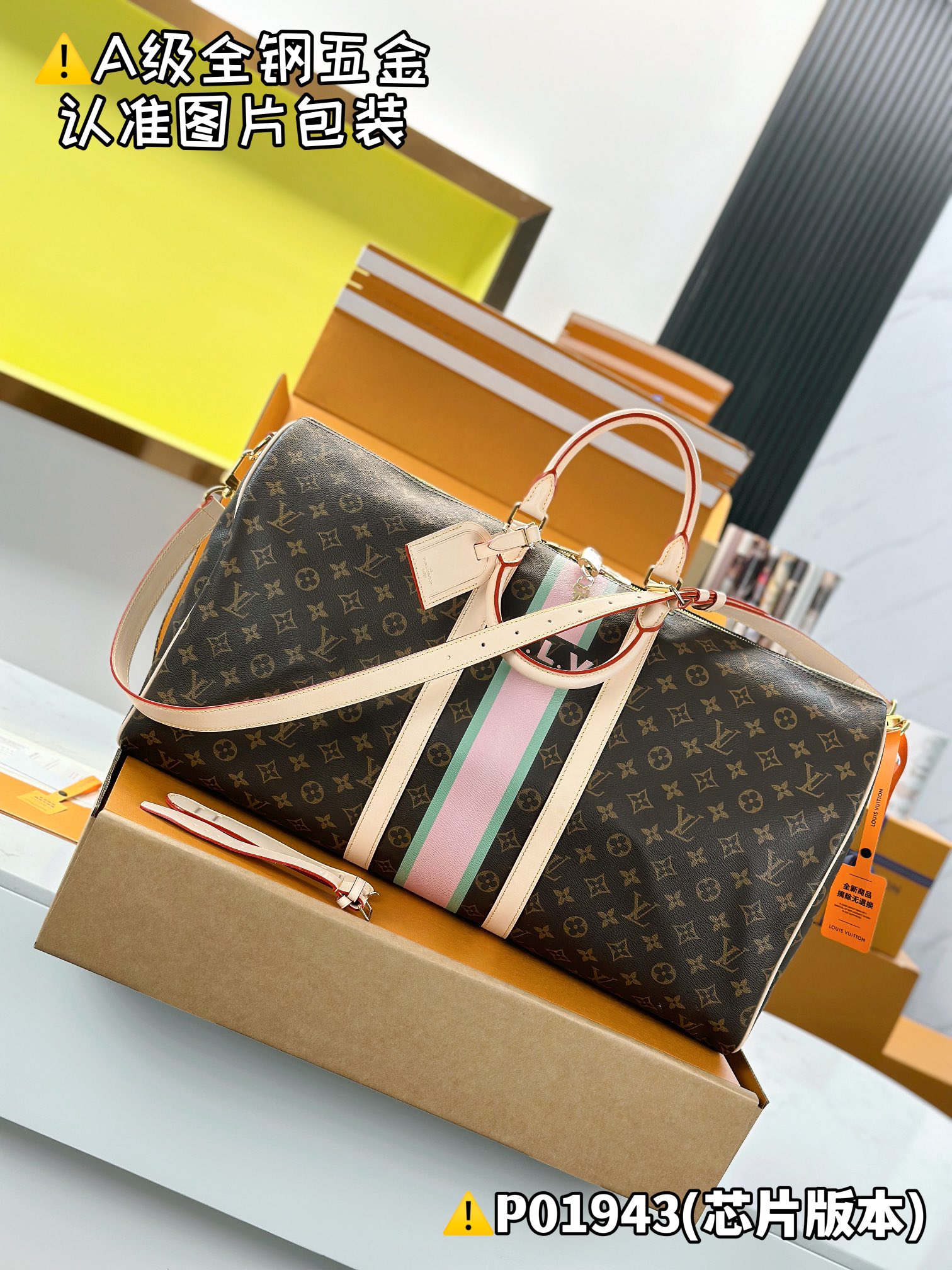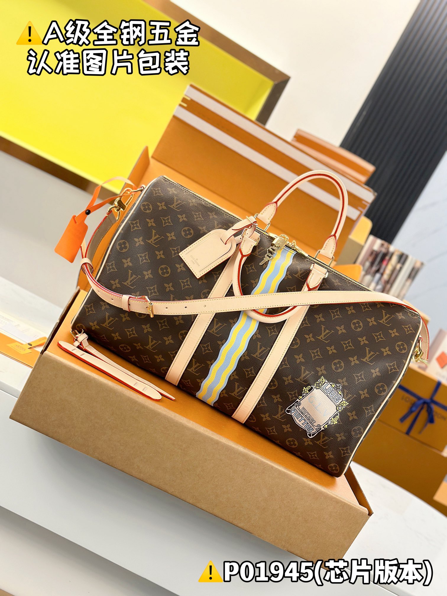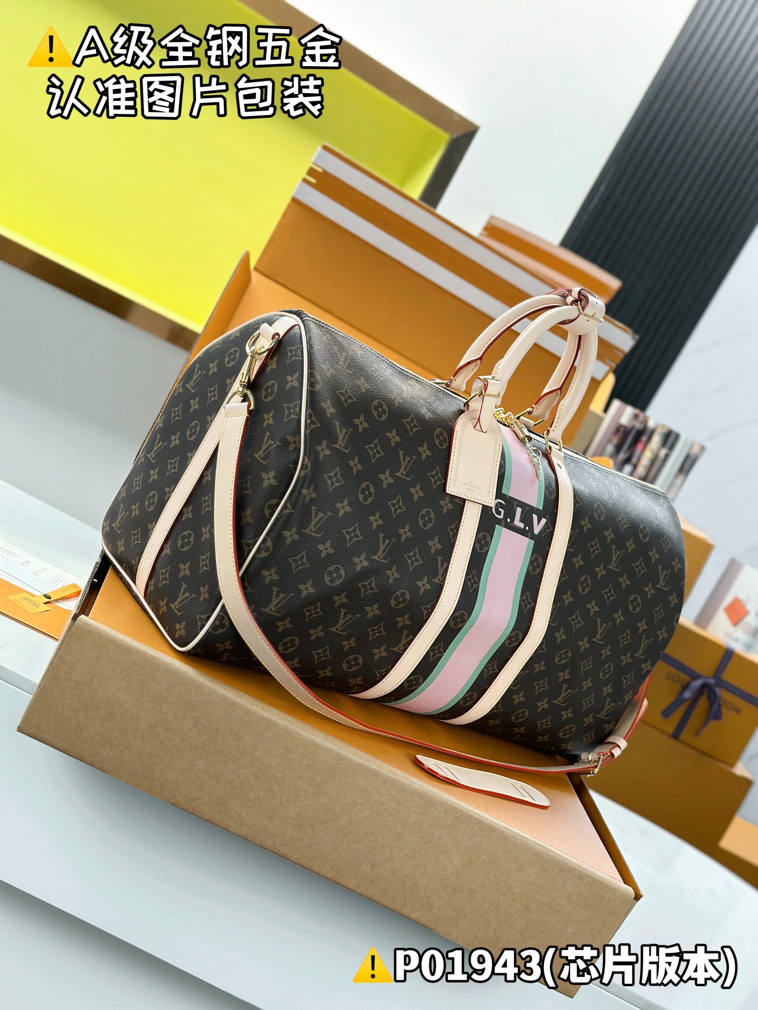 NIGO Louis Vuitton KEEPALL BANDOULIÈRE 50 Men's Detachable Adjustable Shoulder Strap Zipper Closure Coated Canvas Quilted Leather Single Shoulder Crossbody Handbag Travel Bag Bags #nigo76838