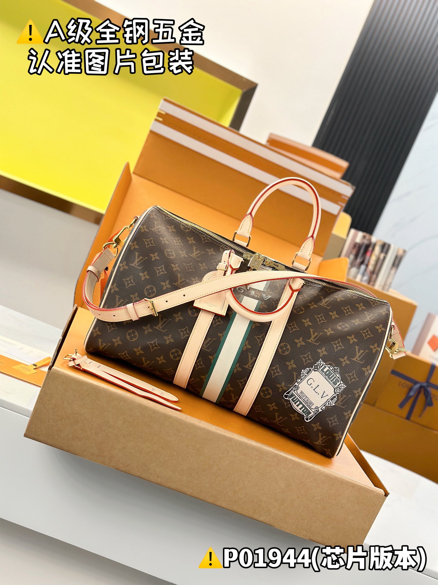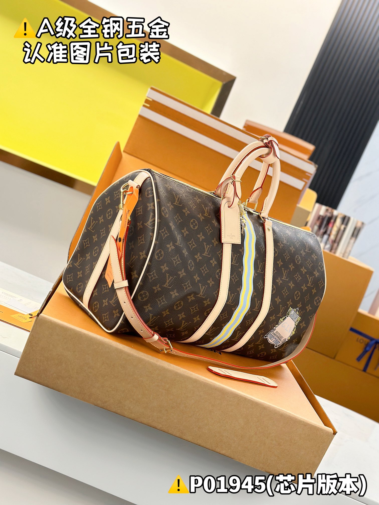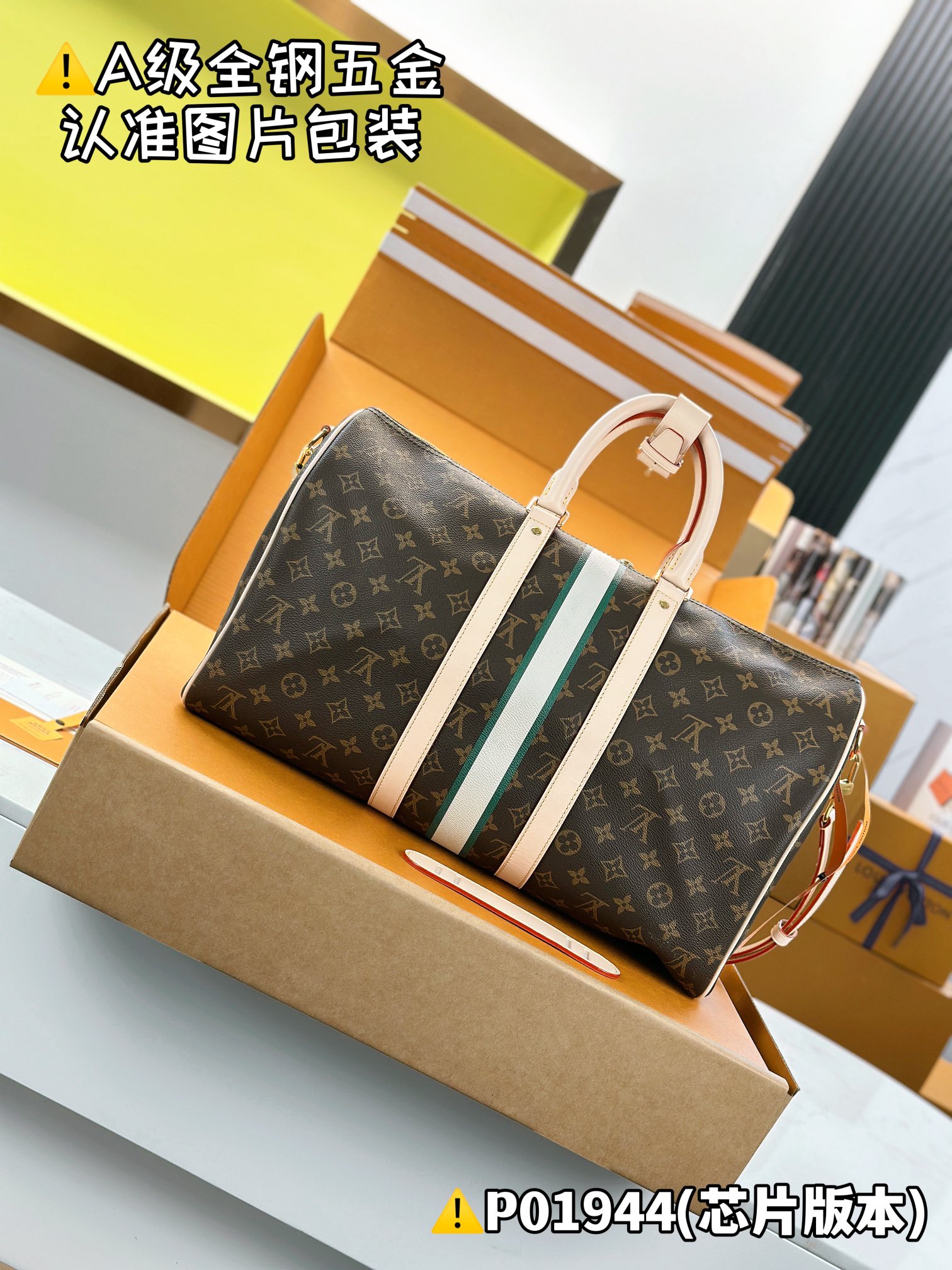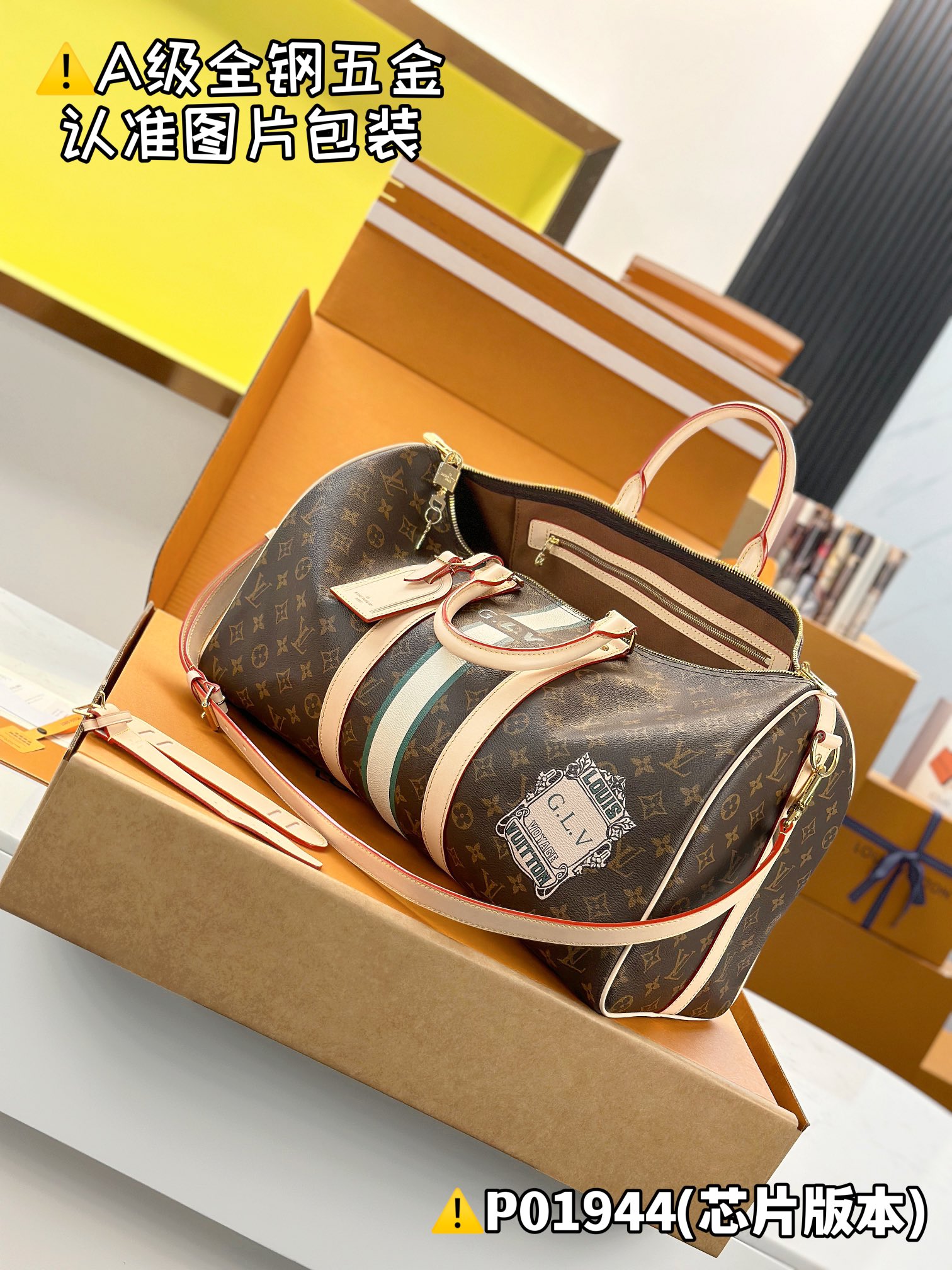 NIGO Louis Vuitton KEEPALL BANDOULIÈRE 50 Men's Detachable Adjustable Shoulder Strap Zipper Closure Coated Canvas Quilted Leather Single Shoulder Crossbody Handbag Travel Bag Bags #nigo76838